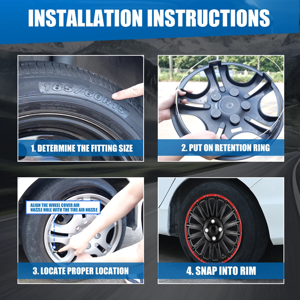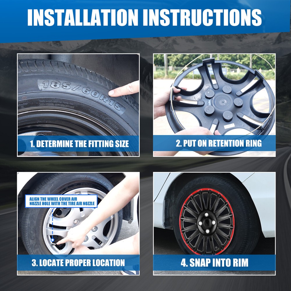 Head Lights Tail Lights Fog Lights Turn Signal Bumper Fender Flare Inner Fender Hubcaps Refrigerator Other Items for sale Head Lights Tail Lights Fog Lights Turn Signal Bumper Fender Flare Inner Fender Liners Portable Refrigerator View All Our Store 4PCS Black Matte 15” Hub Caps for Toyota Corolla Nissan Versa Chevy Wheel Cover 44.99 USD 4PCS Black Matte Hub Caps 15” inch for Toyota Corolla Nissan Chevy Wheel Cover 43.99 USD 4PCS Silver Hub Caps 15” inch for Toyota Corolla Nissan Versa Chevy Wheel Cover 41.99 USD 4PCS 15" Wheel Covers Rim Snap On Full Hubcaps Fit For R15 Black &Sliver Lacquer 47.99 USD 4PCS 14"~16" Universal Wheel Covers Snap On Full Hub Caps fit Tire & Steel Rim Features: Universal Fit - Design for 14"/15"/16" wheel hubs. Please know that and check your wheel before purchase to ensure fitment. Protect Your Wheels - Keep your vehicle looking sleek and new with these universal-fit hubcaps that offer reliable protection against scratches, dings, and other types of damage. Durable - Made from high-quality ABS materials, these hubcaps are built to withstand the rigors of daily use, keep your vehicle looking great for years. Stylish - Upgrade the look of your car or truck with these sleek hubcaps to enhance the appearance of your vehicle. Easy to Install - Designed to fit most standard wheel size, these hubcaps can be quickly and easily snap on your wheels without the need for special tools, making them a great choice for busy vehicle owners. Specification: Type: Wheel Hub Caps Color: Black / red Lacquer Compatible Wheel Diameter: 14"/15"/16" Features:Car Wash Safe, Easy to Install, No Tools Required Material: ABS Number in Pack: 4 Wheel Type: Steel Placement on Vehicle: Front, Left, Rear, Right Package Includes: 4* Wheel Cover Hubcaps Payment Shipping Return About us Contact us Payment Appreciated for the prompt payment, Contact us if bid by mistake, system open unpaid item automatically. Payment must be complete within 3 days from the date you purchase or after the end of auction. Items unpaid within 3 days of the auction end will be forfeited. We reserve the right of cancel the order and re-selling the items. Shipping All shipment will ship by UPS or USPS . All items will be ship within 1 working days , and we will ship out all orders as soon as possible after payment verified, please allow up to 1-4 business days for delivery. CANADA & International customers please note: your government might charge a duty tax (brokerage fees). We do not responsible for any custom duty or import tax. Why Choose the US Stock? 1. Us Local Shipping, No Extra Customs Cost to the US. 2. Fast Delivery: 1-4 Working days Delivery. 3. Best After-Sales Service!!! Return The buyer is responsible for all return shipping including a result of customer error or defective item. 1) If you received an incorrect, damaged, defective, or item not as described, contact us for full refund or replacement on our cost. 2) If you want to return the item, please contact us within 60 days after package received. Return products must also be in its original condition: including box, packaging and all other accessories. About us We are the best auto parts, we have been pursuing excellence, continuous exploration as the slogan, let customer satisfaction is our purpose! We adhere to the United States local delivery, one year warranty! Welcome! Contact us How Should You Contact us? Please Read The Item Description And See if The item Fits Your Vehicle Exactly. If You Found Any questions, Feel Free to email us by "Ask a question" Our Office Hours Are Monday - Friday 8:00am - 5:00pm PST / 11:00am - 8:000pm ET, We Do Not Answer Any E-Mails On Weekend, And We Will Reply All E-Mails In The Order It Was Receive. All E-Mail Take Us Around 24 Hours To Respond To Any E-Mail. We Are Close During The Weekends And We Do Not Answer Any E-Mails During That Time.