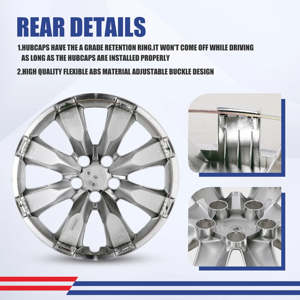 4PCS 16-Inch Chrome Snap-On Wheel Covers for 2014-2016 Toyota Corolla