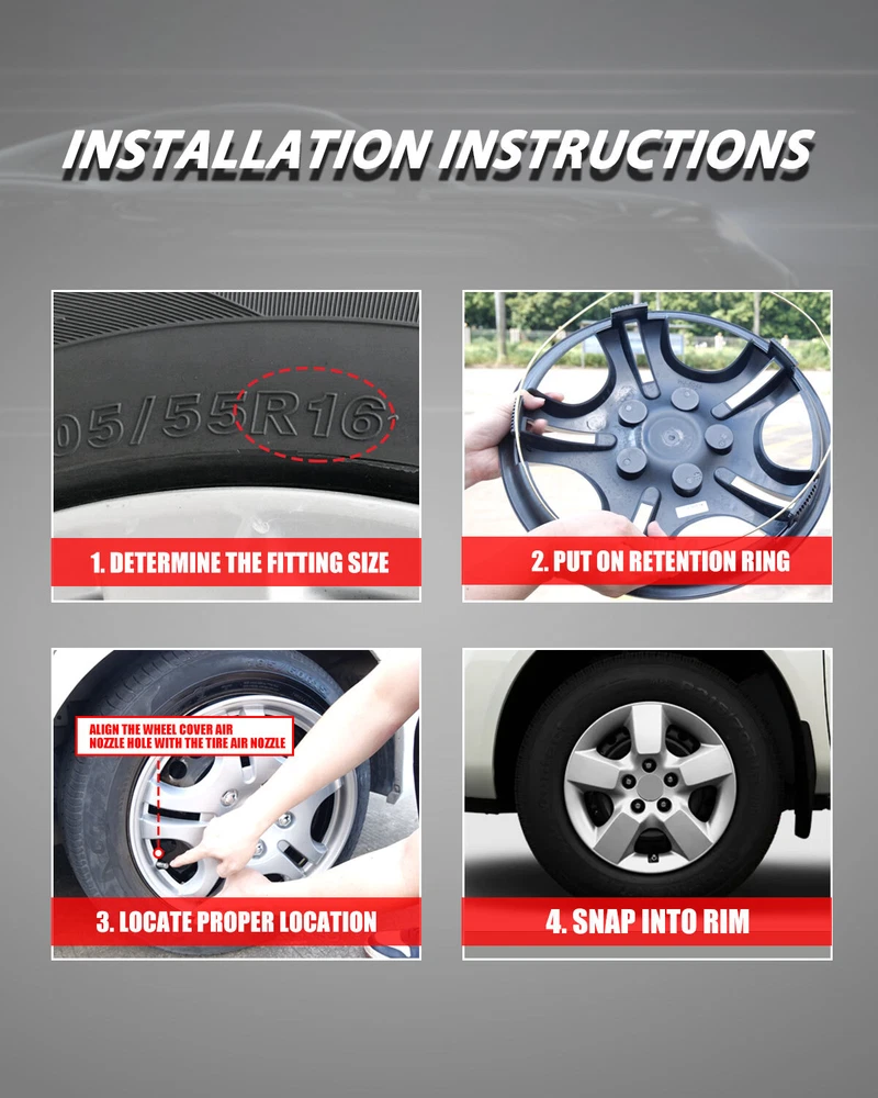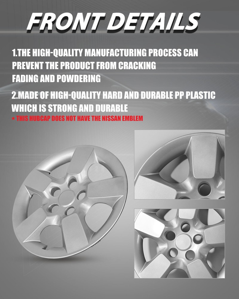 Store Categories Other Car Refrigerator Front Bumper Rear Bumper Fender Flares Inner Fenders Side Steps Running Board A-Pillar Light Mount Brackets Headlights Taillights Fog Lights LED Headlights LED Taillights LED Fog Lights Jeep Chevrolet Ford Toyota Dodge GMC Wheel Covers Features ✴ PERFECT FIT: This wheel hub cap is specifically designed to perfectly fit for 16-inch wheels, ensuring a seamless match and enhanced aesthetics. It complements the overall design of the vehicle, elevating its visual appeal. ✴ HIGH-QUALITY MATERIAL: Constructed from high-quality materials, this wheel hub cap guarantees durability and longevity. It withstands various road conditions and environmental factors encountered during daily driving, maintaining its pristine condition. ✴ EASY INSTALLATION: Installing this wheel hub cap is a breeze and requires no specialized tools or modifications. It comes with a user-friendly system, allowing for a hassle-free installation process by following the provided instructions. ✴ PROTECTIVE FUNCTION: Besides its aesthetic appeal, this wheel hub cap serves as a protective barrier for the wheels. It prevents scratches and potential damage caused by stones, debris, or other objects, safeguarding the wheel's surface. ✴ AFTER-SALES SERVICE: If There Is a Loss of Product Parts, or Any Parts of The Problem, We Can Provide After-Sales Service, Please Contact Us on The Order Page. Wheel Covers Specification ✴ Type: Hub caps ✴ Number in Pack: 4 ✴ Color: Silver Lacquer ✴ Material: ABS ✴ Compatible Wheel Diameter: 16 in ✴ Finish: Glossy ✴ Installation Type: Snap-On ✴ Model: For 2008-2015 Nissan Rogue/For 2008-2015 Nissan Rogue Select Wheel Covers Package ✴ 1 Set of 4 Hub caps and 4 retention rings Payment Delivery details Terms of sales About us Contact us Payment We accept PayPal, credit card , Apple Pay & Google Pay etc. Delivery details All items will be shipped within 1-3 business days after payment received, we will try our best to ship out as soon as we can, hope for your understanding. Please double confirm your address and contact information, which will help the delivery faster and more accurately. Note :buyers who purchase international products need to pay import tariffs!!! Terms of sales Professional installation is highly recommended. Any problem of the item please feel free to contact us first , please D o Not leave negative feedback before that, or simply return it within 60 Days in original condition. We will resolve it for you ASAP. About us Any questions please do not hesitate to contact us directly by eBay message . We will reply you within 24 hours asap, thanks for your understanding. Contact us Should you have any problem or require any further information please feel free to contact us . If you are satisfied with our product and service, please kindly leave us a positive feedback. Popular Categories On Mar 14, 2025 at 20:38:52 PDT, seller added the following information: