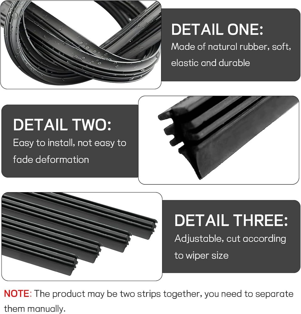 These wiper refills are a game-changer! The high-quality rubber glides smoothly, eliminating streaks and noise. The adjustable length fits perfectly, and they handle extreme temps like a champ—no more frozen or brittle blades. Installation was a breeze, and the fast shipping was a nice bonus. Great value for the price—highly recommend for a crystal-clear windshield all year round!