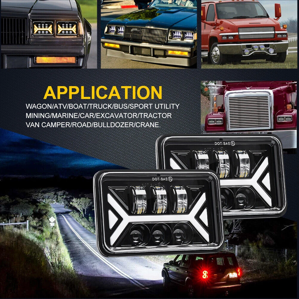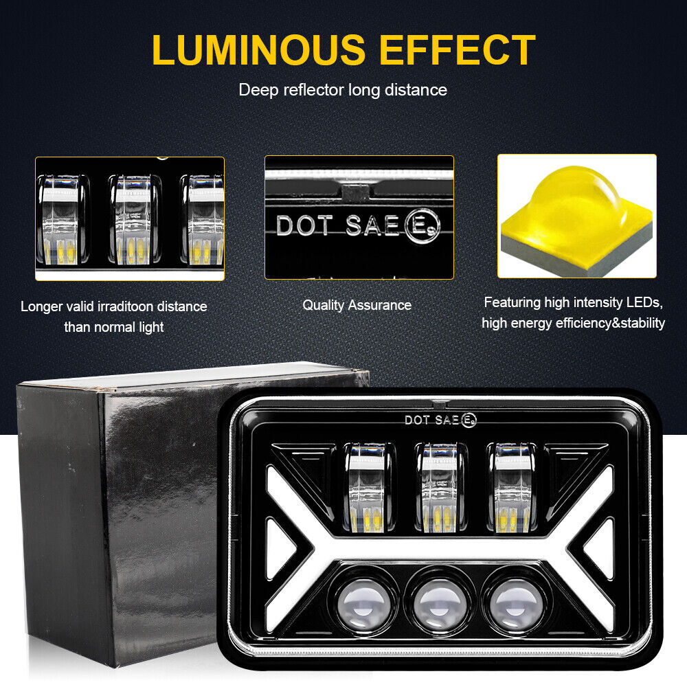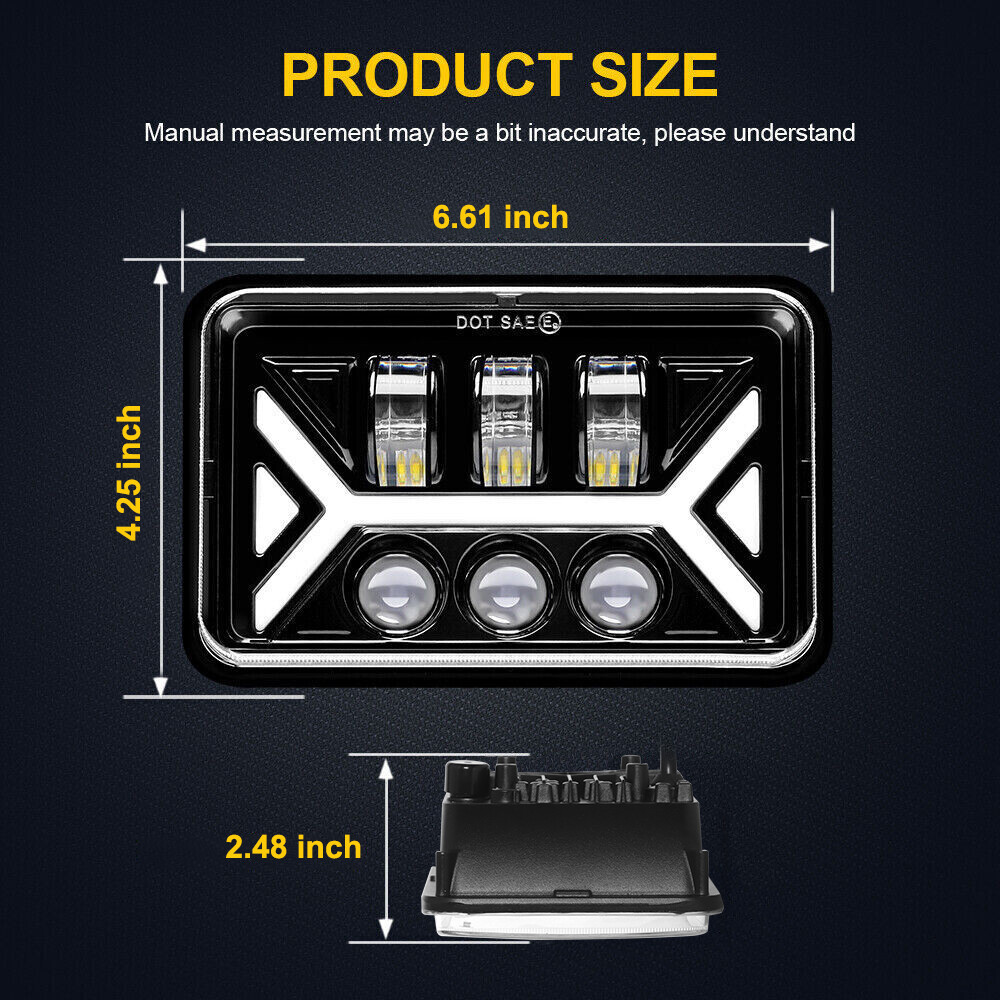 Home Payment Shipping About us Contact us Details Features: Each light has high beam, low beam, daytime running light (white DRL) and amber turn signal light. Easy installation: Plug and Play, the headlights are with standard 3-Pin plug (H4 plug). IP68 waterproof rate, special heat sink design for efficient cooling dissipation. Note: If you suffer from problems, such as dim headlights, malfunctioning headlights, please buy H4 headlight relay and that will solve the problem. If PINs on your vehicle are not standard, please purchase H4 9003 wiring harness. Breathing Hole is designed to drive away moisture or water, contributing to longer lifespan above 50,000 hours, provide safe and stable light source for your cars or trucks. Compatible with headlights: H4656/H4651/4651/4652/H4652/H4666/H6545. Also suitable for most of other vehicles such as Toyota 60 80 Series, Chevy /Chevrolet Camaro , Kenworth T800 T400 T600 W900B W900L, Freightliner FLD120 112 FLD, Peterbilt 379 378 357 and other models which need 4x6'' rectangular Headlights. Description: Dimensions:4x6'' Power: 60W per light Housing Color: Black Lens Color: Clear Lumen: 6000LM@high beam, 3800LM@low beam per light Beam Pattern: High & Low Beam with DRL and Turn Signal Working Temperature: -40~85 degrees Celsius Operating Voltage: DC 12V~24V Waterproof Rate: IP 68 Life Span: 50000Hours Material: Die-Cast Aluminum Alloy Housing with high heat disapation Lens Material: PC Color Temperature: 6000K Certified by DOT SAE Warranty: 3 Year Warranty Compatible with headlights: H4656/H4651/4651/4652/H4652/H4666/H6545 Package Included: 4PCS 4x6'' LED Headlights Fitment: Fits any car or truck that has 4x6 inch headlights,such as for FREIGHTLINER FLD120 112 FLD for Peterbilt Rectangular Headlights 379 378 357 for Kenworth T800 T400 T600 W900B W900L Classic 120/132 HK Classic for Chevrolet Camaro 1982 - 1992 for Chevrolet Cavalier 1982 - 1987 for Chevrolet El Camino 1982 - 1987 for Chevrolet Monte Carlo 1980 - 1988 for Ford Mustang 1979 -1986 for Ford Probe 1993 -1997 for Pontiac Firebird 1977 - 1981 for Pontiac Grand Prix 1976 - 1987 Shipping Policy Payment Method Returns Policy Shipping Policy Payment Method Returns Policy Copyright©2017 DataCaciques Home Payment Shipping About us Contact us Details Features: Each light has high beam, low beam, daytime running light (white DRL) and amber turn signal light. Easy installation: Plug and Play, the headlights are with standard 3-Pin plug (H4 plug). IP68 waterproof rate, special heat sink design for efficient cooling dissipation. Note: If you suffer from problems, such as dim headlights, malfunctioning headlights, please buy H4 headlight relay and that will solve the problem. If PINs on your vehicle are not standard, please purchase H4 9003 wiring harness. Breathing Hole is designed to drive away moisture or water, contributing to longer lifespan above 50,000 hours, provide safe and stable light source for your cars or trucks. Compatible with headlights: H4656/H4651/4651/4652/H4652/H4666/H6545. Also suitable for most of other vehicles such as Toyota 60 80 Series, Chevy /Chevrolet Camaro , Kenworth T800 T400 T600 W900B W900L, Freightliner FLD120 112 FLD, Peterbilt 379 378 357 and other models which need 4x6'' rectangular Headlights. Description: Dimensions:4x6'' Power: 60W per light Housing Color: Black Lens Color: Clear Lumen: 6000LM@high beam, 3800LM@low beam per light Beam Pattern: High & Low Beam with DRL and Turn Signal Working Temperature: -40~85 degrees Celsius Operating Voltage: DC 12V~24V Waterproof Rate: IP 68 Life Span: 50000Hours Material: Die-Cast Aluminum Alloy Housing with high heat disapation Lens Material: PC Color Temperature: 6000K Certified by DOT SAE Warranty: 3 Year Warranty Compatible with headlights: H4656/H4651/4651/4652/H4652/H4666/H6545 Package Included: 4PCS 4x6'' LED Headlights Fitment: Fits any car or truck that has 4x6 inch headlights,such as for FREIGHTLINER FLD120 112 FLD for Peterbilt Rectangular Headlights 379 378 357 for Kenworth T800 T400 T600 W900B W900L Classic 120/132 HK Classic for Chevrolet Camaro 1982 - 1992 for Chevrolet Cavalier 1982 - 1987 for Chevrolet El Camino 1982 - 1987 for Chevrolet Monte Carlo 1980 - 1988 for Ford Mustang 1979 -1986 for Ford Probe 1993 -1997 for Pontiac Firebird 1977 - 1981 for Pontiac Grand Prix 1976 - 1987 Shipping Policy Payment Method Returns Policy Contact Us Feedback Shipping Policy It usually takes 3-6 business days to complete delivery. Package will be sent out within 24 hours after the pament is completed. Delivery is not available on weekends, public holidays or after business hours. Payment Method We accept PayPal, Google Pay, VISA, Master Card, Amex. Credit card payment can also be made via PayPal. Please make sure your eBay address is correct before you pay. All unpaid cases will be opened automatically after 7 days because eBay charges for the final value of the transaction. Returns Policy We will accept returns or refund or exchange if the item is not used and marked within 60 days from the date of purchase. If you received wrong of defective items, please take photos and contact us to confirm. We must protect your interest as promsied. Remember to contact us via eBay message firstly. Contact Us Our online store opens 24 hours a day and 7 days a week. Office opening time: Monday to Friday 9:00AM-5:00PM . For inquires and customer support, please send your email via ebay email system. We will reply to you within 24 hours during business days. Ask us about bulk discounts if you want to buy 3 or more. Feedback We apprecaite your business and strived to improve our customer service and our commitment to quality. We will leave a postive feedback immediately after payment is received. If for some reason there are any issues with the purchase, please contact us before leaving feedback, and we will be glad to work with you to have it resolved.