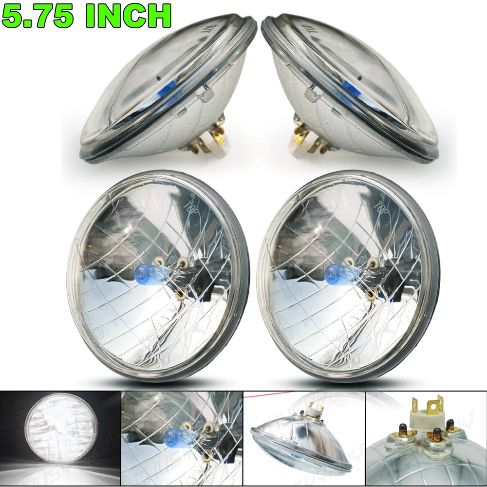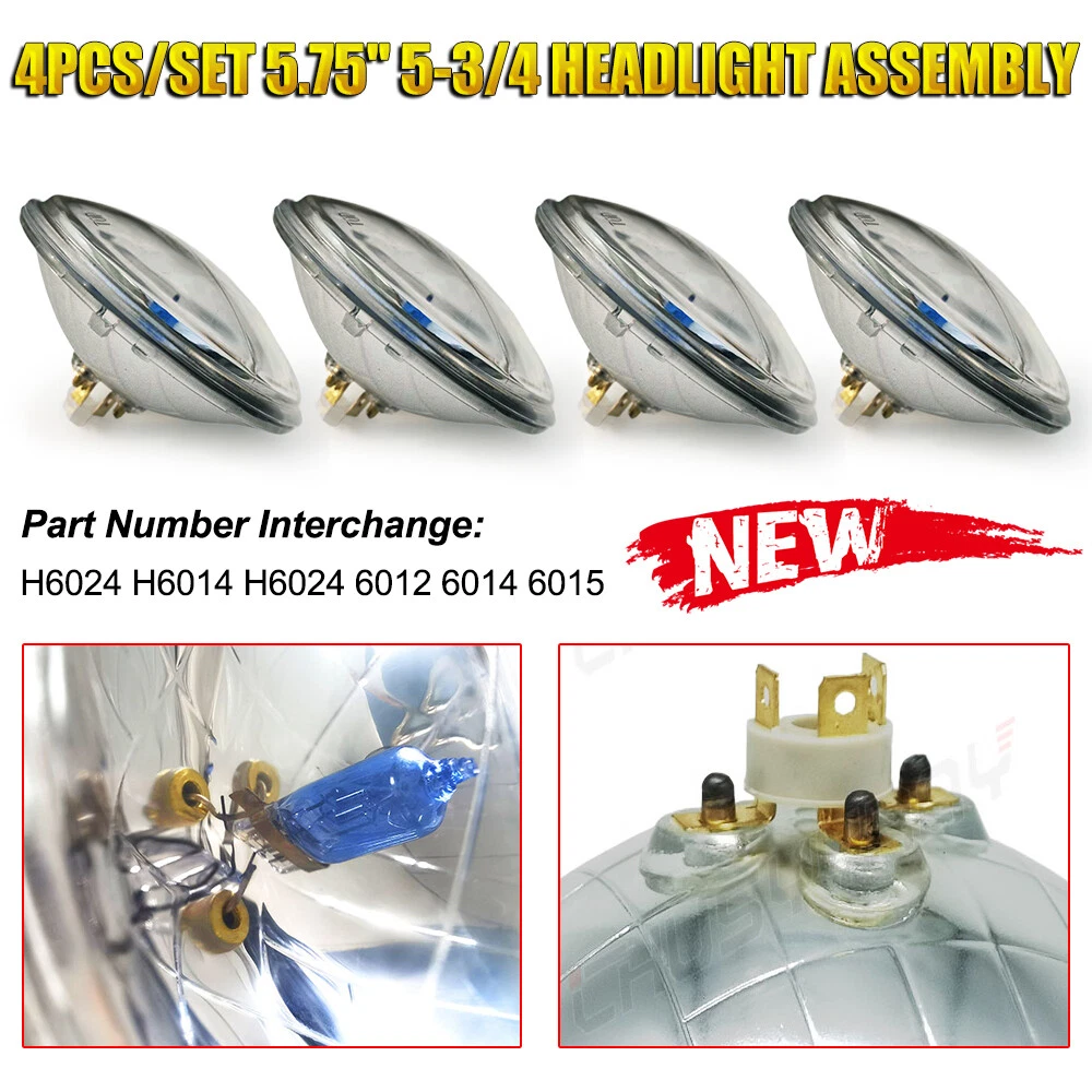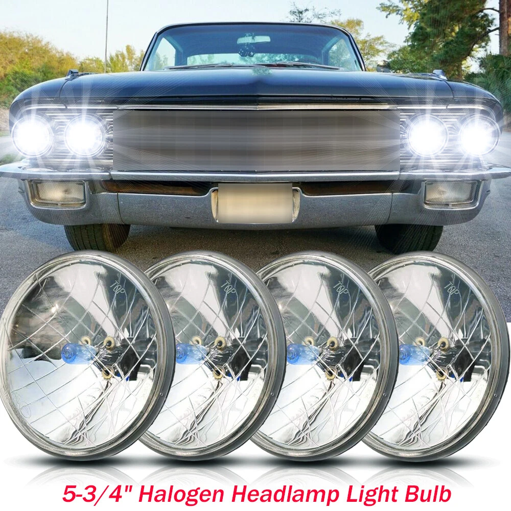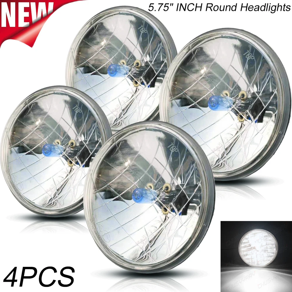 These Are Halogen Crystal Clear Sealed Beam Glass Faced Headlights! With 40w Ultra Bright White Bulbs This Listing Is For a Set Of 4 New 5 3/4" Crystal Clear Glass Faced Halogen Headlight Bulbs. These Have The Original Shaped Prongs On The Back So They Will Plug Right Into Your Original Wiring Harness Plugs. These Will Fit Any Car Or Truck That Has 4 Round Glass Headlights, Some Cars May Need Modification To The Headlight Buckets For Backside Clearance. Each Bulb Is 5 3/4 Inches In Diameter. These Are Glass And We Will Take Extra Care In Packaging. Specification: Power: 80W/Pair 40W/Pcs Dimension: 5.75" Dia.(5.75 inch) Input: 12-24V DC Operating Voltage: 9-32V DC Material: Aluminum + PMMA Clear Lens Lens Pattern: High & Low Beam Color Temperature: 6000K Cool White Waterproof:IP 67-68 Connector: H4 / 9003 (Low Beam and High Beam) Life Span: Above 50,000 Hours Package include: 4 x 5.75Inch Round headlight Information: a)Compatible List can not show up all Car model. Please check the Correct item size of your vechicle. it will work and fit.Thank you! b)If you are unsure the item fit or not , please do remember send message to tell us your car make, model, year and other information which is helpful to check the item fit or not.For example: For 2004 Ford F 150, high/low beam For 2015 RAM 1500 with projector-type, high beam For 2019 Ford F 150 ,XL Crew Cab Pickup 4-Door 2.7L Notice: Please check whether it is fit for your vehicle before purchase. Please allow 1-3mm in size deviation due to manual measurement. Due to the light and shooting angle, pictures may have slightly chromatic aberration. INSTALLATION: No installation guide or instruction included, professional installation recommended. Any damage during installation will not be refunded. Fitment Interchange h5006: 4000 / 4040 / 4002 / h5009 / h5506 / 2c1 h5001: 5001 / 4001 / 4004 / h5010 / h5501 / h4001 / 1c1 Note: Without Mounting Bracket, Some Models May Need Mounting Bracket! **Car Compability Chart For Search Purposes Only** Contact us: If the product is not suitable or there is a quality problem, please contact our customer service directly to solve the problem. We will give you a satisfact. On Dec 12, 2024 at 03:24:24 PST, seller added the following information:
