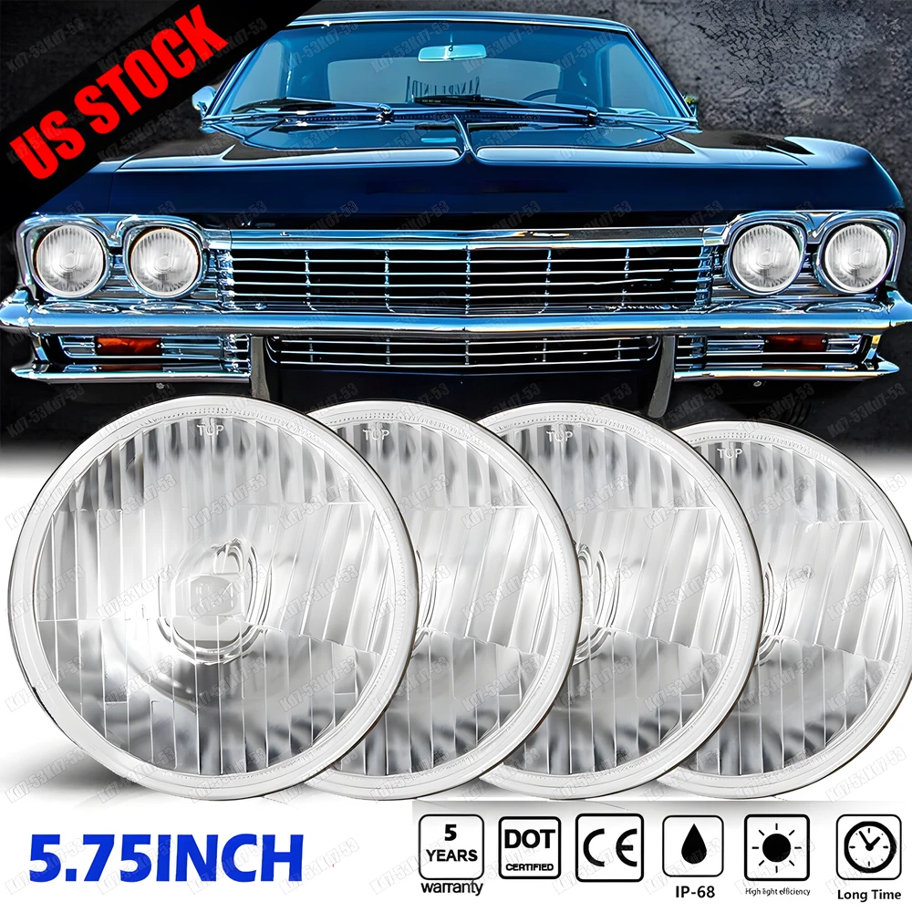 4PCS 5.75" 5 3/4 LED Headlights Halo DRL Hi/Lo For 58-75 Chevy Impala El Camino