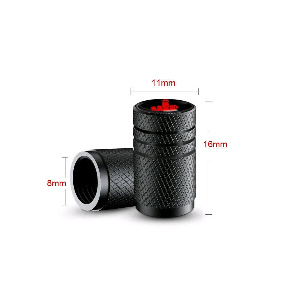 Feature: 1. Sturdy and durable: these wheel air valve covers are made of Aluminum alloy, hard and durable, the shape is not easy to change even if it gets pressure. 2. Sealed shape: the valve stems covers features with rubber o-ring seal inner, so it can not only help prevent leakage, but also can prevent water, snow, and dust from coming into the tire, thus prolong the tires service life 3. Wide application: this set of wheel air valve covers fits for many kinds of vehicles with American valves caps, such as cars, trucks, motorcycles, bicycles, electromobile, etc. 4. Can fit your tires well with complete o-ring seal, dustproof and waterproof . 5. Knurling design can provide a good grip for screwing them on and off. Easy to install or remove when you want to check air pressure. Easy to install and remove: Just screws onto tire valve stem, they can be installed without any tools. They are easy to remove. This car tire aluminum alloy valve cap is extremely durable and sturdy, anodized to prevent corrosion, light weight, suitable for most vehicles. Specifications: Material: Aluminum Color: as the picture shows Size: 16*11*8mm/0.63*0.43*0.31inch Applicable models: for universal cars Package includes: 4Pcs Car tire valve caps