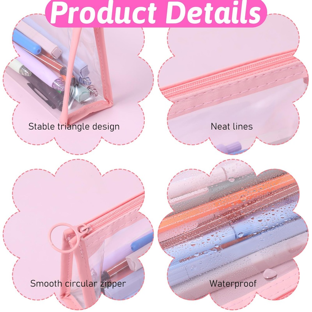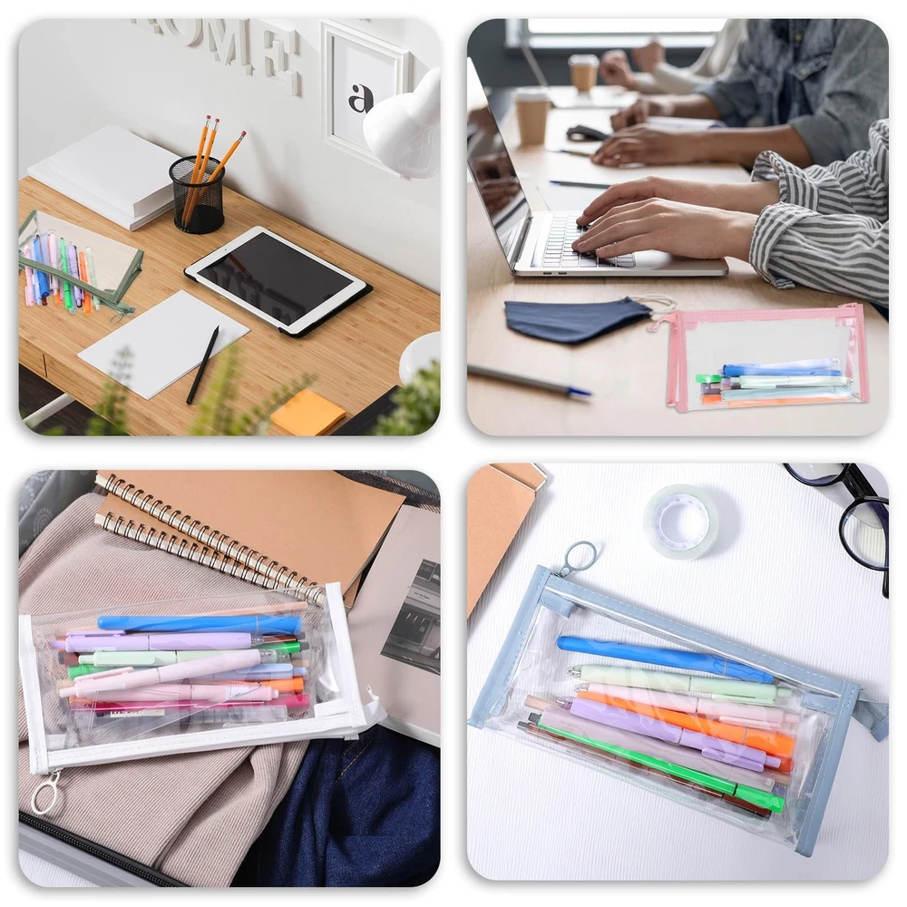 4PCS Clear Pencil Cases, Waterproof Pen Pouch with Zipper, Portable Travel Co...
