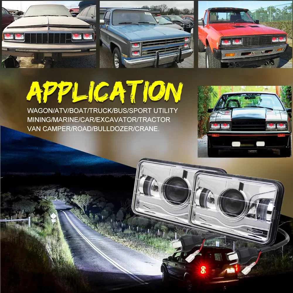 Features: LED Power: 100W Light type: Hi/Lo Beam(white light), diurnal white light Lumens: 6000LM Input Voltage: DC 9-32V (fits 12V, 24V vehicles) Color Temperature: Pure White 6000K Working Lifespan: Over 50,000 hours Working Temperature: -40 ~ 85 degrees Celsius M ethod to remove the moisture: If there is moisture or water in the headlight, please open the ventilation breather when headlight is on, then the moisture or water will disappear within short time and headlights can work normally again. Note: Please re-install the ventilation breather cap after the moisture or water in the headlight disappear. Package Includes: 4PCS of 4x6Inch LED Headlights Fitments: 1978-1983 American Motors Concord, 1980-1988 American Motors Eagle, 1979-1983 American Motors Spirit, 1975-1990 Buick Electra, 1976-1986 Buick LeSabre, 1982-1987 Buick Regal, 1975-1985 Buick Riviera, 1975-1985 Cadillac Eldorado, 1975-1985 Cadillac Seville, 1982-1992 Chevrolet Camaro, 1982-1987 Chevrolet Cavalier, 1982-1987 Chevrolet El Camino, 1980-1988 Chevrolet Monte Carlo, 1979-1986 Ford Mustang, 1993-1997 Ford Probe, 1980-1986 Nissan 720, 1982-1984 Nissan Maxima, 1977-1990 Oldsmobile 98, 1985-1987 Oldsmobile Calais, 1980-1991 Oldsmobile Cutlass Calais, 1982-1996 Oldsmobile Cutlass Ciera, 1980-1995 Oldsmobile Cutlass Cruiser, 1980-1987 Oldsmobile Cutlass Salon, 1980- 1988 Oldsmobile Cutlass Supreme, 1977-1991 Oldsmobile Delta 88, 1977-1981 Pontiac Firebird, 1976-1987 Pontiac Grand Prix, 1985-1989 Subaru DL, 1985-1989 Subaru GL, 1985-1989 Subaru GL-10, 1981-1984 Toyota Cressida, 1980-1984 Volkswagen Jetta, 1982-1986 Volkswagen Quantum