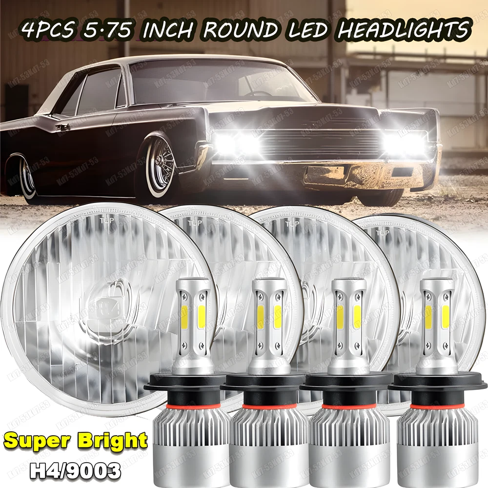 4PCS For Lincoln Continental 1958-1979 5-3/4" 5.75" LED Headlights Hi/Lo Beam
