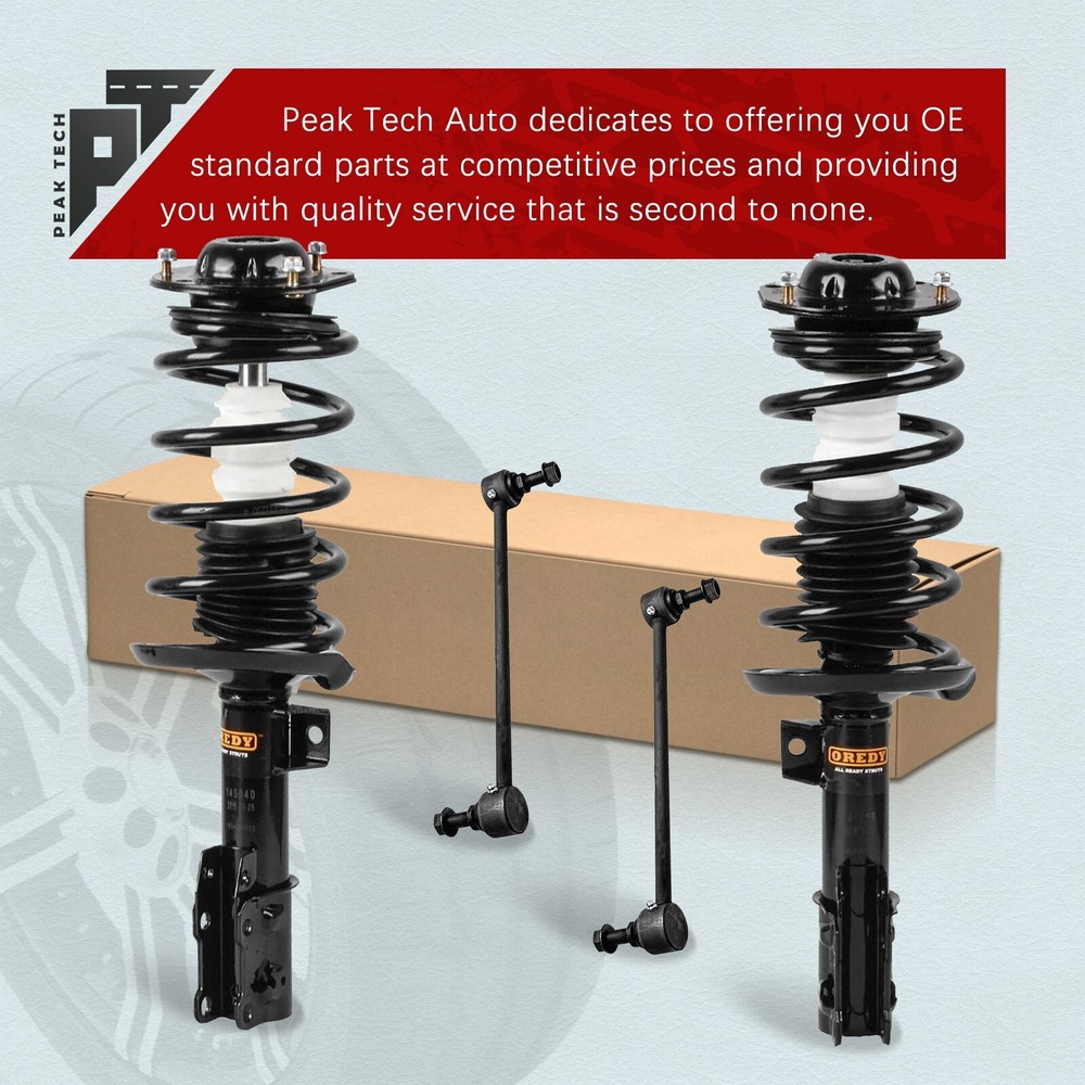 Please kindly know that Peak Tech is a certified distributor of Oredy products. Item in this listing is from brand Oredy. Store Home New Arrival View Feedback Contact us Add to Favourites 4PCS Front Struts & Sway Bar Links for Chevrolet Malibu Pontiac G6 Saturn Aura Assembly Items Description Package Includes: 1x Front Driver Side Complete Strut + 1x Front Passenger Side Complete Strut 2x Front Sway Bar Links Compatibility: [ Sway Bar 11.80" CENTER TO CENTER; without RPO Code FE5 (Performance Ride Handling Suspension) ] For 2004 - 2012 Chevy Malibu For 2005 - 2010 Pontiac G6 For 2007 - 2009 Saturn Aura Shipping Payment Return Warranty About us Shipping All orders in the continental 48 States will be shipped free of charge. Orders placed before 12pm (Eastern Standard) will be shipped the same business day of purchase. We only ship to the address provided to us at the time of checkout. Please verify the shipping address before making any payment. We do not ship to Hawaii, Alaska, Puerto Rico, APO/FPO/PO Boxes. Payment Paypal, Visa, and MasterCard are accepted forms of payment. Please use eBay checkout system when place your order. Immediate payment is required for all orders. Return Buyer has 30 days to return the items after receiving packages. Please note we only accept return for brand new products. When the return mistake is made on seller, we will provide a free return. Or, customer will be charged for return shipping fee. We will issue a refund to buyer after receiving and checking return packages. Warranty Peak Tech provides a Lifetime Warranty for original purchasers. If an auto part is defective, Peak Tech will provide ONE-Time replacement. Buyer needs to pay for the shipping cost of replacements occurred in warranty process. Buyer needs to provide Pictures or Video of damaged goods. About us Peak Tech focuses on auto parts and provides struts and shock absorbers suitable for a wide range of applications. Peak Tech products deliver the look, feel, fit and performance of OE. We provide buyers with professional customer service, and hope to offer buyers a better shopping experience. You May Also Like for Honda Accord 2008 - 2012 2.4L 2x Struts + 2x Sway Bars Front Right Left Side for Honda CR-V 2002 2003 2004 2005 2006 2PCs Struts Coil Spring Front Right Left for Honda CR-V CRV 2007 2008 2009- 2014 2PCs Struts Coil Spring Front Right Left for Honda Accord 2008 - 2012 2.4L 2PCs Struts Coil Spring Front Right Left Side for 2006 - 2011 Honda Civic 1.8L Sedan & Acura CSX 2PCs Struts Front Right Left Copyright © 2024, peak-tech-autoparts All Rights Reserved