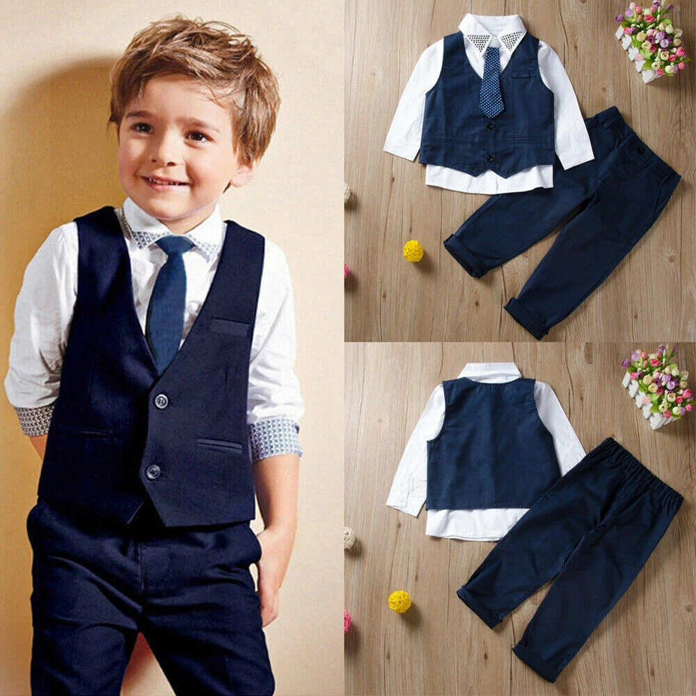Description Hello! Welcome to our store! Quality is the first with best service. customers all are our friends. Fashion design,100% Brand New,high quality! Features : Main Color : AS The Picture show New in Fashion,Handsome suit outfits set! Material : Cotton Blend Size chart: Attention plz: If your kid is chubby, we recomend choosing a larger size, thanks. Please kindly refer to your kids actual height and the size chart before buying/bidding. Thanks. Tag size Shirt length Shirt bust*2 Shirt sleeve Waistcoat length Waistcoat bust*2 Pants length Hip Age advice 1-2 Years 38cm/14.96" 28cm/11.02" 27cm/10.62" 35cm/13.77" 32cm/12.59" 48cm/18.89" 28cm/11.02" 1~2 years 2-3 Years 40cm/15.74" 30cm/11.81" 30cm/11.81" 36cm/14.17" 32cm/12.59" 52cm/20.47" 29cm/11.41" 2~3 years 3-4 Years 42cm/16.53" 32cm/12.59" 32cm/12.59" 37cm/14.56" 32cm/12.59" 55cm/21.65" 31cm/12.20" 3~4 years 4-5 Years 45cm/17.71" 33cm/12.99" 35cm/13.77" 39cm/15.35" 34cm/13.38" 59cm/23.22" 31cm/12.20" 4~5 years 5-6 Years 47cm/18.50" 34cm/13.38" 37cm/14.56" 41cm/16.14" 35cm/13.77" 62cm/24.04" 32cm/12.59" 5~6 years 6-7 Years 49cm/19.29" 36cm/14.17" 39cm/15.35" 44cm/17.32" 36cm/14.17" 65cm/25.29" 34cm/13.38" 6~7 years I value customer satisfaction. I would appreciate if satisfactory feedback is posted when item is received. I will do the same. Should a problem arise please send me an email prior to posting unsatisfactory/negative feedback. I will do my best to resolve it. Thanks for looking and Have a Great Day! What You Get: 1x Tops & 1x Waistcoat & 1x tie & 1x Pants NOTE: Please note that slight color difference should be acceptable due to the light and screen. 1.Please compare the detail sizes with yours before you buy!!! 2.Please allow 2-3cm differs due to manual measurement, thanks (All measurement in cm and please note 1cm=0.39inch) Thanks for your understanding. Detail Image Delivery Time: USA To USA: shipped by USPS, 2-4 working days UK&AU To UK&AU: shipped by Royal Mail , 1-3 working days China To USA: shipped by China Post Epacket, 7-15 working days China To UK&AU: shipped by China Post Epacket, 15-25 working days China To Other Countries: shipped by China Post Epacket, 25-35 working days Shipments & Payment: Your order will be handled within 1-2 business days after receiving your clear payment. Weekend excluded Tracking number will be provided for you ASAP. We accept PayPal. Return Policy: If you are not satisfied with the items, you can return for refund within 30 days after receives it. Buyer pay the shipping cost for return. contact me for the return address, we will refund your money within 2 days after receive the returned items. About Feedback: I appreciate your Positive comment and 5 star DSR(Detailed Seller Ratings) if you are satisfied with the items and my job, I will do better because of your encouragement. Also I will leave Positive feedback to you once I receive yours, thank you very much! Please do Not leave Neutral or Negative feedback and low DSR if you are not happy with the transaction, I think most problems can be resolved through sincere communication. We try our best to reply to your emails ASAP. However, due to high volume of daily incoming emails and time zone difference, we may not be able to reply your emails immediately. Please allow 1-2 business day for us to reponse. Please feel free to contact me if you have any question, I'll try my best to solve it for you.