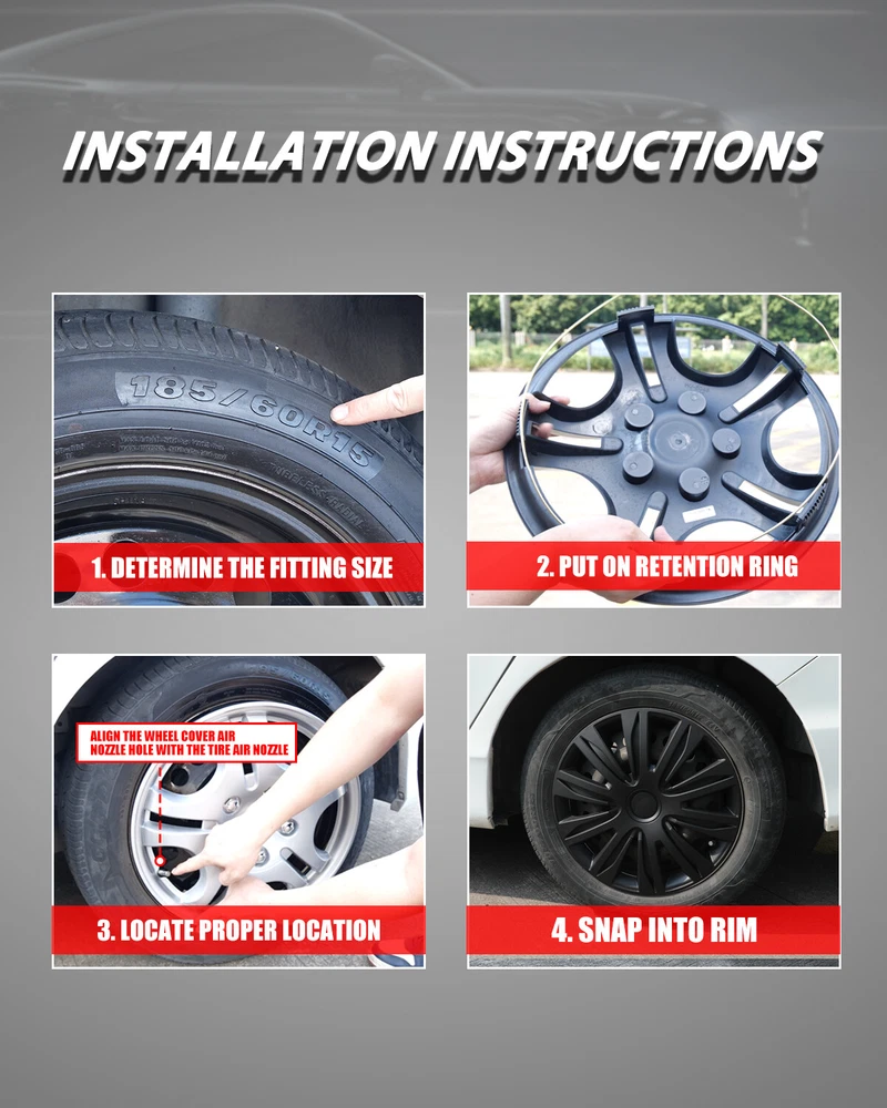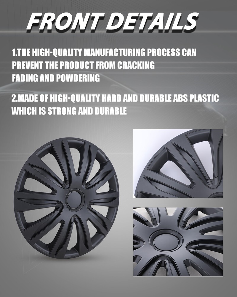 Store Categories Other Car Refrigerator Front Bumper Rear Bumper Fender Flares Inner Fenders Side Steps Running Board A-Pillar Light Mount Brackets Headlights Taillights Fog Lights LED Headlights LED Taillights LED Fog Lights Jeep Chevrolet Ford Toyota Dodge GMC Product Features ✴ PERFECT FIT: This wheel hub cap is specifically designed to perfectly fit for 17-inch wheels, ensuring a seamless match and enhanced aesthetics. It complements the overall design of the vehicle, elevating its visual appeal. ✴ HIGH-QUALITY MATERIAL: Constructed from high-quality materials, this wheel hub cap guarantees durability and longevity. It withstands various road conditions and environmental factors encountered during daily driving, maintaining its pristine condition. ✴ EASY INSTALLATION: Installing this wheel hub cap is a breeze and requires no specialized tools or modifications. It comes with a user-friendly system, allowing for a hassle-free installation process by following the provided instructions. ✴ PROTECTIVE FUNCTION: Besides its aesthetic appeal, this wheel hub cap serves as a protective barrier for the wheels. It prevents scratches and potential damage caused by stones, debris, or other objects, safeguarding the wheel's surface. ✴ AFTER-SALES SERVICE: If There Is a Loss of Product Parts, or Any Parts of The Problem, We Can Provide After-Sales Service, Please Contact Us on The Order Page. Product Specificataion ✴ Type: Hub caps ✴ Number in Pack: 4 ✴ Color: Matte Black ✴ Material: ABS ✴ Compatible Wheel Diameter: 17 in ✴ Finish: Matte ✴ Installation Type: Snap-On ✴ Model: Universal Hubcap for Iron Wheels , Not fit for Chevy Equinox All Models, TOYOTA SIENNA 17 inch models, VOLKSWAGEN GOLF 17 inch models Not fit for 2010-2011 Fusion, 2010-2011 Mercury Milan, 2008-2012 Chevy Malibu, 2007-2010 Pontiac G6 What You Get ✴ 1 Set of 4 Hub caps and 4 retention rings Payment Delivery details Terms of sales About us Contact us Payment We accept PayPal, credit card , Apple Pay & Google Pay etc. Delivery details All items will be shipped within 1-3 business days after payment received, we will try our best to ship out as soon as we can, hope for your understanding. Please double confirm your address and contact information, which will help the delivery faster and more accurately. Note :buyers who purchase international products need to pay import tariffs!!! Terms of sales Professional installation is highly recommended. Any problem of the item please feel free to contact us first , please D o Not leave negative feedback before that, or simply return it within 60 Days in original condition. We will resolve it for you ASAP. About us Any questions please do not hesitate to contact us directly by eBay message . We will reply you within 24 hours asap, thanks for your understanding. Contact us Should you have any problem or require any further information please feel free to contact us . If you are satisfied with our product and service, please kindly leave us a positive feedback. Popular Categories