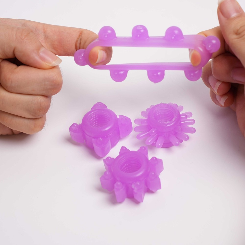 Private Shipping Specifications: It is made of premium material, which is non toxic and does no harm to your penis. You can drop lubricant before using this sex toy. Help delay ejaculation, make your sex time longer and satisfy your lover. Type: Penis Ring Material: TPE Features: Delay Ejaculation, Super Stretchy, Sex Toy 4 styles (as shown in the picture) Color:Purple/pink/blue Package Includes: 4 Penis Rings