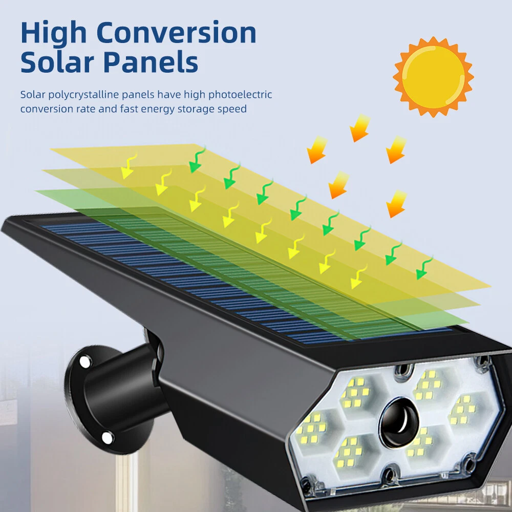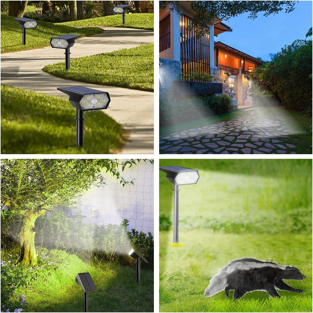 【Upgraded Bright Motion Sensor Spotlights】 : Our Solar Outdoor Spotlights has 42 high-quality LED beads and provide super bright 6500K light, which can increase brightness and illumination range of solar landscape spotlights. Equipped with photosensitive control and PIR sensor, our Solar Motion Lights have 140° detection angle and 8-10 meters sensing distance, which can triggered by human, animals, cars, bicycles, etc. 【High-Efficient & 2200mAh Large Capacity Battery】 : With large high-efficiency polysilicon solar panel, Solar Outdoor Lights can achieve up to about 35% conversion rate, so our outdoor solar spotlights have longer runtime. Built-in rechargeable 2200mAh Large Capacity Battery, it only takes 6-8 hours to charge under sunlight, and can work for 10-12 hours or even longer on the lightest mode. 【3 Lighting Modes】 : The motion sensor spotlights have both light sensing and motion sensing functions. Light Sensing Auto On/Off: The lights will turn off and charge in the daytime and automatically start to work at dusk. 3 Lighting Modes, you can set the mode as you like. 【 Durable and IP65 Waterproof】 : Made of high-quality durable ABS plastic, IP65 waterproof rate, the solar outdoor lights are heat resistant and frost resistant, can not only work in extreme weather, but also reach a a service life of 40000+ hours, perfect for lighting up in various outdoor scenes and landscape. 【 2 installation methods & easy installation 】 :The outdoor light of the motion sensor can be inserted into the ground with wooden stakes or installed on the wall (including screws). You can choose the installation method according to your own needs, which is perfect for yards, patios, garages, passages, gardens, walls and sidewalks.