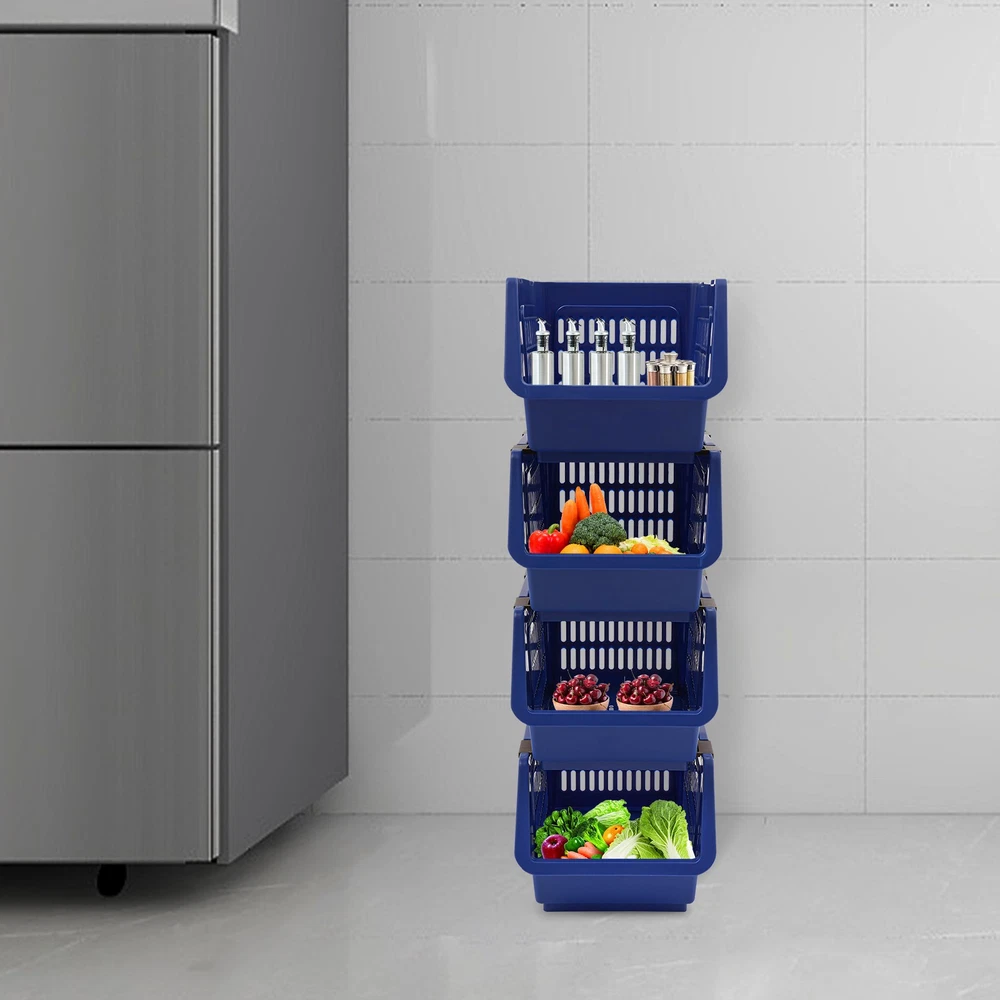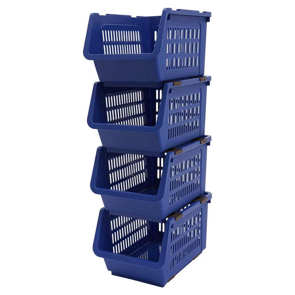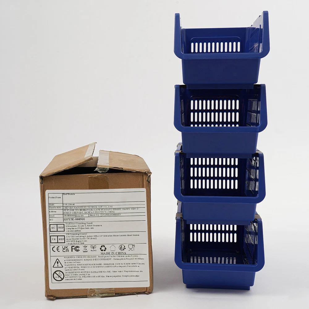 4PCS Stacking Storage Baskets, PP Plastic Stackable Organizer Bins Description This stackable storage basket is both stylish and practical. It is made of high-class material and is durable. The stylish appearance makes it a bright addition to the home environment. Whether it is the kitchen, bedroom, or office, it can help you easily store various items, starting a clean and organized new life! Key Features Made to Last: This product is made of premium PP with an injection molding process, which is safe to use, impact-resistant, odorless, and wear-resistant, ensuring long-term use. Large Capacity: 4 large-capacity baskets (four pieces combined together size: 9.5*13.4*29.9 in) provide plenty of storage space for your books, seasonings, and other items, creating a neater environment. Strong Load-bearing Capacity: Premium material and stable structure ensure a strong load-bearing capacity of 38.58 lbs (four pieces combined together), so you don't need to worry about it being easily deformed and damaged, using it with peace of mind. Stylish Appearance: The blue tone, rectangular shape, and smooth lines give this product a stylish appearance, making it easy to blend into various places. Space Saving: The vertical structure and small footprint (9.5*13.4 inches) allow it to fit better in the corners of the room without taking up much space. When you're not using these baskets, they can be nested with each other, which is convenient for storage and space-saving. User-friendly: The U-shaped bevel open-front design allows you to access your items without removing baskets stacked on top. Moreover, the raised opening design makes the placed items difficult to fall. The hollow design not only adds a sense of fashion but also maintains breathability so that items are not easy to breed mold. 4PCS: There are a total of 4 storage baskets inside the package, which you can use individually or stack the products into a multi-tier storage rack as needed. Easy to Move: The two rollers on the bottom make it easy to move this product, greatly saving effort. Effortless Cleaning: It has a smooth surface and a simple structure, so you can easily clean it with cloth (not included) and water. Ideal Gift: With good performance and a nice appearance, it can be used as an ideal housewarming gift for parents, friends, and lovers so that they can also enjoy a neater life. Details Smooth Edges: The rounded and smooth edges not only increase the aesthetics of the product but also improve the safety of use. Telescopic Buckles: They allow you to freely and securely combine 4 baskets together to form a multi-tiered storage rack. The buckle can be retracted for single-basket use. Application It can be used in the kitchen, bathroom, living room, laundry room, bedroom, toy room, office, classroom, etc, for storing vegetables, fruits, snacks, bath supplies, books, toys, and more. Specification Color: Blue Material: PP Process: Injection Molding Style: Modern Assembly Required: No Shape: Rectangular Mounting Type: Floor Standing Number of Pieces: 4 Overall Load-bearing Capacity(Four Pieces Combined Together): 17.5 kg/38.58 lbs Each Basket Height: 19cm/ 7.5 in Product Size(Four Pieces Combined Together): 24*34*76cm/9.5*13.4*29.9 in Package Size: 35*29*33cm/13.78*11.42*12.99 in Gross Weight: 1.9 kg/4.19 lbs Net Weight: 1.4 kg/3.09 lbs Package Included 4 * Stackable Storage Baskets Notes Please note that our package does not include other items. Please use within the product's load-bearing range. Please allow the slight color difference caused by the shooting light and 1-3cm error due to manual measurement, and make sure you do not mind before ordering. Payment Delivery details Terms of sales About us Contact us Payment We accept ebay payment 。 Fees such as import duties, taxes are not included in the item price or shipping costs. These charges are the buyer's responsibility. Delivery details Shipping: 2-9 working days to: USA Terms of sales We maintain high standards of excellence and strive for hundred percent customer satisfaction. Feedback is very important to us. We hope that you contact us immediately before you give neutral or negative feedback, so that we can address your concerns. It is impossible to address issues if we do not know about them! About us Your satis faction is our ultimate goal. We work hard to earn your trust and future business. Our certified technicians have tested each item before shipping. The unit comes with 1 year limited warranty on all manufacturing defects. a) If you receive a defective item, you may return it or ask for a discount. Please contact us within 14 days after you receive the package. b) What you returned must be intact and in its original packaging as re? u. Customer is responsible for shipping costs of the returned item. c) We will cover the cost of shipping back t with the shipping rate indicated in the registration page. We will send you a new unit or refund the full payment you paid. Thank you. Contact us Business Hour Business Hour: Monday To Friday: 8:30 AM to 5:00 PM (Beijing China time) Due to time zones, our reply to your questions may not be immediately. But within above working time, we will reply your email within 24 hours. If it's non-workdays, please kindly be patient and wait till Monday. Please contact us with ebay message. Please feel free to contact us if you have any questions. Monday To Friday: 8:30 AM to 5:00 PM (Beijing China time) Due to time zones, our reply to your questions may not be immediately. But within above working time, we will reply your email within 24 hours. If it's non-workdays, please kindly be patient and wait till Monday. Please contact us with ebay message. Please feel free to contact us if you have any questions. On Nov 27, 2025 at 22:45:42 PST, seller added the following information: