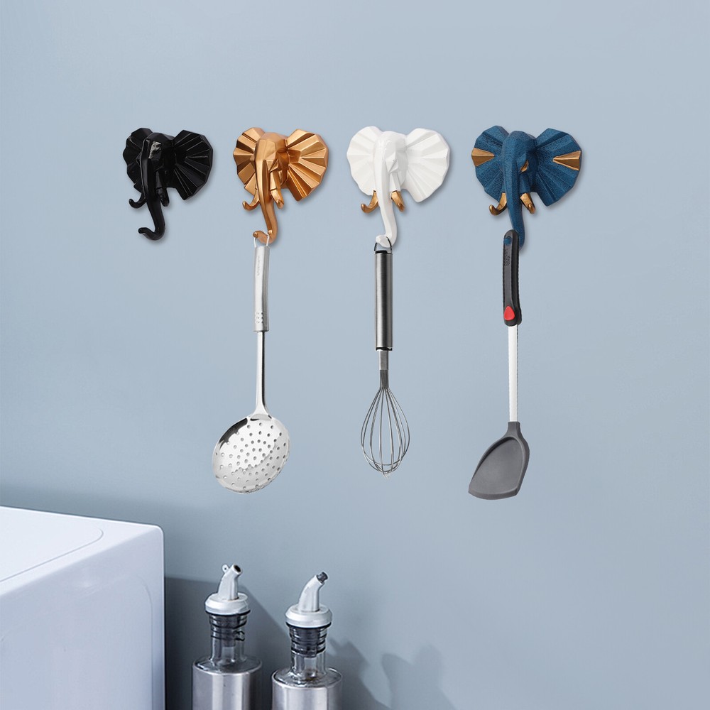 Specification Material: Resin Style: Modern Process: Spraying, Carving Color: Black+ Gold+ White+ Blue Mount Type: Wall Mounted Number of Items: 4 Load-Bearing Capacity: 5kg/11.02lbs (Drilling Installation), Approx. 3kg/6.61lbs (Adhesive Installation) Each Product Size: 10*4*11cm/3.94*1.57*/4.33in Package Size: 33*19*16cm/12.99*7.48*6.3in Gross Weight: 1kg/2.2lbs Net Weight: 0.8kg/1.76lbs Package Included 4 * Hooks Other Accessories for Installation 4PCS Resin Wall-mounted Decoration Hooks for Coat/Key/Bag&Creative Coat Hooks Welcome~ Description In addition to their cute appearance, each hook has been carefully designed to ensure good load-bearing capacity and high durability, allowing small objects in daily life to have a place to stay. The 4-piece design allows you to apply it to multiple spaces. They are not only practical daily assistants, but also works of art on the wall, silently telling home stories. Key Features Good Material: The product is made of high-quality resin through spray painting and carving treatment, which is environmentally friendly and non-toxic , and has a long service life. Creative Styling: The geometric elephant-head shape full of creativity can add fun to the wall, attract attention, and become a highlight of your home decoration. Space Saving: The wall-mounted design allows you to fully utilize the wall space and hang various items such as keys, bags, scarves(not included), etc., saving a lot of desktop space while allowing for easy access. Good Load-Bearing Capacity: When using perforated installation, each hook can withstand a weight of 11.02 pounds, ensuring the safety and stability of the hung items. 4PCS A Set: This set includes 4 hooks that can be arranged on different walls or rooms as needed while streamlining the purchasing process. Multiple Installation Methods: The package comes with expansion screws, traceless nails, and adhesive patches, allowing you to use different installation methods according to different wall surfaces. Easy Clean-Up: The surface of the product is smooth and the structure is simple. You can easily use a soft cloth(not included) to wipe it clean. Ideal Gift: Thanks to its beautiful appearance and practicality, you can give it as a gift to your friends on their birthday, housewarming, or any other holiday. Details Smooth Edges: The smooth edges without burrs prevent your clothes, bag, or other items from being scratched. Adhesive Pads: They are carefully cut to fit the edges of the product, making the installation more aesthetically pleasing, easy, and firm. How to Install Traceless Nails Installation: 1. Tap the traceless nails into the wall. 2. Insert the hook into the slot and press it tightly. Traceless Nails & Screws Installation: 1. Use a 5mm drill bit (excluded) to drill holes in the wall. 2. Secure the traceless nails to the wall with screws and nails. 3. Insert the hook into the slot and press it tightly. Screws Installation: 1. Use a 5mm drill bit (excluded) to drill holes in the wall. 2. Insert the expansion plug into the holes. 3. Screw the screws into the plugs. Adhesive Installation: 1. Tear the protective film and stick the adhesive pad on the back of the hook. 2. Stick the hook onto the wall, press firmly, and wait for 24 hours before using it. Application This product can be widely used in entrances, bedrooms, living rooms, dressing rooms, cloakrooms, changing rooms, coffee shops, offices, studios, and other spaces to hang your jackets, scarves, bags, towels, keys, hats, umbrellas, or other items. Specification Material: Resin Style: Modern Process: Spraying, Carving Color: Black+ Gold+ White+ Blue Mount Type: Wall Mounted Number of Items: 4 Load-Bearing Capacity: 5kg/11.02lbs (Drilling Installation), Approx. 3kg/6.61lbs (Adhesive Installation) Each Product Size: 10*4*11cm/3.94*1.57*/4.33in Package Size: 33*19*16cm/12.99*7.48*6.3in Gross Weight: 1kg/2.2lbs Net Weight: 0.8kg/1.76lbs Package Included 4 * Hooks Other Accessories for Installation Notes Adhesive installation is suitable for smooth walls such as metal, marble, glass, latex paint, stone, wood, plastic, and ceramic tiles. It is not suitable for wallpaper walls, wall cloth walls, or white walls. Please do not hang too heavy products on the installed products. Please allow the slight color difference caused by the shooting light and 1-3cm error due to manual measurement, and make sure you do not mind before ordering. tu1 Payment Delivery details Terms of sales About us Contact us Payment We accept ebay payment ใ Fees such as import duties, taxes are not included in the item price or shipping costs. These charges are the buyer's responsibility. Delivery details Shipping: 2-9 working days to: USA Terms of sales We maintain high standards of excellence and strive for hundred percent customer satisfaction. Feedback is very important to us. We hope that you contact us immediately before you give neutral or negative feedback, so that we can address your concerns. It is impossible to address issues if we do not know about them! About us Your satis faction is our ultimate goal. We work hard to earn your trust and future business. Our certified technicians have tested each item before shipping. The unit comes with 1 year limited warranty on all manufacturing defects. a) If you receive a defective item, you may return it or ask for a discount. Please contact us within 14 days after you receive the package. b) What you returned must be intact and in its original packaging as re? u. Customer is responsible for shipping costs of the returned item. c) We will cover the cost of shipping back t with the shipping rate indicated in the registration page. We will send you a new unit or refund the full payment you paid. Thank you. Contact us Business Hour Business Hour: Monday To Friday: 8:30 AM to 5:00 PM (Beijing China time) Due to time zones, our reply to your questions may not be immediately. But within above working time, we will reply your email within 24 hours. 