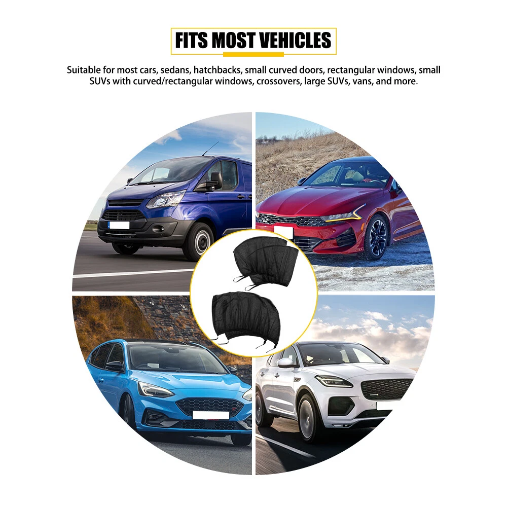 Description: Material:nylon mesh + cardboard Item Type:Sun Shade Color:Black Product Weight:225g Size Front window size:40CM/15.7inch Maximum stretching length(Front):85cm/33.5 inch Rear window size:55cm/21.7 inch Maximum stretching length(Rear):95cm/37.4 inch 4PCS Sun Front Shade Rear Mesh Window screen Cover Sunshade Protector For Car Description: Material:nylon mesh + cardboard Item Type:Sun Shade Color:Black Product Weight:225g Size Front window size:40CM/15.7inch Maximum stretching length(Front):85cm/33.5 inch Rear window size:55cm/21.7 inch Maximum stretching length(Rear):95cm/37.4 inch Features: 1.Constructed with flexible mesh - Lightweight and foldable, thus occupying no room inside the car. 2.Reduces the interior temperature, protects rear seat passengers from glare and sunburn. 3.High breathable mesh allow the air flow into the inside of the car when you roll down the windows. 4.Stretch Sunshade - easy to install and accept them quickly. 5. The mesh car sun shades will crate a privacy room for the back seat passengers. You can see clearly form the car inside but it’s hard to see the inside from the outside. Your valuables leave in the car will not be coveted. Package Include: Front window 55*50cm, rear window 40*50cm Item Specifics Brand AUXITO Manufacturer Part Number Does Not Apply Manufacturer Warranty 1 Year Custom Bundle No Modified Item No Type Window Shade Sun Universal Fitment Yes Number of Pieces 4 Fitment Type Direct Replacement Features Durable, Easy Installation Packaging Included Window Shade Sun*4 Placement on vehicle Front,Rear,Left,Right Color Black FAQ ♥ If you have a decoding problem or any other problems, please contact us first, we will help you with it. We will reply you within 24 hours in working days. I'm a new seller, thanks a lot for your trust and convince! I will serve you with all my heart. ♥ Q1: Will this bulb fit my vehicle? A: We can match almost any vehicle to one of our bulb sizes. eBay only lets us include some vehicle fitments per listing, but if your vehicle does not show up on the compatibility table at the top of our listings, welcome you to contact us for free consulation before purchasing a product. Q2: My item has not arrived, what's taking so long? A: Sometimes items take longer than expected, especially if it’s going far or to rural area. Check with your post office to see if your item has been held up. Sometimes Royal Mail will not update a tracking number until it has arrived at its destination. If your item still don't arrive after a few days, let us know so we can double check for you and help solve it asap. Q3: My bulbs won't fit, help! A: Special bulb holder may be required. See if you can take the holder from the stock bulb. If not, let us know. The bulb size may be wrong, double check the item you received with the item you ordered. Do you have an aftermarket lighting housing? These may not be perfectly fitted for aftermarket bulbs and will require some manual modifications. Q4: Neither side lighting up? Both sides flicker, hyper flash, or work inconsistantly. A:Check the light fuses, and then check the ballast plugs to insure correct installation. If this doesn't work, there may be a voltage problem with the vehicle. You probably just need a relay or capacitor. Even though some bulbs are builtin resistors, they may still need a decoder. Pay & Ship (1). We gladly accepts payment via PayPal, We will ship your item(s) within 24 hours. (2). Before payment, please keep the consistency of Paypal address and ebay address. (3). Quantity orders are welcome! Returns (1). We offer 60 days free return policy. Please contact us within 60 days from the date you receive your order if you have any issues with the product or want return. Refund will be send after we got your resend package. (2). All returned items should be in the original packaging , return tracking information should be provided . Contact Us (1).Negative feedback will not help resolve any problems you have, please contact us via eBay messages before leaving negative feedback , our customer service will make best effort to help you with the issues. (2).We maintain high standards of excellenceand strive for 100% customer satisfaction! Feedback is very important to us. We request that you contact us immediately before you give us neutral or negative feedback, so that we can satisfactorily address your concerns. About us We're professional in car and motorcycle accessories, especially in LED bulbs. We have our own factory and R&D team. Our belief is to sell top quality items that fit your car and serve you with our heart. Anything please feel free to contact us! Our customer service is very responsibility. Come and follow us! DESCRIPTION NEW ARRIVED HOT SALE CONTACT US SAVE US Store Category Store Home Other Hot Item For Dodge Charger 2011-2021 6pc Black Pillar Posts Set Door Trim Piano Cover Kit USD 12.99 Fire Extinguisher Holder,Car Accessories for Jeep Wrangler Tj Jk Jl 1997-201 USD 9.79 Car Trunk Organizer Oxford Interior Accessories Back Seat Storage Bag 4 Pocket USD 15.89 4x Car Accessories Universal Front Rear Mud Flap Flaps Splash Guard Mudguards US USD 24.99 Windshield Reveal Surround Molding Trim For 2006-2011 Honda Civic 73150-SNA-003 USD 12.98 New List Item For 2014-2020 Nissan Rogue 8X Black Side Window Door B Pillar Post Cover Trim USD 14.99 10ft Protector Sill Scuff Car Auto Door Plate Anti-Sticker Scratch Bumper Strip USD 10.99 2X Front Windshield LHRH Wiper Cowl Extension Trim For 2013-2019 Toyota RAV4 USD 14.99 2X Front LE+RH Windshield Wiper Cowl Extension For Trim 2013-2015 Nissan Altima USD 14.99 16X Pillar Posts Door Window Trim Cover for 2020-2022 Toyota Corolla Accessories USD 16.99 Picture 4PCS Sun Front Shade Rear Mesh Window screen Cover Sunshade Protector For Car Description: Material:nylon mesh + cardboard Item Type:Sun Shade Color:Black Product Weight:225g Size Front window size:40CM/15.7inch Maximum stretching length(Front):85cm/33.5 inch 