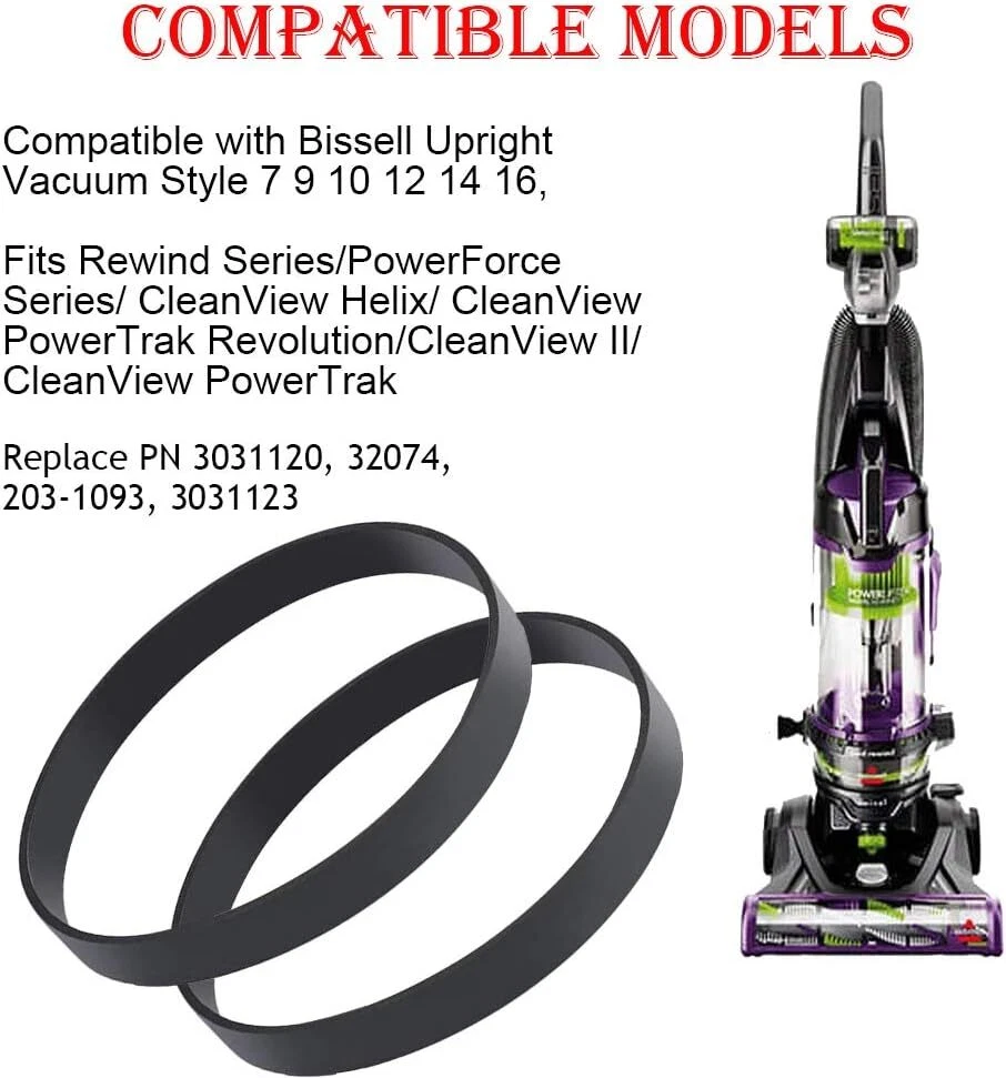 Item always Will Be Sent Out in 24 Hours From Monday to Saturday From California USA With USPS Tracking No. **Please Note: When comparing your old belt to the new one, it is common for the new belt to be 1" to 3" shorter in length than the old, stretched and worn belt. You should have to stretch the belt fairly hard put the brush-roll in place, it is this tension that causes the brush-roll to turn. Once the brush-roll is in place, make sure the brush spins easily by turning with your hand and the belt is not pinched between the roller and the housing, this would cause the belt to snap immediately if not corrected. It is always a good idea to have spares on hand. [Wide Compatibility] These vacuum belts are designed to compatible with Bissell Upright Vacuum Style 7 9 10 12 14 16, fits Rewind Series/PowerForce Series/ CleanView Helix/ CleanView PowerTrak Revolution/ CleanView II/ CleanView PowerTrak. Replace p/n 3031120 & 32074 [Premium Quality] Our belt is made of good rubber, so it has a long service life and is fully compatible with the suitable vacuum cleaner [Easy to install] The replacement of the belt is very simple, just use tools to remove the old belt and replace it with a new belt, but please unplug the power supply for safety [Replacement Belts] Because the vacuum cleaner is often used, the belt is easy to wear. It is recommended to check whether the belt is worn out in 3-6 months, and it will not affect normal use. If it is worn out, please replace the belt [Service] Product provides 24-hour customer service. If you have any issues, please get in touch with us and we will reply in time **Please Note: When comparing your old belt to the new one, it is common for the new belt to be 1" to 3" shorter in length than the old, stretched and worn belt. You should have to stretch the belt fairly hard put the brush-roll in place, it is this tension that causes the brush-roll to turn. Once the brush-roll is in place, make sure the brush spins easily by turning with your hand and the belt is not pinched between the roller and the housing, this would cause the belt to snap immediately if not corrected. It is always a good idea to have spares on hand. Payment 1.We only accept PayPal. Credit card payment can also be made via PayPal.eBay Immediate Payment via PayPal. 2.Please fill in a valid contact address. Shipment Items are usually shipped 1 business days after payment has been received. We do not ship on weekends and holidays. Sellers are not responsible for service transit time. Transit times are provided by the carrier, exclude weekends and holidays, and may vary with package origin and destination, particularly during peak periods. Return Policy Out 30-day Satisfaction Guarantee assures our customers that they will receive all orders promptly and exactly as described. In addition , it allows customers to return new and unused products in their original factory condition for any reason within 30 days from the date of purchase. Notice: 1.All returns must be pre-approved by Seller and have a return merchandise authorization (RMA) number. Any problem about item, Please Send the eBay message to us ,we will respone in 24 hours 2.Buyers are responsible for appropriate packing, returning shipping cost, insurance and returning the item in “new” condition. Used items will not be accepted for return. 3.We will replace the returning item with an identical item, issue a full refund. Contact us 1.If for some reason there is any issue with the purchase, please contact us prior to leaving any negative or netrual feedback, and we will work with you to have it resolved.