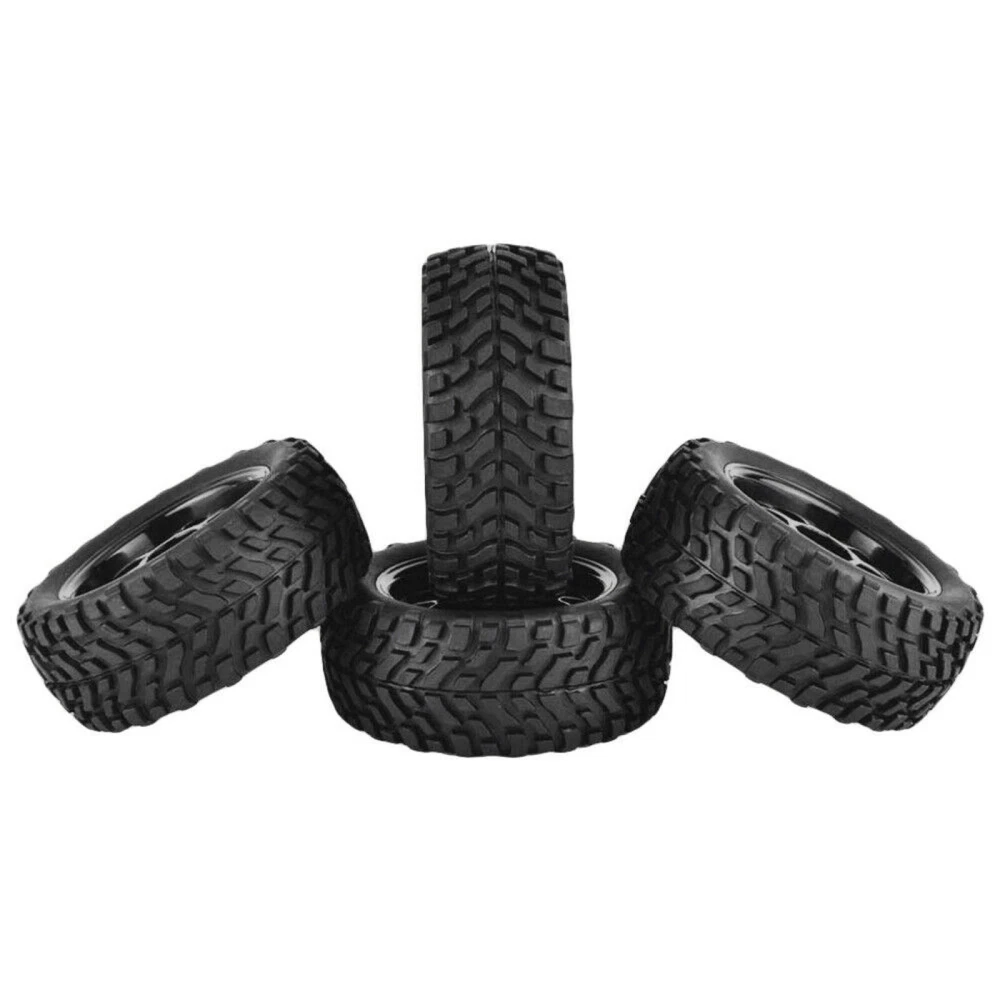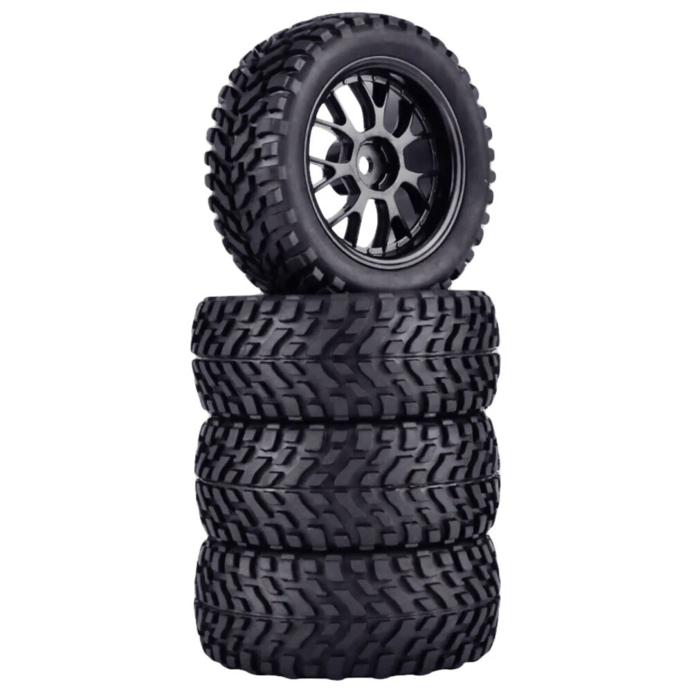 4Pack 1:10 75mm RC Racing Car Rubber Rally Car Wheel Rim & Tires Hex For HSP HPI