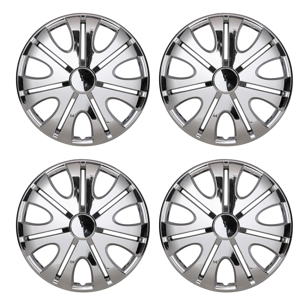 4PCS 16-Inch Universal Snap-On Hubcaps for Cars & Trucks in Silver Molded Design