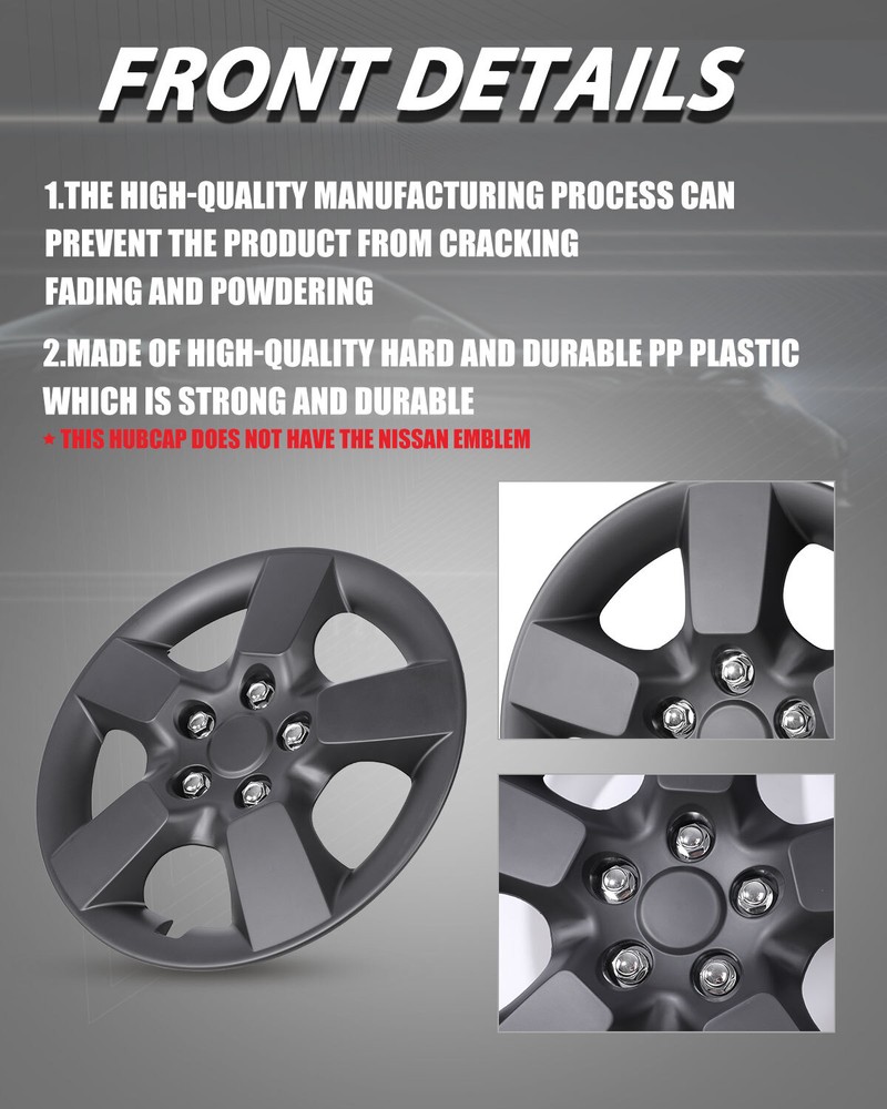 Store Categories Other Car Refrigerator Front Bumper Rear Bumper Fender Flares Inner Fenders Side Steps Running Board A-Pillar Light Mount Brackets Headlights Taillights Fog Lights LED Headlights LED Taillights LED Fog Lights Jeep Chevrolet Ford Toyota Dodge GMC Wheel Covers Features ✴ PERFECT FIT: This wheel hub cap is specifically designed to perfectly fit for 16-inch wheels, ensuring a seamless match and enhanced aesthetics. It complements the overall design of the vehicle, elevating its visual appeal. ✴ HIGH-QUALITY MATERIAL: Constructed from high-quality materials, this wheel hub cap guarantees durability and longevity. It withstands various road conditions and environmental factors encountered during daily driving, maintaining its pristine condition. ✴ EASY INSTALLATION: Installing this wheel hub cap is a breeze and requires no specialized tools or modifications. It comes with a user-friendly system, allowing for a hassle-free installation process by following the provided instructions. ✴ PROTECTIVE FUNCTION: Besides its aesthetic appeal, this wheel hub cap serves as a protective barrier for the wheels. It prevents scratches and potential damage caused by stones, debris, or other objects, safeguarding the wheel's surface. ✴ AFTER-SALES SERVICE: If There Is a Loss of Product Parts, or Any Parts of The Problem, We Can Provide After-Sales Service, Please Contact Us on The Order Page. Wheel Covers Specification ✴ Type: Hub caps ✴ Number in Pack: 4 ✴ Color: Matte Black ✴ Material: PP ✴ Compatible Wheel Diameter: 16 in ✴ Finish: Matte ✴ Installation Type: Snap-On ✴ Model: ‎For 2008-2015 Nissan Rogue/For 2008-2015 Nissan Rogue Select Wheel Covers Package ✴ 1 Set of 4 Hub caps and 4 retention rings Payment Delivery details Terms of sales About us Contact us Payment We accept PayPal, credit card , Apple Pay & Google Pay etc. Delivery details All items will be shipped within 1-3 business days after payment received, we will try our best to ship out as soon as we can, hope for your understanding. Please double confirm your address and contact information, which will help the delivery faster and more accurately. Note :buyers who purchase international products need to pay import tariffs!!! Terms of sales Professional installation is highly recommended. Any problem of the item please feel free to contact us first , please D o Not leave negative feedback before that, or simply return it within 60 Days in original condition. We will resolve it for you ASAP. About us Any questions please do not hesitate to contact us directly by eBay message . We will reply you within 24 hours asap, thanks for your understanding. Contact us Should you have any problem or require any further information please feel free to contact us . If you are satisfied with our product and service, please kindly leave us a positive feedback. Popular Categories On Jun 13, 2025 at 03:58:52 PDT, seller added the following information: