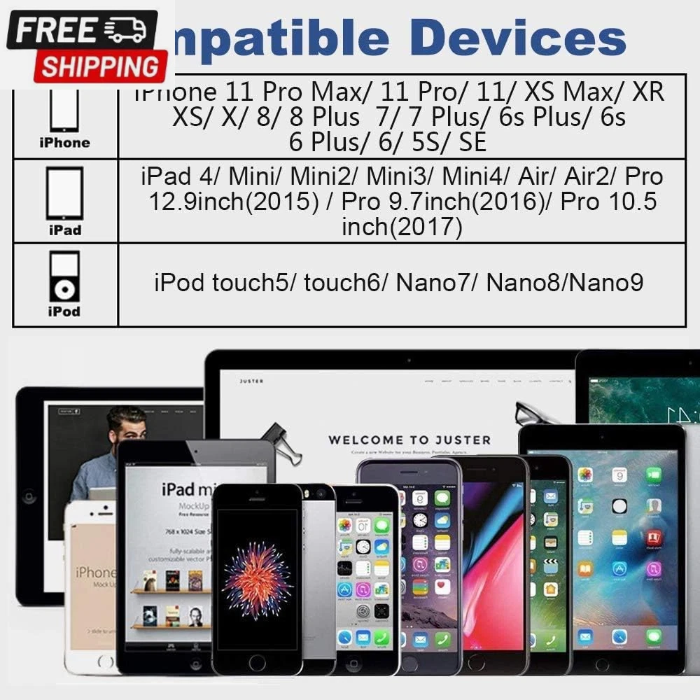 Store New Arrivals Add to Favorite View Feedback Contact 4Pack [Apple Mfi Certified] Charger Lightning to USB Charging Cable Cord Compatible Iphone 14/13/12/11 Pro/11/Xs Max/Xr/8/7/6S Plus,Ipad Pro/Air/Mini,Ipod Touch Description Item model number MLS003 Whats in the box 4 Pack [Apple MFi Certified] Lightning to USB Charging Cable Connectivity technologies USB to lightning Number of Items 4 Country of Origin China Specification Met MFI Other display features Personal Computer Unit Count 13.2 Foot Connector Gender Male-to-Female Number of Pins 4 Model Name MLS003 Special features iPhone Charger Fast Charging Cord Package Dimensions 7.68 x 4.41 x 0.55 inches Indoor/Outdoor Usage Outdoor, Indoor AC Adapter Current 2.4 Amps Connector Type USB Type A Item Weight 0.7 ounces Special Feature iPhone Charger Fast Charging Cord Compatible Phone Models iPhone 14/14 Plus/14 Pro/14 Pro Max/13/13 Mini/13 Pro/13 Pro Max/12/12Pro/12 Pro Max/12 Mini/11/11 Pro/11 Pro Max/XS Max/XS/X/XR/8 Plus/8/7/7 Plus/6s/6s Plus/6/6 Plus/SE/5s/5/5c., iPad Pro/ iPad Air/ iPad, AirPods Pro. Data Transfer Rate 0.48 Gigabits Per Second Color White Wattage 12 watts Cable Type TPE Environmentally Friendly Materials Compatible Devices Tablet, Smartphone Shape Round Recommended Uses For Product Works with USB wall charger Size 3.3ft ABOUT US We offer the best prices around on high quality products. Our E-store includes media such as books, movies, music and games while offering electronics, toys, sporting apparel, clothing, tools, general home, garden items and more. SHIPPING We are always working hard to ensure your package arrives as soon as possible. Please understand that some factors like weather, high postal traffic, and the performance of shipping companies are outside of our control. We offer free shipping to the lower 48 states and ship within 2 business days of payment, usually sooner. We do not accept P.O. Boxes. Please provide a physical address. For shipping outside of the continental USA, we only use eBay's Global Shipping Program.The item is shipped to KY and then sent to the rest of the world. International customers are responsible for all duties and taxes. Continue to check out in order to calculate costs for shipping the item to your country. Messages regarding eBay's Global Shipping Program MUST be directed at eBay EXCLUSIVELY. RETURNS We offer a 30-Day Return Policy on items which you are not completely satisfied with. You have the option for a full-refund or an exchange of the item. No returns are available on items shipped outside of the USA. PAYMENT We accept PayPal. CONTACT US This page content is yet to come Please ad us to your favorite seller and visit again later Thank You CUSTOMER SATISFACTION We try our very best to make sure every customer is completely satisfied. If there's a problem, message us! We're happy to help. WE ACCEPT https://www.ebay.com/str/ysrastore