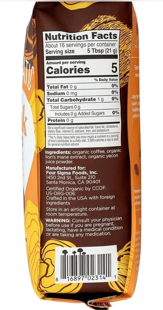 4-Pack Four Sigmatic Lion’s Mane Whole Bean Coffee 12oz Exp 06/2026