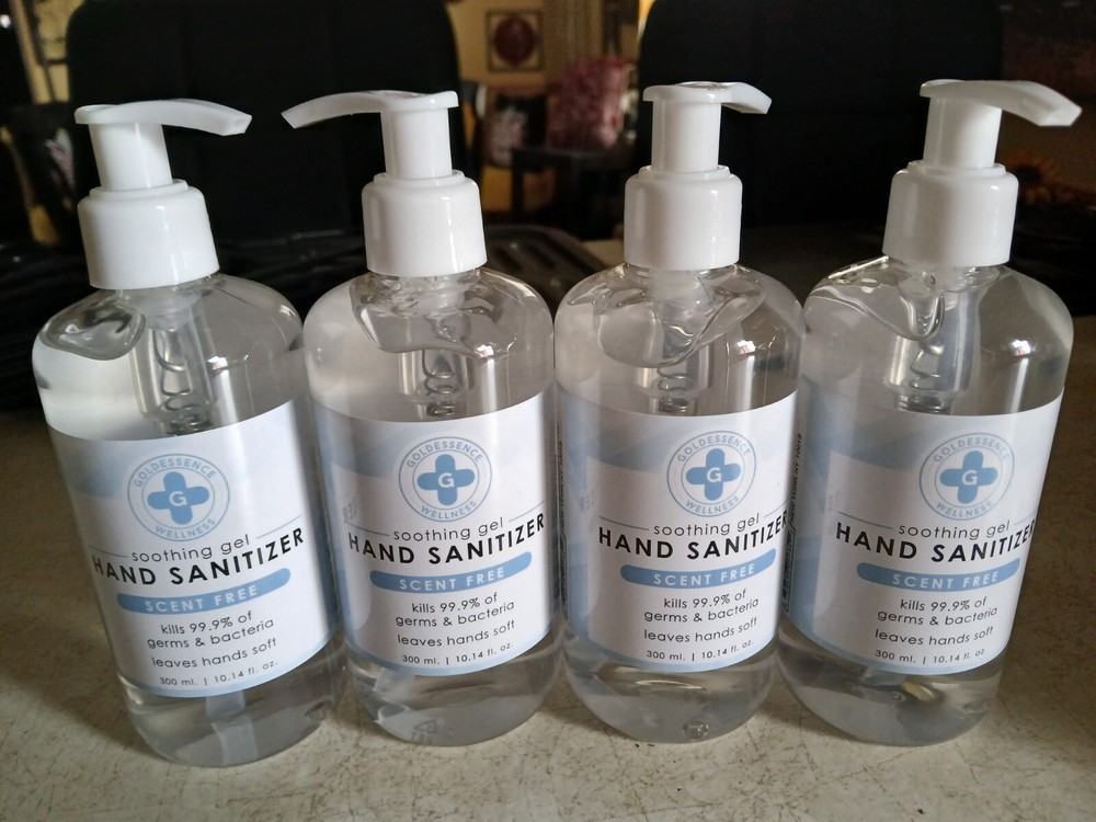 Lot Of 4 Goldessence Wellness Sothing Gel Hand Sanitizer Scent Free Kills....