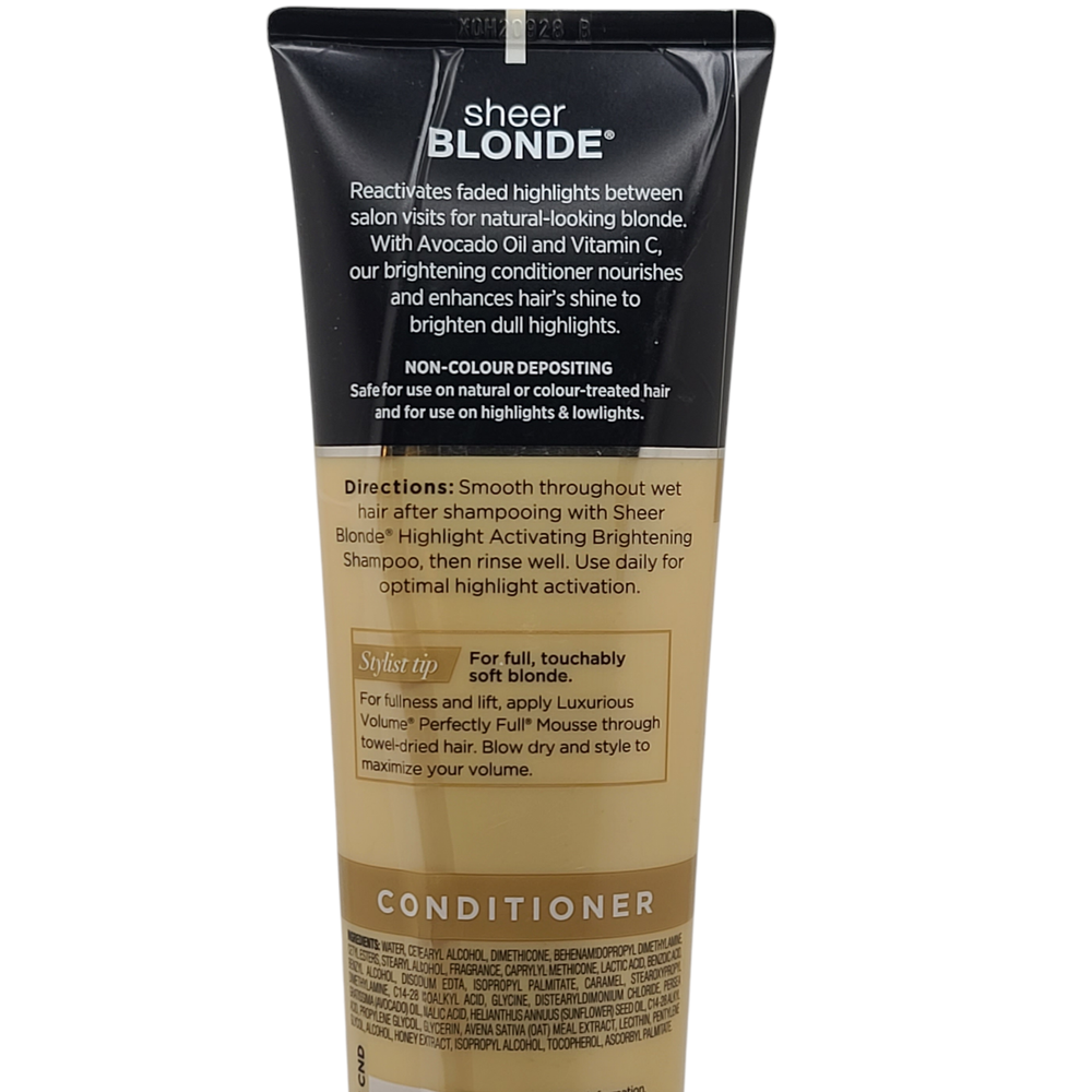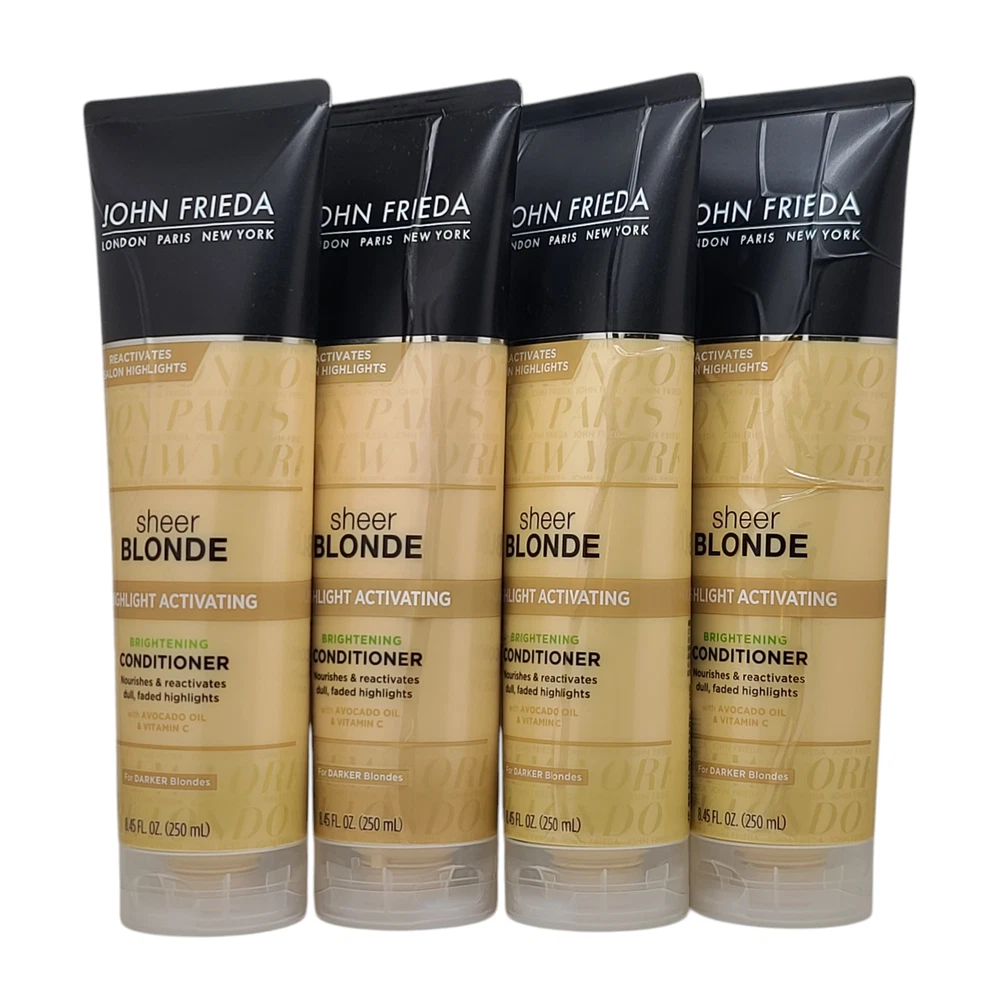 KleverKosmetics Our eBay Store About Us Contact Us Add to Favorite Sellers 4 Pack, John Frieda Sheer Blonde Highlight Activating Brightening Conditioner 8. 4 Pack!! John Frieda's Sheer Blonde Highlight Activating Brightening Conditioner 8.45 oz is specifically formulated to enhance and brighten blonde hair, whether natural or color-treated. Infused with sunflower and white tea, this conditioner nourishes and improves the texture of each strand, leaving hair healthier, shinier, and more luminous. It effectively removes dull build-up, revealing natural-looking blonde with a full spectrum of tones. 4 Pack!! Enhances Blonde Highlights: Formulated to enhance natural or color-treated highlights, boosting brightness and vibrancy. Nourishing Ingredients: Enriched with sunflower and white tea to nourish and improve hair texture, promoting softness and shine. Moisturizing Formula: Hydrates and softens hair, leaving it smooth and manageable. Safe for Color-Treated Hair: Suitable for both natural and color-treated blonde hair, preserving color vibrancy. Free from Harsh Chemicals: Formulated without parabens, phthalates, ammonia, and silicones, ensuring safe use for color-treated hair. Return and Refund Information • Please be aware that colors on the screen may appear slightly different in person. • Please be familiar with product. Feel free to contact us if you have any questions. • DUE TO HEALTH AND SANITARY ISSUES CONCERNING COSMETICS OR SKINCARE WE DO NOT ACCEPT RETURNS ON THESE ITEMS. ALL SALES ARE FINAL. • WE WILL ONLY ACCEPT RETURNS WHEN THE ERROR IS ON OUR END. • Attention VeRO members: We're not affiliated with or endorsed by the companies mentioned in this listing. All trademarks and copyrights are acknowledged, they are only used for informative description of the items offered for sale. Warranty information We are not an authorized dealer of this product and any warranty included with the product may not be honored by the manufacturer.