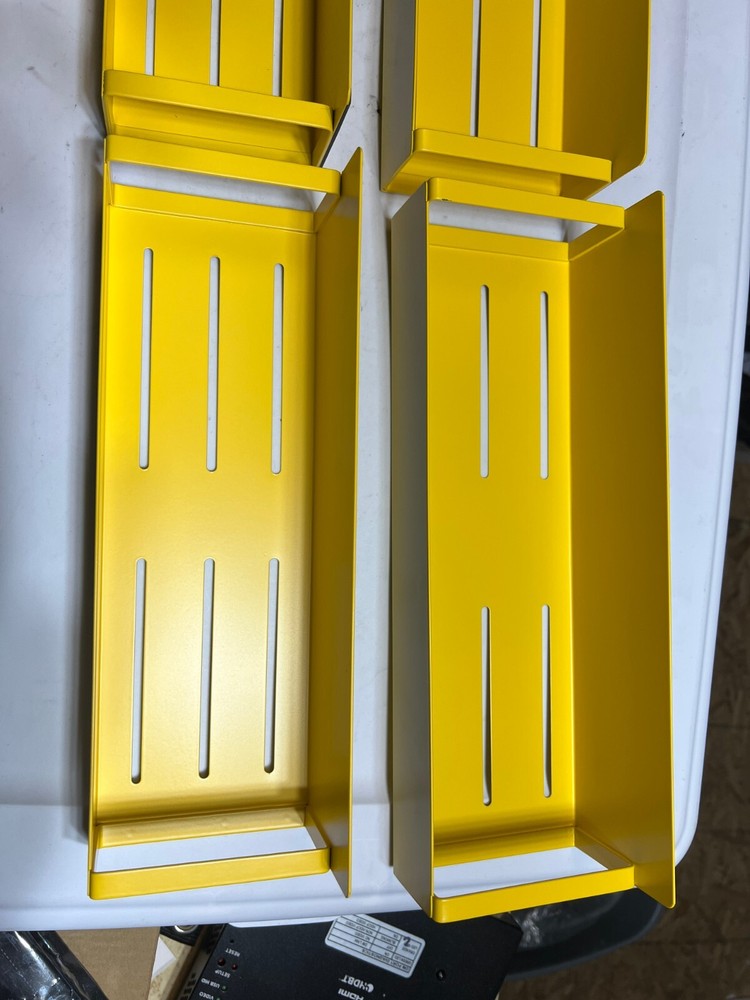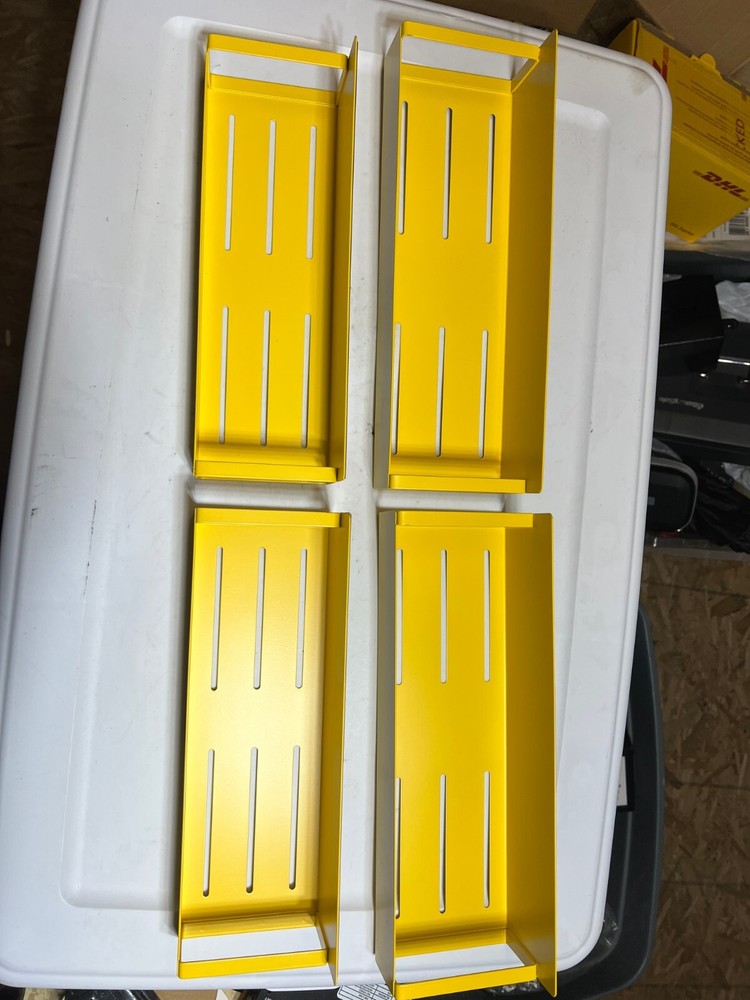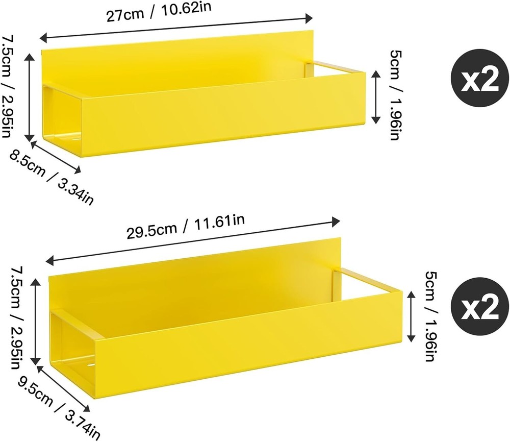 4 Pack Moveable Fridge Magnetic Spice Racks, Metal, Yellow Sturdy metal, painted finish, rust-proof, corrosion-resistant No drilling or assembly required Super strong magnet on the back Adsorbable on other metal surface 1 shelf supports up to 12 normally spice jars, bearing up to 14 lbs Package including 4 pieces metal magnetic shelves(2 Large,4 Medium)