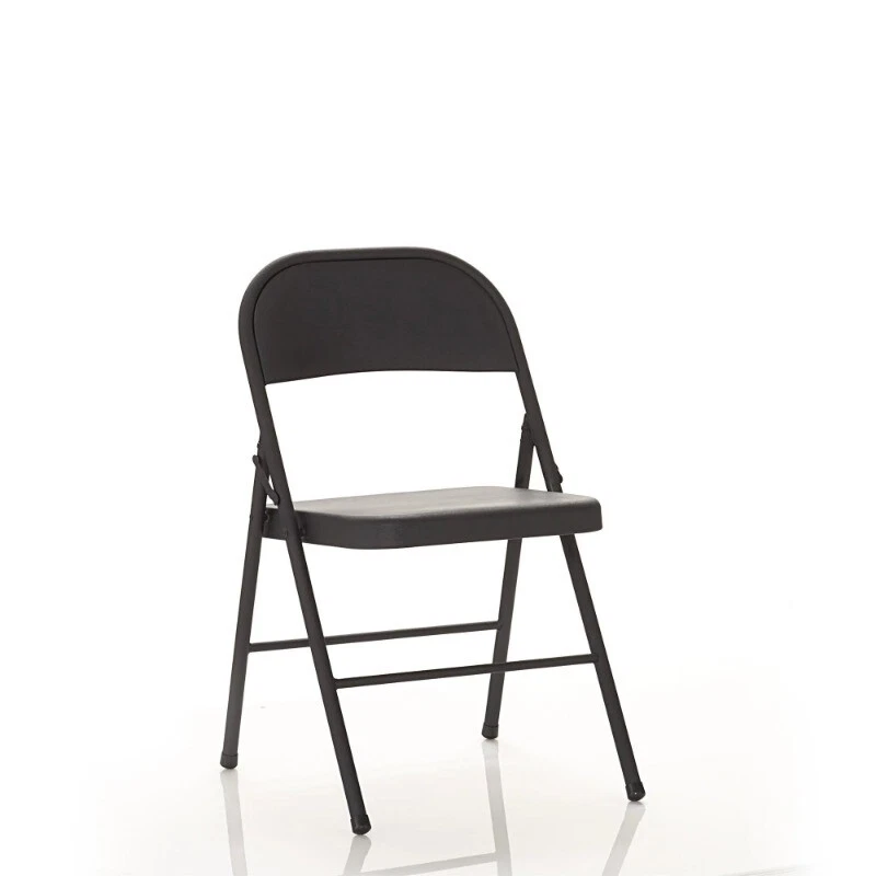 Make your next indoor gathering, event, or living space unforgettable with the COSCO All-Steel Folding Chair. Built to accommodate the idea of small space living or versatile event furniture that’s easily set up and taken down, this folding furniture product is versatile and multipurpose as you can use it for your own personal use, extra seating at events, weddings, and other indoor occasions. The sleek black color offers the option to add a subtle touch of simple sophistication to your environment and doesn’t clash with existing furniture arrangements or color palates! The all-steel frame a durable, heavy-duty long-term purchase you'll be able to use over and over again without fear! Not only will this product's durability bring you peace of mind, but the non-marring leg tips protect your floor's surface and promise to not slip during your family party. When the night is done and it's time to take down the chairs, the hinge fold option featured with the chair allows it to neatly fold flat and can be easily stored in closets or basements - out of sight, out of mind. Heavy Duty and Durable: All-Steel frame guarantees a long lasting purchase that can be used time and time again for all occasions. Non-Marring Leg Tips: Prevents slipping and protects all floor surfaces. Simple Elegance: Sleek black color doesn’t clash with existing palates and enhances your living space. Hinge Fold: Allows chair to fold flat when not in use. Easy Storage: Folds flat and provides non-invasive storage in closets or basements Easy Transportation: Light weight frame makes it effortless to move from one place to another when desired.