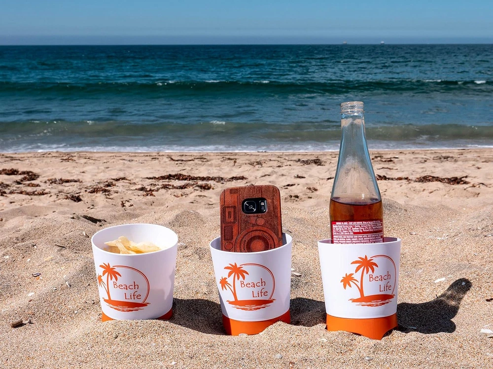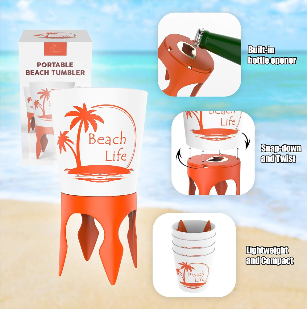 4-Pack Sand Beach Cup Holders with Bottle Opener and Spikes for Ultimate Beach Vacation Accessories