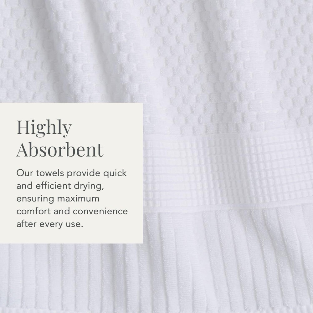 These towels are a game-changer! Super soft, ultra-absorbent, and quick-drying—perfect for daily use. The 600 GSM cotton feels luxurious against the skin, and I love that they're OEKO-TEX certified, so no harsh chemicals. They hold up well after multiple washes and stay fluffy. The bright white color looks crisp and clean in any bathroom. Great value for a 4-pack!