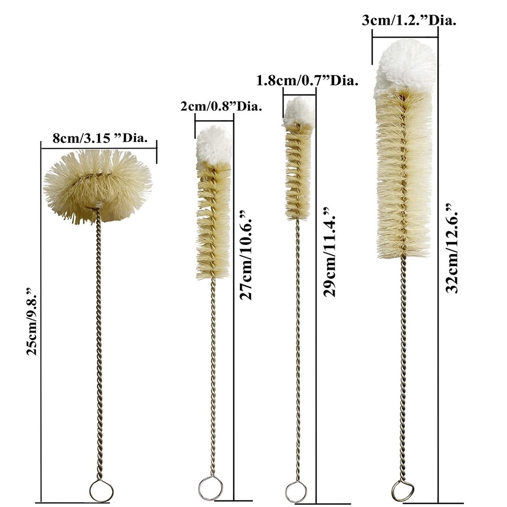 Product Description Welcome To My Store About this item This Soda Bottle Brush are made of Stainless Steel 304, with Bristle and Wool Tips; Soft brush head is perfect to clean the bottom of bottles and glassware with NO SCRATCHES. Thin Long Handle is made much stronger than normal by 1.9mm/0.075", 1.6mm/0.06" thick wire steel for Bendable Flexible use purposes for any small spaces or places hard to reach; Perfect cleaner in utility functions for Narrow Neck Water Beer Wine Baby Bottles, Straws, Pipes, Tubes, Flasks, Decanter, Bird feeders, Kombucha and etc; Designed not only to scrub clean but also to dry as well with end loop for convenient hanging at anywhere necessary; Dishwasher safe; Comes in one Pack of 4 pieces. Payment Policy Shipping Policy Returns Policy Contact us We ship to Payoneer confirmed address ONLY. Please make sure your address in PayPal is matched with your shipping address before you pay. Sellers are not responsible for service transit time. Transit times are provided by the carrier, exclude weekends and holidays, and may vary with package origin and destination, particularly during peak periods. Order will be handled within 3 working days ( Excluding Weekends and Public Holidays) after your payment clear.And Your items will be delivered without tracking number,it means the delivery time takes about 5-7 working days to reach you. please note this. Please notify us within 30 days after item received. Please obtain the RMA number & returned address for any return items. Return items MUST have all ORIGINAL packaging and accessories. We will replace items which are malfunctioning, for 20 days from the date you received. Items which have physical abuse are not covered by the warranty. Refunds are only offered for defective products reported within 7 days upon receipt. Buyers accept the responsibility to pay for return freight for any reasons. Shipping and handling charges are non-refundable at any case. Due to different national policies, if you are a buyer in Greece, Denmark, Sweden, you may be required to pay customs duties and VAT. Please see our Shipping Policy for details If have any problems, please contact us via eBay message. There is a time zone difference but we will respond you within 24 hours except on weekends and Chinese holidays, hope for your great understanding, thank you so much! All in all, wish you enjoy a pleasant shopping experience! Due to the 12 hours time difference between West and Asia we will reply you within 24 hour. Our working time: Monday-Friday 9:00am-22:30pm (GMT+ 08:00) 1:00am-14:30pm (GMT+ 00:00 London) Thanks for your patience and understandings.