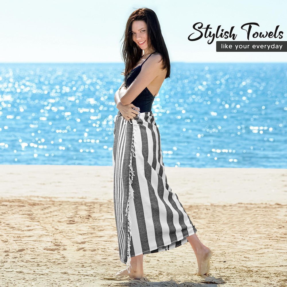 1. These Turkish beach towels are amazing—super soft, lightweight, and quick-drying! Perfect for travel, the beach, or even as a stylish throw. The 100% cotton feels luxurious, and the oversized design gives great coverage. Love that they come in a pack of four, making them a fantastic value. Highly recommend!