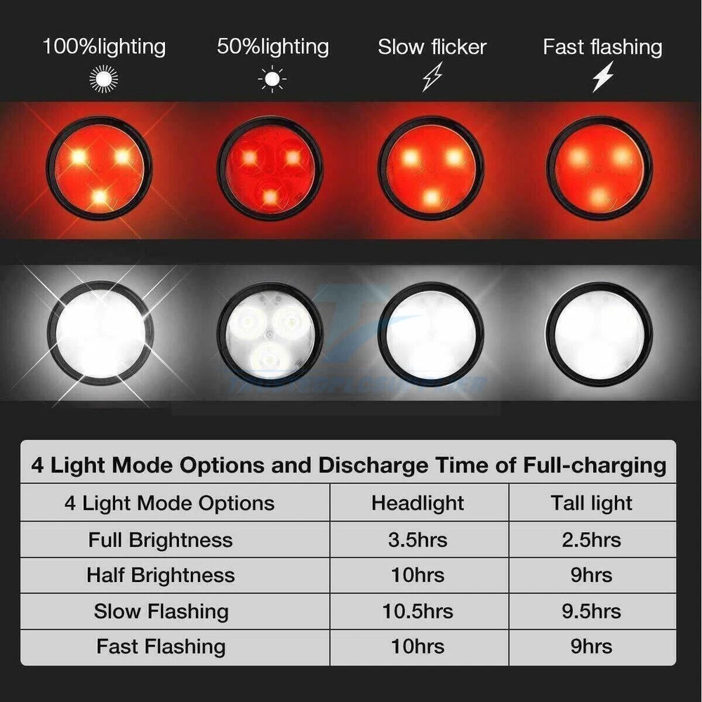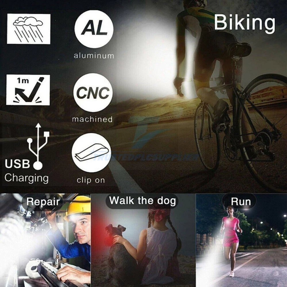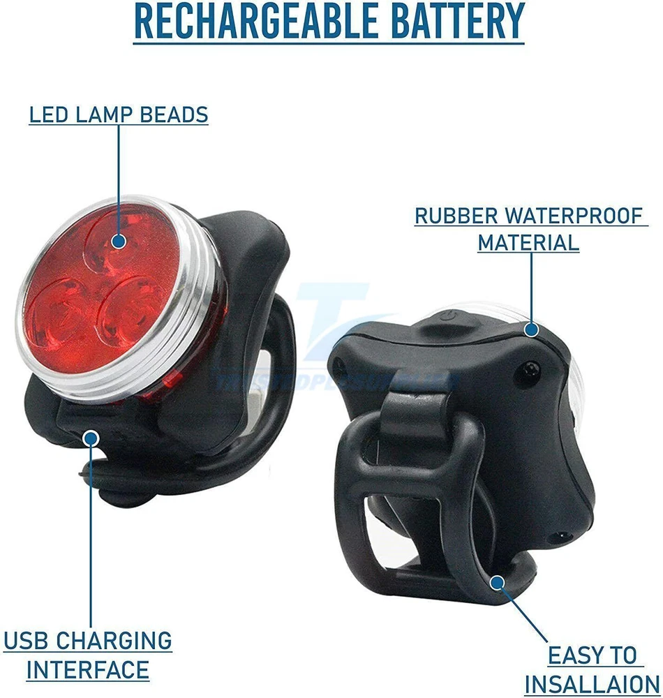 Product Description 4Set USB Rechargeable LED MTB Bicycle Light 900000LM Racing Bike Front Headlight Feature: * bicycle light 4 lighting modes *USB Rechargeable: Both headlight and back light can be charged by laptop, power bank or any device with USB port. *Safe to use: Ensure the lights bright even in heavy rain with water resistant , and reduce the glare and prevent accidents. Its durable Heavy duty body is anti shock to endure rough handling. *Easy to install:Come with the silicone strap with mount bracket and high -card deck buckle, no tools required. *Wide use:Not only a bike light for riding, but also a flashlight for emergency use, hiking, walking, jogging,hiking,camping, and other any activity when you need illumination. Specification: Size:Lamp diameter :43mm L*W:75*75mm USB:140mm volcano bicycle light :7*2*1.7cm Material: aluminum alloy + plastic PC Brightness: 40000 lumens Range: 300 meters Battery capacity: 2600 mAH Wick: bright wick Mode: High brightness/half brightness/quick flashing/slow flashing. Charging time: about 2 hours Lighting time: 3-5 hours Charging method: USB charging Led bulb life:100,000 hours Waterproof:IPX-4 Color:black ,red Weight:262g/9.24oz/0.58lb Rear Light Description: -Visable at daytime: Did you know that 75 percent of cycling accidents happen in daytime.This taillight keeps you visable not only at night but also in the daytime.Keeping you and your loved ones safe all the time. -Keep you safe: Wide angle visual design provides more visibility than any lights on the market.Whether you're running,walking with your dog,cycling,skateboarding or hiking,these safety lights will keep you safe and secure. -Waterproof: Highly airtight construction,stronger waterproof.These tail lights are water resistant for any weather,extremely durable. -USB rechargeable: This taillight can be charged by USB cable via computers,chargers or portable power bank.This will save you lots of money on batteries. -Multi-purpose: Hook onto your belt,running gear,reflective vest,backpack,dog collars,harnesses,or anywhere on your clothing. Mount to your bicycle,helmet,skateboard,scooter,stroller, wheelchair,or anywhere you can imagine. Description: Material: ABS+PC Color: red Size: 7*2cm 4 lighting modes Led beads: 2835 patch Waterproof rating: IPX5 Battery capacity: 220 mAh (polymer lithium battery) Endurance: 5H Lumens: 30 What's included: 1/2 x Head light (white light) 1/2 x Tail light (red light) 1/2 x USB cables 2/4 x Silicone mounting Strap About Us Payment Shipping Returns Contact Us 1. Unless specified otherwise, all our products are IN STOCK and are shipped from USA Local warehouse - Not Overseas! 2. We provide a 30 day Satisfaction Guarantee or your money back (provided items are in the same new and resaleable condition.) 3. We have a PayPal Verified Business Account, please buy with Confidence! 4. Every item will be tesrted before send.We know our products well and if we don't have the answers we will do our best to find them for you! 5. Our friendly team look forward to serving you! Your satisfaction is our No.1 Priority We will do our best to satisfacy you. 1.Paypal, Credit Card, G Pay etc, many payment way is accepted. 2.Please be sure your shipping address is correct before make a payment. 1.We will ship out the item within 1-3 business days after comfirming the payment, appreciate your patience. 2.If the items are broken on the way(we will check the orders clearly before we sent them),please contact us in 3 days you received it. We will send you a new one or refund your payment. 1.We stand behind every buyer.Items can be returned for exchange or refund within 30 days. 2.Please contact us when you have any confusion of our item, we will solve the trouble for you as soon as possible. 1.This is professional Seller.We will reply your message within 24 hours. 2.Please contact us whenever you have any question about the item. We will deal with it as soon as possible. 3. If you are unhappy with the item or our service,please Contact Us before leave feedback,just give me a chance,thank you! About Us 1. Unless specified otherwise, all our products are IN STOCK and are shipped from USA Local warehouse - Not Overseas! 2. We provide a 30 day Satisfaction Guarantee or your money back (provided items are in the same new and resaleable condition.) 3. We have a PayPal Verified Business Account, please buy with Confidence! 4. Every item will be tesrted before send.We know our products well and if we don't have the answers we will do our best to find them for you! 5. Our friendly team look forward to serving you! Your satisfaction is our No.1 Priority We will do our best to satisfacy you. Payment 1.Paypal, Credit Card, G Pay etc, many payment way is accepted. 2.Please be sure your shipping address is correct before make a payment. Shipping 1.We will ship out the item within 1-3 business days after comfirming the payment, appreciate your patience. 2.If the items are broken on the way(we will check the orders clearly before we sent them),please contact us in 3 days you received it. We will send you a new one or refund your payment. Returns 1.We stand behind every buyer.Items can be returned for exchange or refund within 30 days. 2.Please contact us when you have any confusion of our item, we will solve the trouble for you as soon as possible. Contact Us 1.This is professional Seller.We will reply your message within 24 hours. 2.Please contact us whenever you have any question about the item. We will deal with it as soon as possible. 3. If you are unhappy with the item or our service,please Contact Us before leave feedback,just give me a chance,thank you! You may also like 42 Tips 96W Universal Power Supply Charger for Laptop Notebook AC/DC Power 13.98 USD 15.99 USD 0.99 USD 13% off 9PC ABS Socket Organizer 1/2 3/8 1/4 inch Drive Socket Rail Holders Wall Mount 18.49 USD Free shipping Car Steering Wheel Tray Desk Two Sided For Laptop Drink Food Work Table Holder 8.09 USD 8.99 USD 0.99 USD 