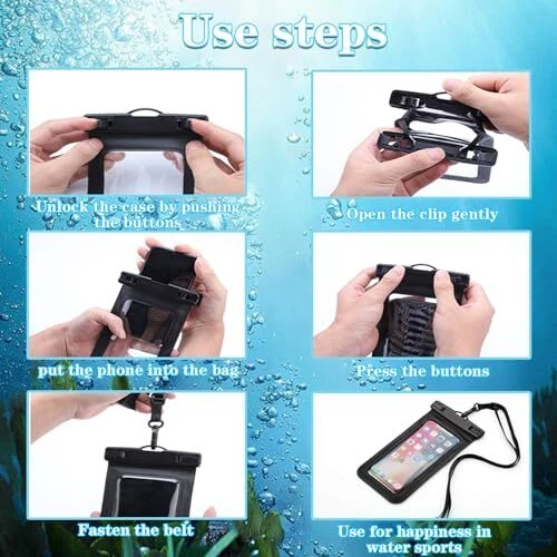 Return Policy Fast Delivery Trusted seller 4 Pack Multicolor Universal Waterproof Phone Pouch, Large Phone Waterproof Case Dry Bag (Protection Level: IP68) Outdoor Sports for Apple iPhone,Samsung,and up to 7.5" (Black,Blue,Pink,Orange) Product Description Materials: The Waterproof case is made of durable PC and transparent PVC materials. Super thin 0.3mm material makes touch sensitive, not any delay. IP68 Certified 30 meter underwater. It is easy to touch, Response, Type, Take Photos and Videos sensitive, Not any delay. No Bad Effect Upon Your Skin. Screen Touch Friendly: The waterproof case dry bag fits all smart phones up to 7.5" diagonal size.Clear PVC window allowing you to take photos conveniently even underwater. Capture the underwater world as you see it. Application: The waterproof pouch case is vacation Essentials for Aquatic Sports.it perfect for swimming,beach trip, underwater snorkeling, surfing, boating, skiing,fishing,kayaking,rafting. Capacity: It can hold not only cell phones but also ID, credit cards, cash, and keys.Length x Width: 8.6"x 4.3", Compatible for phone up to 7.5 inches; ideal phone water protector pouch for Apple iPhone,Samsung,and up to 7.5"; Sturdy lanyard on the top for easy carrying, Free your hand and have fun! Test Before Use : First Fill with paper towel in the waterproof phone bag, squeeze air before Sealed; Then Submerge underwater for about 15 minutes. Last Downside the top mount to take out the object, avoid water going into the case. High quality product from Brand "Famoby"! Shipping Returns Payment Shipping Shipping is FREE to all addresses other than APO/PO boxes in the lower 48 states. All our stock ships from US-based warehouses. Shipped via USPS or UPS (depending on location and package weight) Unless stated otherwise, all orders will ship within 24-72 hours of your payment being processed. Check our feedback to see the great reviews of FAST shipping we offer. Returns Seller does not accept returns Payment We currently accept payment via eBay managed payments only. Once payment is cleared, we will dispatch your shipment within 1-3 business days. Please refer to the "Shipping" tab for more information regarding shipping speed to your destination.