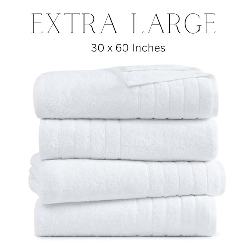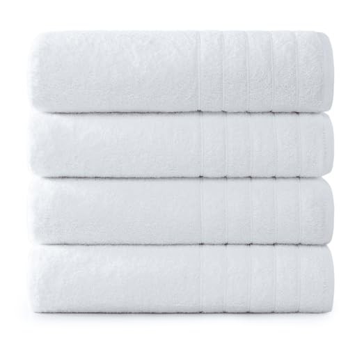 4-Pack White 100% Cotton Ring Bath Towels 30x60 Inches