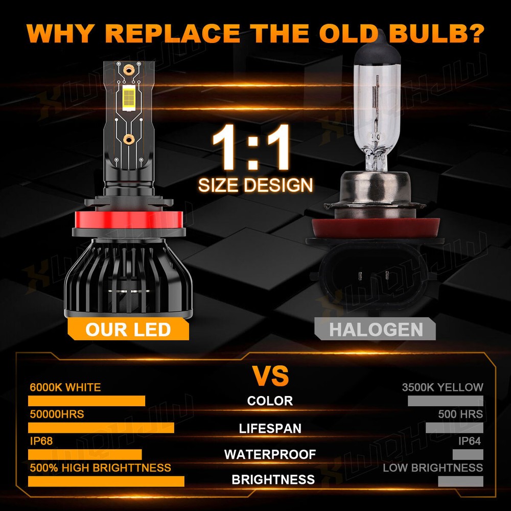 The XWQHJW NEW Super LED Bulbs stand at the zenith of automotive lighting. With an extraordinary 40,000 lumens output, they ensure unmatched brightness and road visibility. Using the advanced CSP LED chip technology, these bulbs symbolize the forefront of LED lighting performance. Two Aces——What Makes the XWQHJW Bulbs Invincible? 70W 40000LM Top Tier CSP LED Chips ● 70W High-power LED Chip ● 40,000LM Ultimate Light Output ● 46% High Light Efficiency (Ordinary LEDs only have 25%) ● Anti-light decay, after 50,000 hours of lighting test, brightness only reduced by 2%. Low Temperature Signify Stability and Safety ● The only triple copper tube heat dissipation design on the market ● After 30 minutes of daily commuting, the chip temperature is only 92°C/197.6°F. The same power LED from other brands has a temperature of 108°C/226.4°F. Halogen bulb temperatures exceed 700°C/1292°F. How Do I Know These LED Bulbs are Right for My Vehicle? Plese check the size on Ebay fitment guide system ( Ebay filter system may not be up to date. ) Plese check your vehicle user manual or original halogen bulb, the part number is marked above. Plese search "automotive bulb look-up" online, and enter your vehicle info to find out the correct size. Or in 'Customer questions & answers', write down your vehicle year, make, and model, we will help you check. XWQHJW Q&A RETURNS SHIPPING PAYMENT CONTACT US XWQHJW Q&A Q1: Will this bulb fit my vehicle? A1: We can match almost any vehicle to one of our bulb sizes. eBay only lets us include some vehicle fitments per listing, but if your vehicle does not show up on the compatibility table at the top of our listings, welcome you to contact us for free consulation before purchasing a product. Q2: My item has not arrived, what's taking so long? A2: Sometimes items take longer than expected, especially if it’s going far or to rural area. Check with your post office to see if your item has been held up. Sometimes Royal Mail will not update a tracking number until it has arrived at its destination. If your item still don't arrive after a few days, let us know so we can double check for you and help solve it asap. Q3: My bulbs won't fit, help! A3: Special bulb holder may be required. See if you can take the holder from the stock bulb. If not, let us know. The bulb size may be wrong, double check the item you received with the item you ordered. Do you have an aftermarket lighting housing? These may not be perfectly fitted for aftermarket bulbs and will require some manual modifications. Q4: Neither side lighting up? Both sides flicker, hyper flash, or work inconsistantly. A4:Check the light fuses, and then check the ballast plugs to insure correct installation. If this doesn't work, there may be a voltage problem with the vehicle. You probably just need a relay or capacitor. Even though some bulbs are builtin resistors, they may still need a decoder. Q5:Why after installing the bulb, there have the flicker/error message/radio interference? A5: Some car's system is sensitive to the led bulb, we can send the decoder/resistor to help you solve the problem. RETURNS (1) We offer 60 days return policy. Please contact us within 60 days t from the date you receive your order if you have any issues with the product or want return .Refund will be send after we got your resend package. (2) All returned items should be in the original packaging , return tracking information should be provided. (3) Buyer is responsible for return shipping cost due to the problem not caused by item quality itself. (4) Items to be returned must be in resalable condition, for example: Item do not fit your vehicle perfect The item arrived be broken Parcel Lost If you have problems with the above issue, please Contact Us immediately. SHIPPING Domestic(U.S.) Shipping All items will be shipped out within 1 or 2 business days with cleared payment. Please included your phone number to the payment note for prompt and secure shipment. Tracking numbers for all orders are added to eBay once they have been dispatched; please login to eBay to find the tracking information for your order. Most items are shipped USPS first class mail, delivery usually takes just 4-6 business days. Additionally, we do not ship on weekends. International Shipping Puerto Rico: As we use standard USPS, PR is considered a US territory for mailing purposes, and can be selected as such at checkout. Shipping will be domestic U.S. rates. For Canada & Mexico or other countries We use the eBay's Global Shipping Program. Once you’ve paid for your item, we'll send it to the global shipping center within 1 or 2 business days. From there, it's sent to you. Lost Shipments For non-signature required shipments: If the tracking information that corresponds to a shipment confirms that the product was delivered to the intended address, the customer assumes all responsibilities and liabilities for the receipt of the shipment.The Customer is the one who provided XWQHJW with the ship to information, and in doing so absolves XWQHJW of any liabilities for missing or stolen deliveries. Customs Fees for International Shipping Shipments are marked with the value of your purchase price. International customers are responsible for any tariffs or customs fees that may be associated with their shipment. Please check your country's laws and regulations before your purchase. PAYMENT Variety of payment methods are accepted, such as credit, debit, gift cards, Apply pay, Google Pay, Paypal and Paypal Credit. We only ship to the confirmed shipping address given with the payment. If you want to ship to other address, please change your shipping address before you make payment. To avoid initiating an unpaid item claim, please pay within 7 days. CONTACT US If you have ANY questions with shipping, product or service, please Contact Us first before leaving feedback/write a review or filing a return case. We will solve the problem! We always put our customers firs