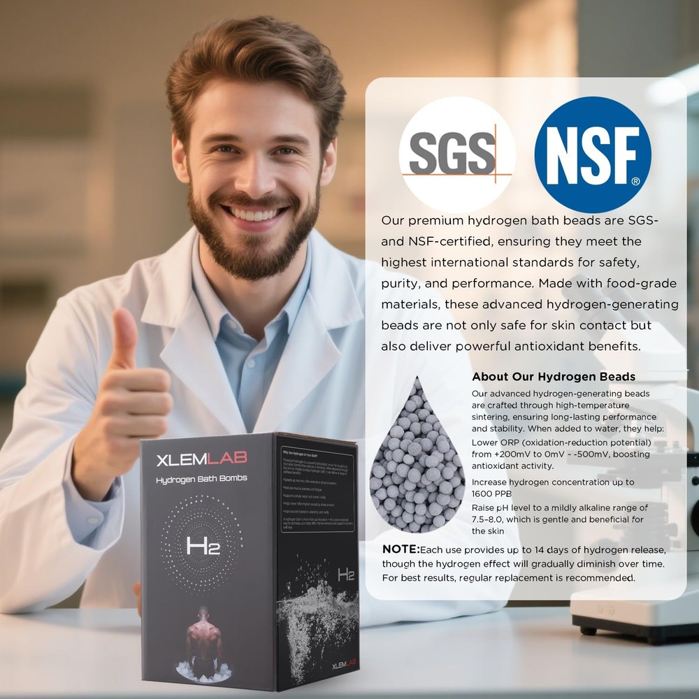 Bring a little extra relaxation to your bath with our hydrogen bath bombs. Use 2 bombs in warm water before bathing, and let the soft microbubbles create a soothing experience. Designed for repeated use, lasting up to 14 days with proper storage. Designed for gym-goers and athletes, hydrogen bath bombs provide a soothing molecular hydrogen bath to help you unwind after workouts or long, busy days. Enjoy a relaxing muscle soak that eases body tension and turns your bath into a refreshing daily ritual. Simple Use, Anytime – Drop 2 hydrogen bath bombs into warm water 30–60 minutes before bathing. Swirl gently to activate. For a stronger hydrogen presence, you can use 4 bombs per bath. Lasts Up to 14 Days – Each hydrogen bath bomb is reusable for up to 14 days. While testing shows hydrogen may be released for up to 45 days, we recommend it within 14 days for the most consistent experience. Easy Storage for Ongoing Use – Keep the bath bombs in a bowl of water between uses to maintain the hydrogen reaction. The stored water can also be used for general rinsing or household purposes. Inspired by Wellness Trends – Hydrogen baths are gaining popularity for their clean, relaxing soak experience. Bring this trend home and enjoy a quiet, refreshing moment — no fragrances, no colorants, just simplicity. Slow Release, Steady Hydrogen – Our hydrogen beads react gradually in water, releasing hydrogen over time with only light bubbling. A calm surface simply means the hydrogen is working silently beneath. Normal Residue from – You may notice some dark gray upon opening. This is not dirt — it's hydrogen material that may shift during transit. Simply rinse the product with water before use.