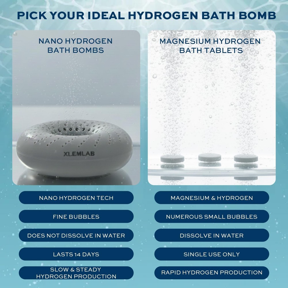 Bring a little extra relaxation to your bath with our hydrogen bath bombs. Use 2 bombs in warm water before bathing, and let the soft microbubbles create a soothing experience. Designed for repeated use, lasting up to 14 days with proper storage. Designed for gym-goers and athletes, hydrogen bath bombs provide a soothing molecular hydrogen bath to help you unwind after workouts or long, busy days. Enjoy a relaxing muscle soak that eases body tension and turns your bath into a refreshing daily ritual. Simple Use, Anytime – Drop 2 hydrogen bath bombs into warm water 30–60 minutes before bathing. Swirl gently to activate. For a stronger hydrogen presence, you can use 4 bombs per bath. Lasts Up to 14 Days – Each hydrogen bath bomb is reusable for up to 14 days. While testing shows hydrogen may be released for up to 45 days, we recommend using it within 14 days for the most consistent experience. Easy Storage for Ongoing Use – Keep the bath bombs in a bowl of water between uses to maintain the hydrogen reaction. The stored water can also be used for general rinsing or household purposes. Inspired by Wellness Trends – Hydrogen baths are gaining popularity for their clean, relaxing soak experience. Bring this trend home and enjoy a quiet, refreshing moment — no fragrances, no colorants, just simplicity. Slow Release, Steady Hydrogen – Our hydrogen beads react gradually in water, releasing hydrogen over time with only light bubbling. A calm surface simply means the hydrogen is working silently beneath. Normal Residue from Shipping – You may notice some dark gray powder upon opening. This is not dirt — it's hydrogen material that may shift during transit. Simply rinse the product with water before use.