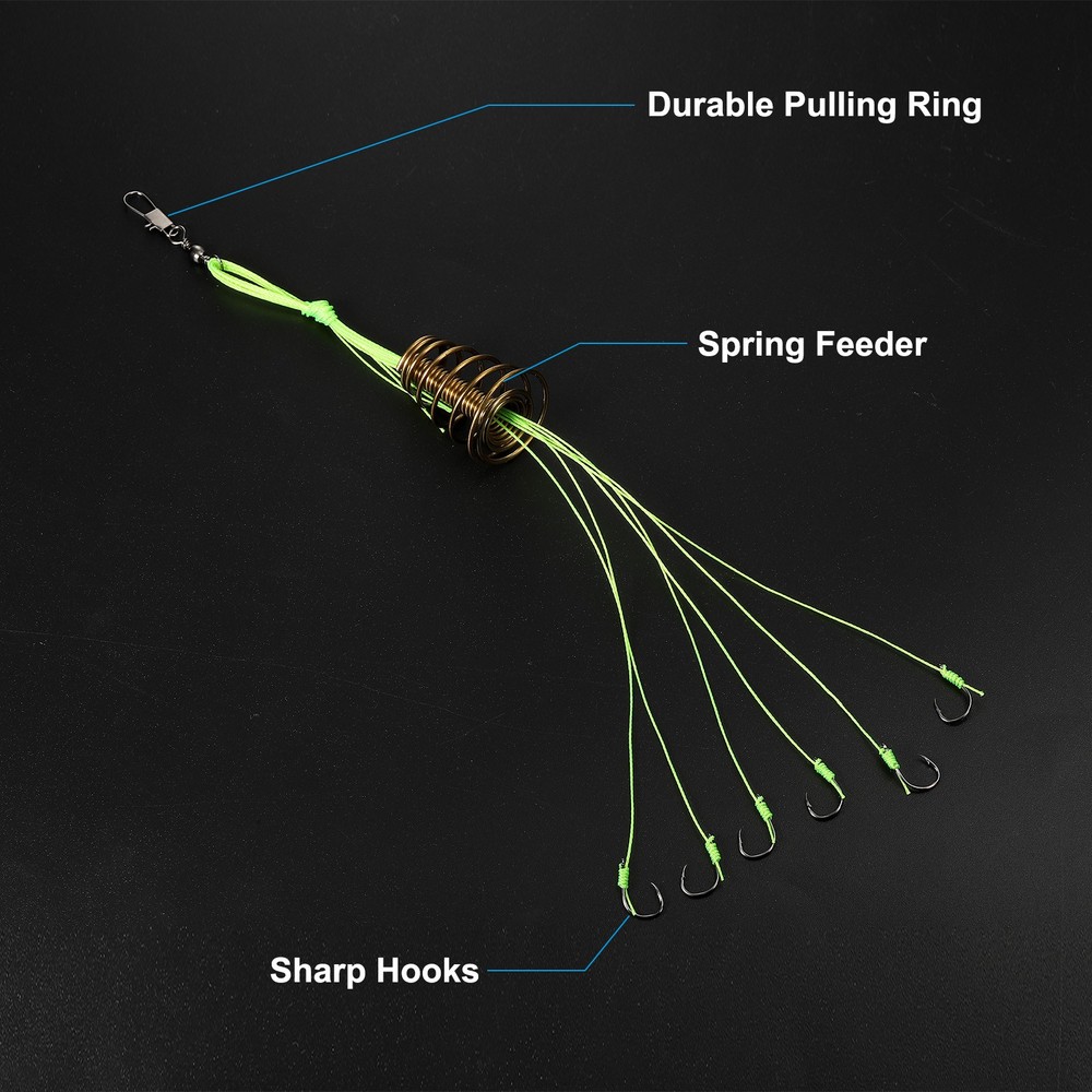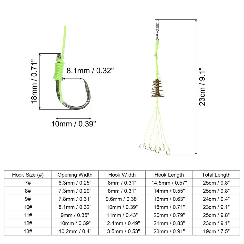 Document Bait hooks with drum spring feeders are devices specifically designed to attract fish and increase your chances of a successful catch. It combines 6 bait hooks, and drum spring feeders to enhance the presentation and visibility of the bait and improve fishing success.SpecificationColor: Fluorescent GreenMaterial: PE Wire, MetalHook Opening Width: 10mm / 0.39inchFishhook Size: 18 x 8.1 mm / 0.71 x 0.32 inch (L*W)Total Length: 23cm / 9.1inchPacking List: 4Pcs x Fishing Baits Hook with Spring FeederAdvantageBAIT RELEASE: The spring feeder can hold a large amount of bait. When fish eat the bait, the feeder will gradually release the bait, forming an attractive feeding trail, and attracting more fish to the area. The 6-hook design increases the chance of fish being hooked.ENHANCED VISIBILITY: Fluorescent green PE wire on the hook increase visibility in low-light conditions or turbid waters, making it easier for fish to find and hit the bait.Instruction1. Attach the bait hook to the fishing line.2. Fill the drum spring feeder with the desired bait, making sure it is packed securely.3. Throw the fishing line into a location where fish may be present.4. Let the feeder sink to the desired depth and attract fish closer to the bait through the luminous beads.NOTE:Be careful to avoid fishhook barbs when using.Clean and store the fishing lure hook after use to maintain its performance and longevity. 4Pcs 10# Carp Fishing Baits Hook Fishing Lure Hooks Jig Hooks Fluorescent Green Bait hooks with drum spring feeders are devices specifically designed to attract fish and increase your chances of a successful catch. It combines 6 bait hooks, and drum spring feeders to enhance the presentation and visibility of the bait and improve fishing success. Specification Color: Fluorescent Green Material: PE Wire, Metal Hook Opening Width: 10mm / 0.39inch Fishhook Size: 18 x 8.1 mm / 0.71 x 0.32 inch (L*W) Total Length: 23cm / 9.1inch Packing List: 4Pcs x Fishing Baits Hook with Spring Feeder Advantage BAIT RELEASE: The spring feeder can hold a large amount of bait. When fish eat the bait, the feeder will gradually release the bait, forming an attractive feeding trail, and attracting more fish to the area. The 6-hook design increases the chance of fish being hooked. ENHANCED VISIBILITY: Fluorescent green PE wire on the hook increase visibility in low-light conditions or turbid waters, making it easier for fish to find and hit the bait. Instruction 1. Attach the bait hook to the fishing line. 2. Fill the drum spring feeder with the desired bait, making sure it is packed securely. 3. Throw the fishing line into a location where fish may be present. 4. Let the feeder sink to the desired depth and attract fish closer to the bait through the luminous beads. NOTE: Be careful to avoid fishhook barbs when using. Clean and store the fishing lure hook after use to maintain its performance and longevity. Hot Item Payment 1.We accept eBay payment . 2.Payment must be received within 7 business days of auction closing. Shipping 1.We ship to your eBay or Paypal address. Please make sure your eBay and Paypal address is correct before you pay. 2.Items will be shipped within 1-3 business day when we received payment. 3.Delivery time depends on destination and other factors. Description Policy 4Pcs 10# Carp Fishing Baits Hook Fishing Lure Hooks Jig Hooks Fluorescent Green Bait hooks with drum spring feeders are devices specifically designed to attract fish and increase your chances of a successful catch. It combines 6 bait hooks, and drum spring feeders to enhance the presentation and visibility of the bait and improve fishing success. Specification Color: Fluorescent Green Material: PE Wire, Metal Hook Opening Width: 10mm / 0.39inch Fishhook Size: 18 x 8.1 mm / 0.71 x 0.32 inch (L*W) Total Length: 23cm / 9.1inch Packing List: 4Pcs x Fishing Baits Hook with Spring Feeder Advantage BAIT RELEASE: The spring feeder can hold a large amount of bait. When fish eat the bait, the feeder will gradually release the bait, forming an attractive feeding trail, and attracting more fish to the area. The 6-hook design increases the chance of fish being hooked. ENHANCED VISIBILITY: Fluorescent green PE wire on the hook increase visibility in low-light conditions or turbid waters, making it easier for fish to find and hit the bait. Instruction 1. Attach the bait hook to the fishing line. 2. Fill the drum spring feeder with the desired bait, making sure it is packed securely. 3. Throw the fishing line into a location where fish may be present. 4. Let the feeder sink to the desired depth and attract fish closer to the bait through the luminous beads. NOTE: Be careful to avoid fishhook barbs when using. Clean and store the fishing lure hook after use to maintain its performance and longevity. Hot Item Payment 1.We accept eBay payment . 2.Payment must be received within 7 business days of auction closing. Shipping 1.We ship to your eBay or Paypal address. Please make sure your eBay and Paypal address is correct before you pay. 2.Items will be shipped within 1-3 business day when we received payment. 3.Delivery time depends on destination and other factors.