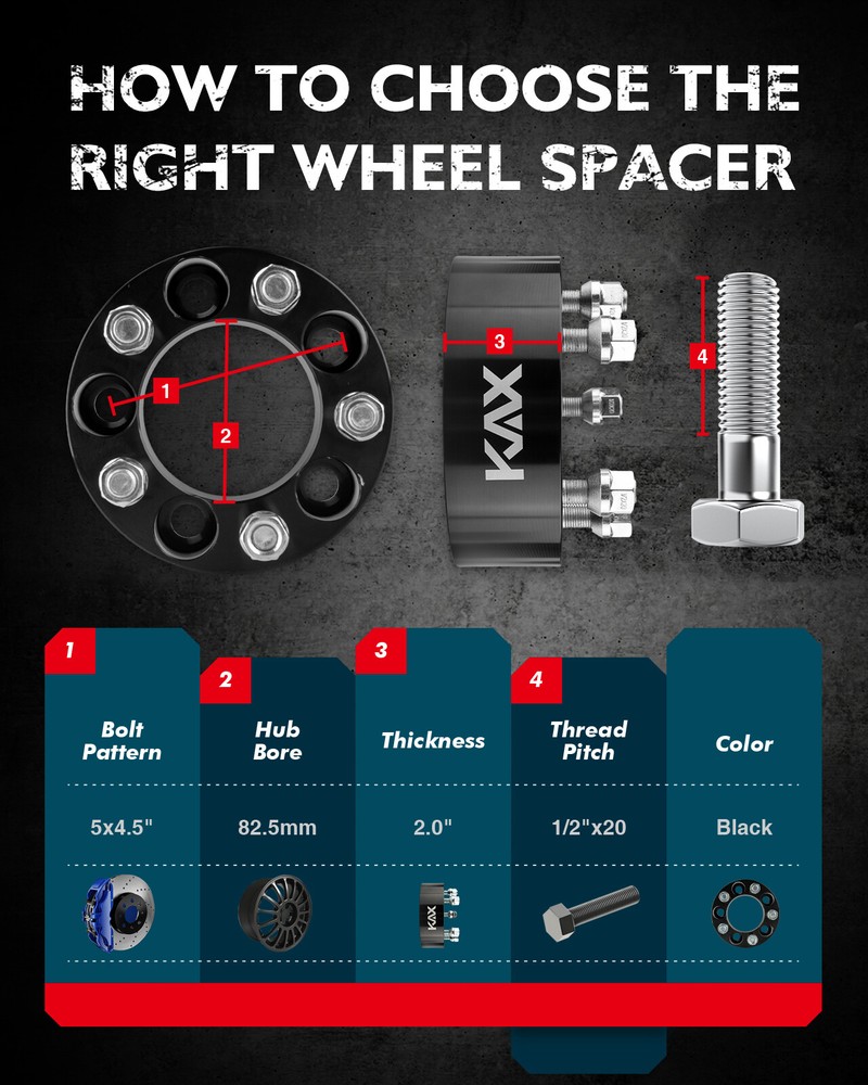 Specifications: Please Make Sure You Take The Proper Measurements Before Purchasing: Vehicle Bolt Pattern: 5x114.3mm or 5x4.5" Wheel Bolt Pattern: 5x114.3mm or 5x4.5" Hub Centre Bore: 82.5mm Thickness: 2inch Thread Pitch: 1/2"x20 Color: Black Fitment: Ford: 1992-2011 Ford Crown Victoria 2007-2013 Ford Edge 1991-2010 Ford Explorer 1966-1967 Ford Fairlane 1966-1970 Ford Falcon 1966-1967 Ford Galaxie 1967-1974 Ford Galaxie 500 1967-1968&1994-2014 Ford Mustang (Unfit 15-17 Mustang) 1983-2011 Ford Ranger 2010-2014 Ford Taurus Jeep: 1984-2001 Jeep Cherokee 1986-1992 Jeep Comanche 1993-1998 Jeep Grand Cherokee 2006-2012 Jeep Liberty 1987-1995&1997-2006 Jeep Wrangler (Unfit jk models) Lincoln: 2003-2005 Lincoln Aviator 2007-2013 Lincoln MKX 1991-2011 Lincoln Town Car Mercury: 1967-1973 Mercury Cougar 1992-2011 Mercury Grand Marquis 2003-2004 Mercury Marauder 1999-2010 Mercury Mountaineer This Item Includes: 4Pcs Wheel Spacers High-Quality Raw Materials CNC Precision Manufactured,6061 T6 Forged Aluminum Alloy Disc Body,ensure driving safety and improve your driving experience Easy Installation Clean the studs thoroughly and remove any excessive dirt, oil, grease etc Highly recommended professional installation Widen Tire Spacing After the tire spacing is widened, you can enjoy more room for modification on your cars performance and looking,such as installing a larger wheel wheel Bolt Pattern Guide The following is the easy and simple way to check the bolt pattern/PCD, center/hub bore and thread pitch. If you donot sure, please just message us with the year, make and model of vehicle. Check Compatibility How to Confirm Whether the Product Fits for Your Vehicle? Payment 1) We accepts all major credit cards via PayPal: MasterCard, Visa, American Express and Discover. 2) We will only ship to the confirmed PayPal shipping address given with the payment. 3) If you want to ship to other address, please change your PayPal shipping address before you make payment. 4) To avoid initiating an unpaid item claim, please pay within 7 days. Shipping Policy 1) We will ship item locally for US buyers. Usually for US buyers it will take about 5-7 business days to reach. If you don't get it, please contact us firstly, we'll try our best to support you. 2) For US customers, all items will be shipped out within 1-2 business days with cleared payment. Please included your phone number to the payment note for prompt and secure shipment. 3) Tracking numbers for all orders are added to eBay once they have been dispatched; please login to eBay to find the tracking information for your order. Contact Us If you have ANY questions with shipping, product or service, please Contact Us first before leaving feedback/write a review or filing a return case. We will solve the problem! We always put our customers first and your satisfaction is guaranteed. Our Tech's are here to serve you. Email us and our expert team will swiftly diagnose the issue and offer the best solution within 12-24 business hours. All off-hours emails will be answered within 24-48 hours. About returns If you send email to us,In our working hours will be resumed within 48 hours. Please feel free to contact us if you have any questions: Dear my friend,we appreciate your support.And our goal is service you well and give you a pleasant shopping time in our store. ✅Dear customer, when you want to return or exchange goods (Please contact us first, instead of directly initiating a dispute) 1: Contact the seller first 2: Send pictures: outer packaging&scanned labels&item itself&with complete accessories, etc necessary condition Rule A: The original packaging of the item is in an unused state. Rule B: The outer packaging must not have any damage. 3: Obtain return label 4: Delivered Projects - Payment Repayment ✅A 15% restocking and shelving fee will be charged for returns or exchanges that are not caused by the seller and are in good condition. Exchange will not charge restocking fees or shipping fees due to transportation errors ✅Priority In case of the following reasons, the freight will be borne by the buyer 1: Unexpected order 2: Find a better price 3: Change your mind 4: Buy more items/make mistakes/misread model information ✅Please note Missing accessories/quality issues/transportation damage, etc Please contact us first to obtain a good solution, rather than directly opening a return dispute. Thank you very much for your understanding. I hope we have a pleasant cooperation! FeedBack It's highly appreciated you leave us positive feedback and 5 star rating comments if you are satisfied with our service! Your comment is very important in our business success. Please feel free to contact us first before leave indifferent feedback or 1-3 star good feedback and open Case. we will try our best to solve your problem.Because we believe Anything can be resolved through communication.Thank you!
