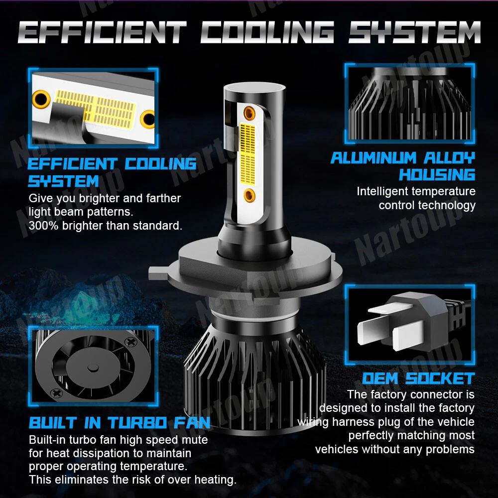 Nartoup 4"x6" Crystal Clear Glass Lens / Metal Backside H4 THESE ARE SEMI-SEALED BEAM DIAMOND CRYSTAL CLEAR GLASS FACED H4 HEADLIGHTS! Includes 100W Super White H4 LED Light Bulbs! Note: Without mounting bracket, some models may need mounting bracket! 4X6 INCH SQUARE HEADLIGHT - PAIR DIAMOND CRYSTAL CLEAR GLASS LENS / METAL BACKSIDE FITS STOCK BUCKETS,( Some models may require minor modifications ) LOW BEAM AND HIGH BEAM BRIGHTER AND WHITER THAN STOCK LIGHTS BULBS ARE REMOVABLE AND REPLACEABLE Includes 100W Super White PAIR H4 LED Light Bulbs! PLUGS INTO FACTORY WIRING PLUGS DOT / SAE APPROVED THIS LISTING IS FOR A NEW PAIR (four HEADLIGHTS) - 4x6" CRYSTAL CLEAR GLASS LENS / METAL BACKSIDE H4 CONVERSION HEADLIGHTS WITH 100W LED LIGHT BULBS. THIS SET INCLUDES 4 LOW / HIGH BEAM HEADLIGHTS. THESE HAVE THE ORIGINAL SHAPED PRONGS ON THE BACK SO THEY WILL PLUG RIGHT INTO YOUR ORIGINAL WIRING HARNESS PLUGS. THESE LIGHT UP 300% BRIGHTER THEN THE STOCK STYLE INCANDESCENT BULBS. IN RARE CIRCUMSTANCES, WIRING MODIFICATION MAY BE REQUIRED. THESE ARE FOR ANY CAR OR TRUCK THAT HAS SQUARE 4x6" HEADLIGHTS. DOT / SAE APPROVED. THESE ARE GLASS AND WE WILL TAKE EXTRA CARE IN PACKAGING. Product Specification: Bulb Size:H4 9003 HB2 Number of Bulbs:4 Material:Metal Type:Headlight Kit To Fit:Headlight Bulb Color:White Bulb Type:LED LED Type :CSP CHIP Color Temperature: 6000k-6500k Light Color:White Wattage:100W/bulb Lumens:10000LM/bulb Lifetime:50,000hrs Waterproof Rating:IP68 Waterproof Operation Voltage:DC 9-32V ( Fit 12V,24V Vehicle ) Beam Angle:360 Degrees Beam Operating Temperature: -40 - +80℃ Placement on Vehicle: Front, Left, Right Products include: 4pcs 4X6" lamp shade 4pcs H4/9003 CSP chip LED 4pcs H4 9003 to H13 9008 Connectors Cable Adapters Harness After service Notification: If you are satisfied with our product and service please leave us a positive feedback,if there is any problem when you received the package,please feel free to contact us,we will be definitely give you a satisfying solution,when you choose the return reason .please choose the reason"i don't like it". by this option we will accept your return immediately and provide return label for full refund. the others reason to return will take both of us many troubles to handle. If you have any questions, please feel free to contact us, we are happy to answer them for you. Hope you will have a good shopping experience~