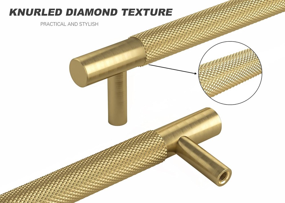 ✓ Solid Construction :These pulls are made of heavy solid brass material with a great substantial feel and weight to it,definitely won’t break off easily,sturdy and durable for daily use on heavy drawers.These cabinet pulls are beautifully machined in brushed gold.These kitchen cabinet pulls provide a great upgrade for your furniture both in terms of heavy brass material/color and design,adds a warm , personal touch to your home. ✓ Perfect Brass Color:These are beautiful and the perfect amount of brass to compliment a few brass accessories in the room, the brushed finish soften the gold,these are not loud gold ,adds a real elegance to the kitchen cabinets without standing out too much.The handles looks great either horizontal or vertical, these are very flexible to install. ✓ Specification:Center to Center: 5 inch(128mm);Overall Length:6-5/8inch(168mm) ;Height:1-3/8 inch(34mm).There are plenty of space under the pull to put your fingers and get a comfortable fit for your hands when used.These are heavy duty brass pulls with great sturdy quality,work well for heavier cabinet drawer.These brass pulls are individually wrapped to protect these drawer pulls from nicks and scratches,ensure arriving in a good condition. ✓ Beautiful Knurled Design: The diamond pattern finish on the center of the brass pulls,it features a knurled diamond texture and a modern brush finish,adds visual impact to any piece of furniture.These brass pulls Looks much more custom than the generic handles.The drawer pulls are practical and stylish,perfectly decorate your drawer with a sleek modern look.These knurled pulls will elevate the look of your furniture to the next level once installed. ✓ Quick Install:These brass pulls come with good quality metric screws for easy installation. There are 2 sets of M4 Metric size mounting screws come with the handles ,8Pcs M4 x 25mm(1 inch)long screws and 8Pcs M4 x 40mm(1-9/16 inch) long screws to facilitate a variety of installation scenarios You can install them within minutes.It's a good cabinet pull for the old one.