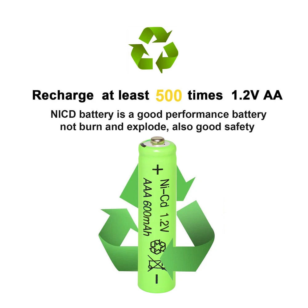 4Pcs AA & 4Pcs AAA Ni-MH Rechargeable Batteries 1.2v with 4 Slot Charger & Battery Plastic Storage Case Warm Tips: Before use, please remove the plastic packaging film of the battery. AA / AAA NiMH Battery 1.2v Features: 1.【Widely used】 The AA batteries rechargeable 1.2v is perfect for solar garden lights, landscape lights, lawn lights, etc.It can replace all disposable alkaline batteries for low power electronic products. 2.【Easy to Charge】 The AA rechargeable batteries Ni-MH can be charged by solar lights or standard charging devices. Better high-temperature performance than other types of batteries, can be used from -4℉ to 140℉, and can be charged from the sun even in the snow. 3.【Safe and Reliable】 The Ni-MH AA 1.2v rechargeable battery is very safe and reliable. For transportation safety, these Ni-MH AA batteries are only pre-charged to 30%, so please charge them before use for longer working time. 4.【Durable】 Our Ni-MH AA batteries rechargeable have a capacity of 700mAh and can be recharged at least 500 times continuously. Save you the cost of buying disposable alkaline batteries and reduce the harm to the environment. 5.【Suggestion】 Please charge the battery after each power exhaustion, otherwise it will affect the capacity and life. In addition, charge every 3 months to extend the life of the battery. NiMH AA Battery 1.2v Specification: Capacity: 700mAh Voltage: 1.2V Size: diameter 14mm*50 mm Terminal Type: Button Top Chemistry: Ni-MH (Nickel Metal Hydride) Rechargeable Times: Up to 1000 times No Memory Effect Note: Do not disassemble or modify the rechargeable battery NiMH AAA Battery 1.2v Specification: Capacity: 700mAh Voltage: 1.2V Size: diameter 10mm*44 mm Terminal Type: Button Top Chemistry: Ni-MH (Nickel Metal Hydride) Rechargeable Times: Up to 1000 times No Memory Effect Note: Do not disassemble or modify the rechargeable battery Package Included: 4X Ni-MH AA 1.2v Rechargeable Battery 700mAh 4X Ni-MH AAA 1.2v Rechargeable Battery 700mAh 2X Plastic Battery Storage Cases 1X AA AAA USB Universal Battery Charger 4-Slot Warm Tips: 1. Before use, please remove the plastic packaging film of the battery. 2. Please check the "+" and "—" directions of the battery before you charge the battery. 3. Do not put the product into fire, short circuit, dissassemble and extrude. 4. Do not mix charging with different type of batteries, which may explode or leak, causing personal injury. 5. Please use up the power each time, then recharge it otherwise it will affect its capacity and lifetime. 6. Please take out the battery if you won't use for a long time to avoid battery leakage. 7. Note:Please find us in first time when you find the parcel Broken/Scratch/Function Error/Miss Parts/Unwork/has not arrived etc, we always have more details and solutions, even duty for your order. On Jan 4, 2025 at 13:06:11 PST, seller added the following information: