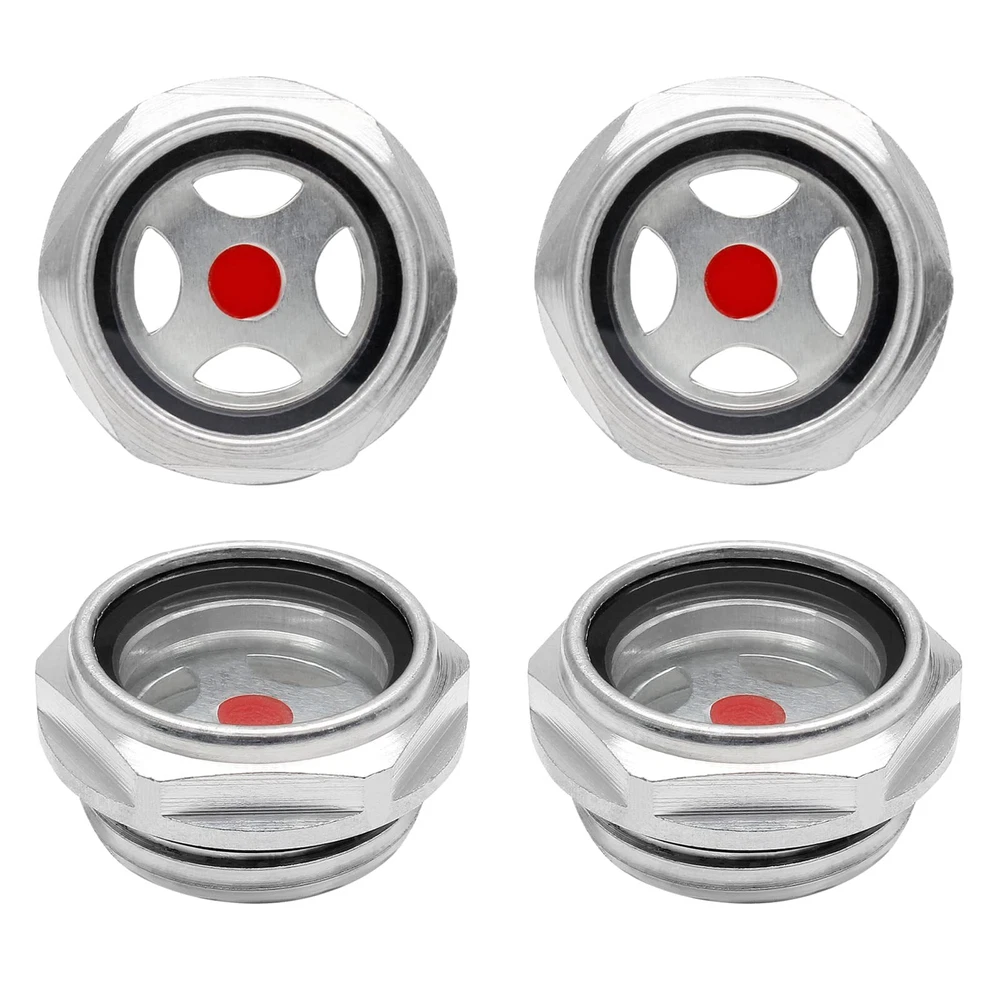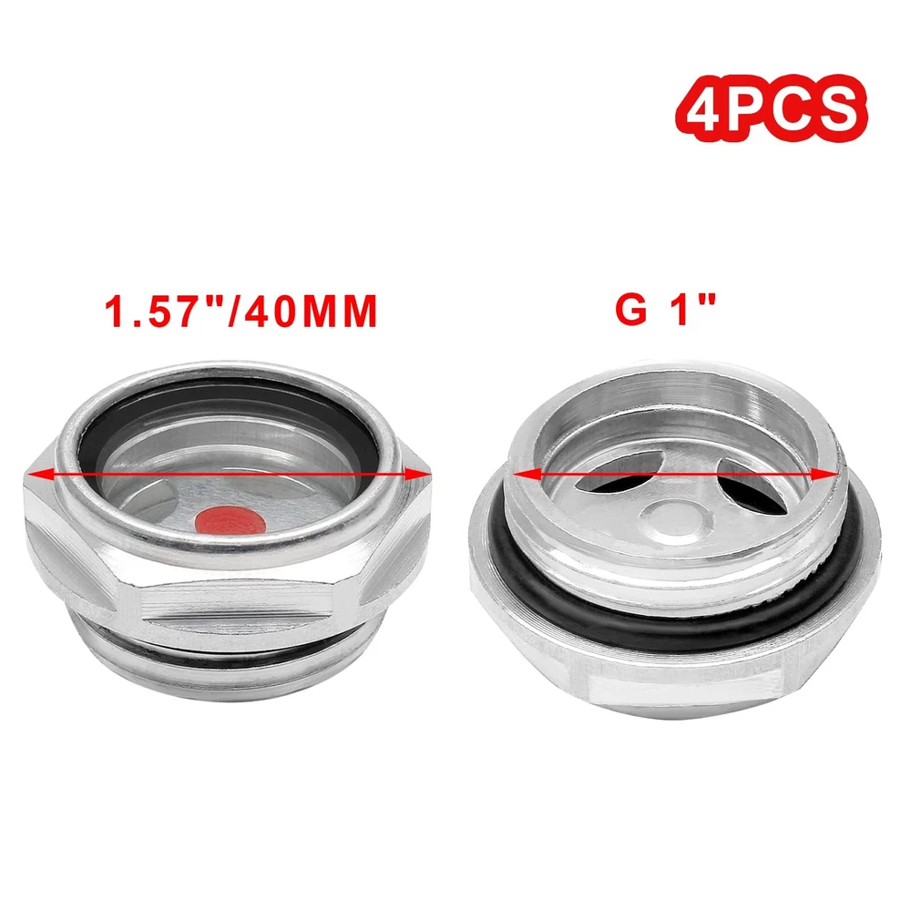 Why Choose focus on retail and wholesale hardware items and other accessories. The design and optimization of all products are based on customer opinions and suggestions. We are keen to communicate with customers to create better products to give back to customers. So we are very happy that you actively communicate with us and give suggestions after purchasing our products. Specification: Color: Silver Thread Type: G1"(Approx OD 32.5mm) Weight: 54g Material: Aluminum alloy & tempered glass Package Include: 4 Pcs air compressor oil sight glass Warmly Note Get your air compressor shut down and pressure relief when change oil level sight glass. Guarantee Service We are committed to providing you with the most cost effective and quality and reliable products, as we believe this is a priority and contribute to a satisfactory purchase. If there is any question, please feel free to contact at any time. And we will solve your problem as soon as possible. 【Package Include】 4 Pcs Air compressor Oil Sight Glass, thread type: G1"(Approx OD 32.5mm), suitable for air compressor gearbox pump tank. 【Sturdy Material】 The main body is made of aluminum alloy, which is chemically stable and will not rust for using. 【Oil Level Monitoring】the oil level meter sight mirror is made of tempered glass, with the inside red dot, helps to observe water, oil and gas (WOG) at the mouth. 【High Temperature & Pressure】 The air compressor sight glass can operate at a maximum pressure of 217 PSI (15 bar) and a maximum temperature of 110℃ (230℉). 【Promise】 Any more questions about the item or you are not satisfied with your purchase at any point and for any reason, please don't hesitate to contact us. We will respond quickly within 24 hours!