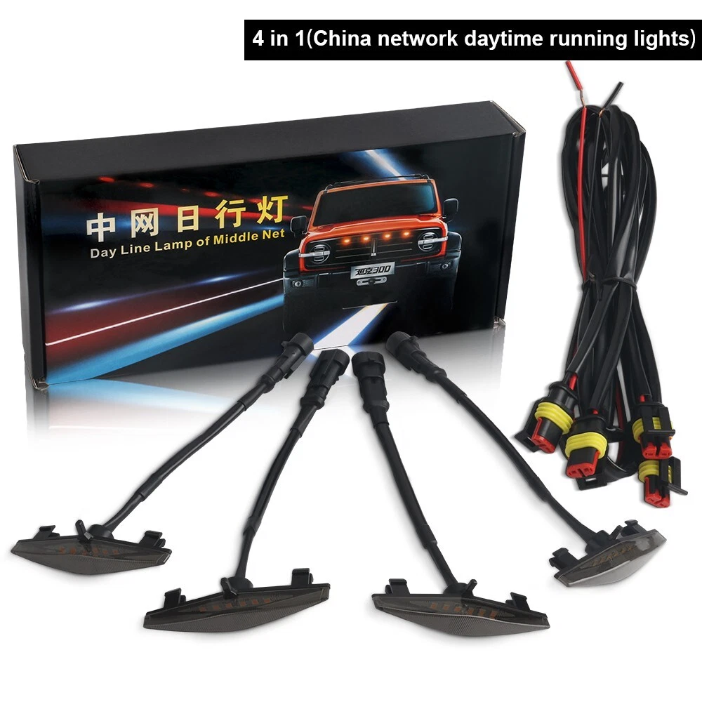 4Pcs Amber LED Front Grille Grill Daytime Running Lights Smoked Lens 3000K Truck