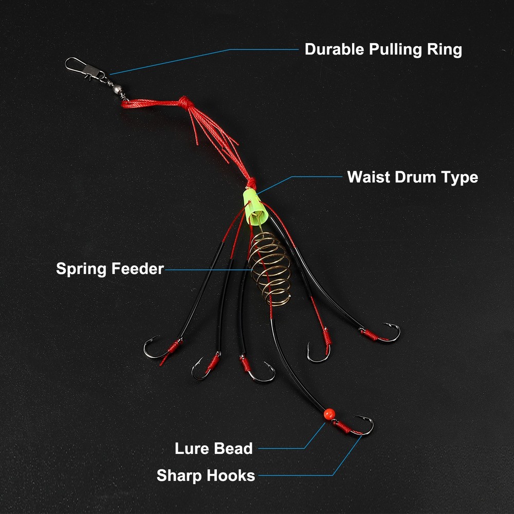 Document Bait hooks with drum spring feeders and glow-in-the-dark beads are devices specifically designed to attract fish and increase your chances of a successful catch. It combines 6 bait hooks, drum spring feeders, and luminous beads to enhance the presentation and visibility of the bait and improve fishing success.SpecificationColor: RedMaterial: PE Wire, MetalHook Opening Width: 9mm / 0.35inchFishhook Size: 20 x 11 mm / 0.79 x 0.43 inch (L*W)Total Length: 22cm / 8.7inchPacking List: 4Pcs x Fishing Baits Hook with Spring FeederAdvantageBAIT RELEASE: The spring feeder can hold a large amount of bait. When fish eat the bait, the feeder will gradually release the bait, forming an attractive feeding trail, and attracting more fish to the area. The 6-hook design increases the chance of fish being hooked.ENHANCED VISIBILITY: Luminous beads on the hook increase visibility in low-light conditions or turbid waters, making it easier for fish to find and hit the bait.Instruction1. Attach the bait hook to the fishing line.2. Fill the drum spring feeder with the desired bait, making sure it is packed securely.3. Throw the fishing line into a location where fish may be present.4. Let the feeder sink to the desired depth and attract fish closer to the bait through the luminous beads.NOTE: Be careful to avoid fishhook barbs when using.Clean and store the fishing lure hook after use to maintain its performance and longevity. 4Pcs Carp Fishing Baits Hook Fishing Lure Hooks Carp Jig Hooks Red (11#) Bait hooks with drum spring feeders and glow-in-the-dark beads are devices specifically designed to attract fish and increase your chances of a successful catch. It combines 6 bait hooks, drum spring feeders, and luminous beads to enhance the presentation and visibility of the bait and improve fishing success. Specification Color: Red Material: PE Wire, Metal Hook Opening Width: 9mm / 0.35inch Fishhook Size: 20 x 11 mm / 0.79 x 0.43 inch (L*W) Total Length: 22cm / 8.7inch Packing List: 4Pcs x Fishing Baits Hook with Spring Feeder Advantage BAIT RELEASE: The spring feeder can hold a large amount of bait. When fish eat the bait, the feeder will gradually release the bait, forming an attractive feeding trail, and attracting more fish to the area. The 6-hook design increases the chance of fish being hooked. ENHANCED VISIBILITY: Luminous beads on the hook increase visibility in low-light conditions or turbid waters, making it easier for fish to find and hit the bait. Instruction 1. Attach the bait hook to the fishing line. 2. Fill the drum spring feeder with the desired bait, making sure it is packed securely. 3. Throw the fishing line into a location where fish may be present. 4. Let the feeder sink to the desired depth and attract fish closer to the bait through the luminous beads. NOTE: Be careful to avoid fishhook barbs when using. Clean and store the fishing lure hook after use to maintain its performance and longevity. Hot Item Payment 1.We accept eBay payment . 2.Payment must be received within 7 business days of auction closing. Shipping 1.We ship to your eBay or Paypal address. Please make sure your eBay and Paypal address is correct before you pay. 2.Items will be shipped within 1-3 business day when we received payment. 3.Delivery time depends on destination and other factors. Description Policy 4Pcs Carp Fishing Baits Hook Fishing Lure Hooks Carp Jig Hooks Red (11#) Bait hooks with drum spring feeders and glow-in-the-dark beads are devices specifically designed to attract fish and increase your chances of a successful catch. It combines 6 bait hooks, drum spring feeders, and luminous beads to enhance the presentation and visibility of the bait and improve fishing success. Specification Color: Red Material: PE Wire, Metal Hook Opening Width: 9mm / 0.35inch Fishhook Size: 20 x 11 mm / 0.79 x 0.43 inch (L*W) Total Length: 22cm / 8.7inch Packing List: 4Pcs x Fishing Baits Hook with Spring Feeder Advantage BAIT RELEASE: The spring feeder can hold a large amount of bait. When fish eat the bait, the feeder will gradually release the bait, forming an attractive feeding trail, and attracting more fish to the area. The 6-hook design increases the chance of fish being hooked. ENHANCED VISIBILITY: Luminous beads on the hook increase visibility in low-light conditions or turbid waters, making it easier for fish to find and hit the bait. Instruction 1. Attach the bait hook to the fishing line. 2. Fill the drum spring feeder with the desired bait, making sure it is packed securely. 3. Throw the fishing line into a location where fish may be present. 4. Let the feeder sink to the desired depth and attract fish closer to the bait through the luminous beads. NOTE: Be careful to avoid fishhook barbs when using. Clean and store the fishing lure hook after use to maintain its performance and longevity. Hot Item Payment 1.We accept eBay payment . 2.Payment must be received within 7 business days of auction closing. Shipping 1.We ship to your eBay or Paypal address. Please make sure your eBay and Paypal address is correct before you pay. 2.Items will be shipped within 1-3 business day when we received payment. 3.Delivery time depends on destination and other factors.