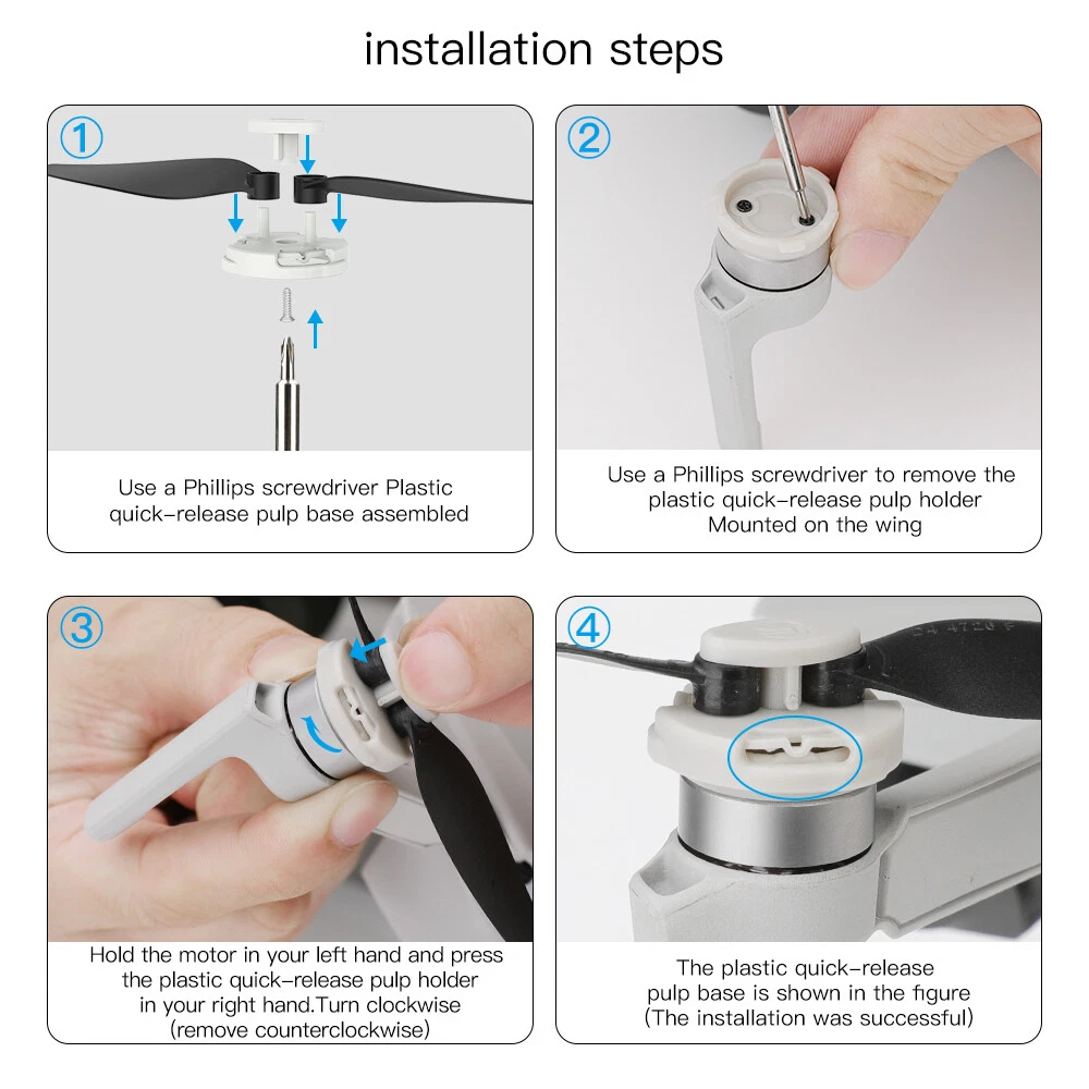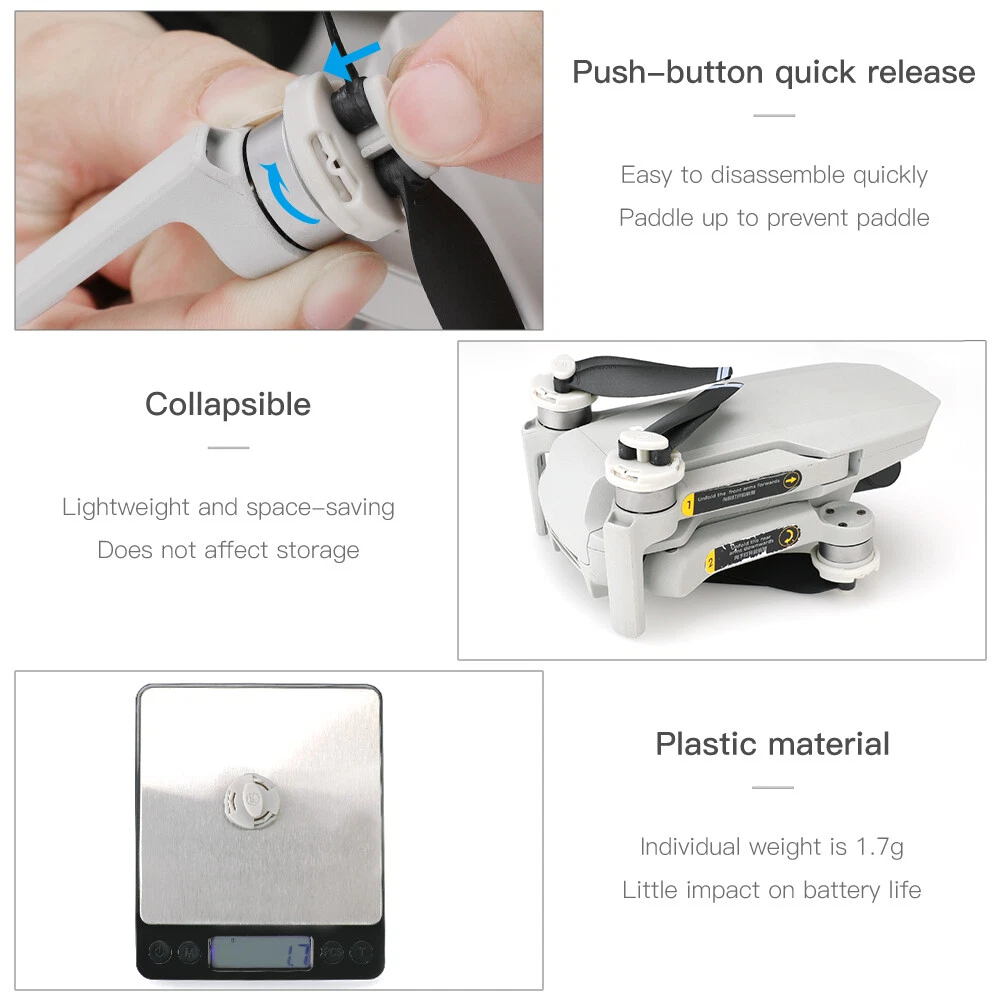 Product Description If you have any questions, please contact customer service first, do not open disputes easily, thank you! Feature: 1. Easy to disassemble quickly; Raising Paddles to prevent paddles; Effectively prevent propellers scratching drone body. 2. Collapsible, Lightweight and space-saving, does not affet storage. 3. Plastic material, only about 1.7g, Cause little impact on battery life. 4. Push-button to quick release, Easy to disassemble quickly, reduce damage to repeated motor disassembly. Close design, close fit to the motor can effectively prevent the blade from scratching the fuselage. Specifications: Material: Plastic Net weight: about 10.3g Paddle Base size: about 2.3 x 2.3 x 1.2 cm /0.9x0.9x0.4 inch Fit for DJI Mavic Mini Drone Package list: 4 x Paddle Base 1 x Screwdriver 8 x Screws 4 x Silver Screws Note: Drone and other accessories are not included! About Us We accept all payments authorized by eBay. powered by