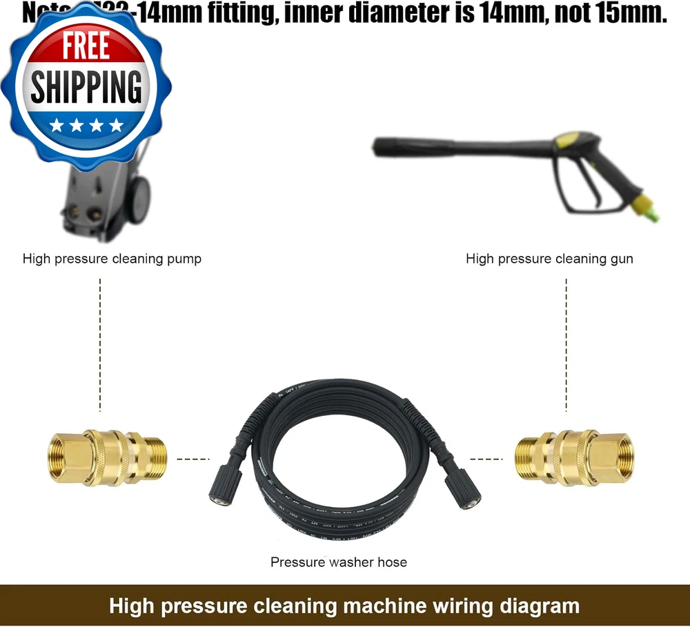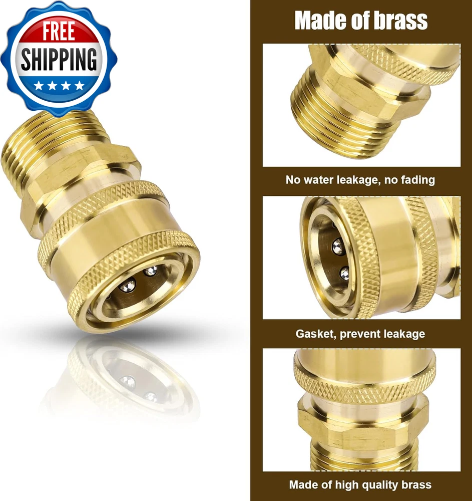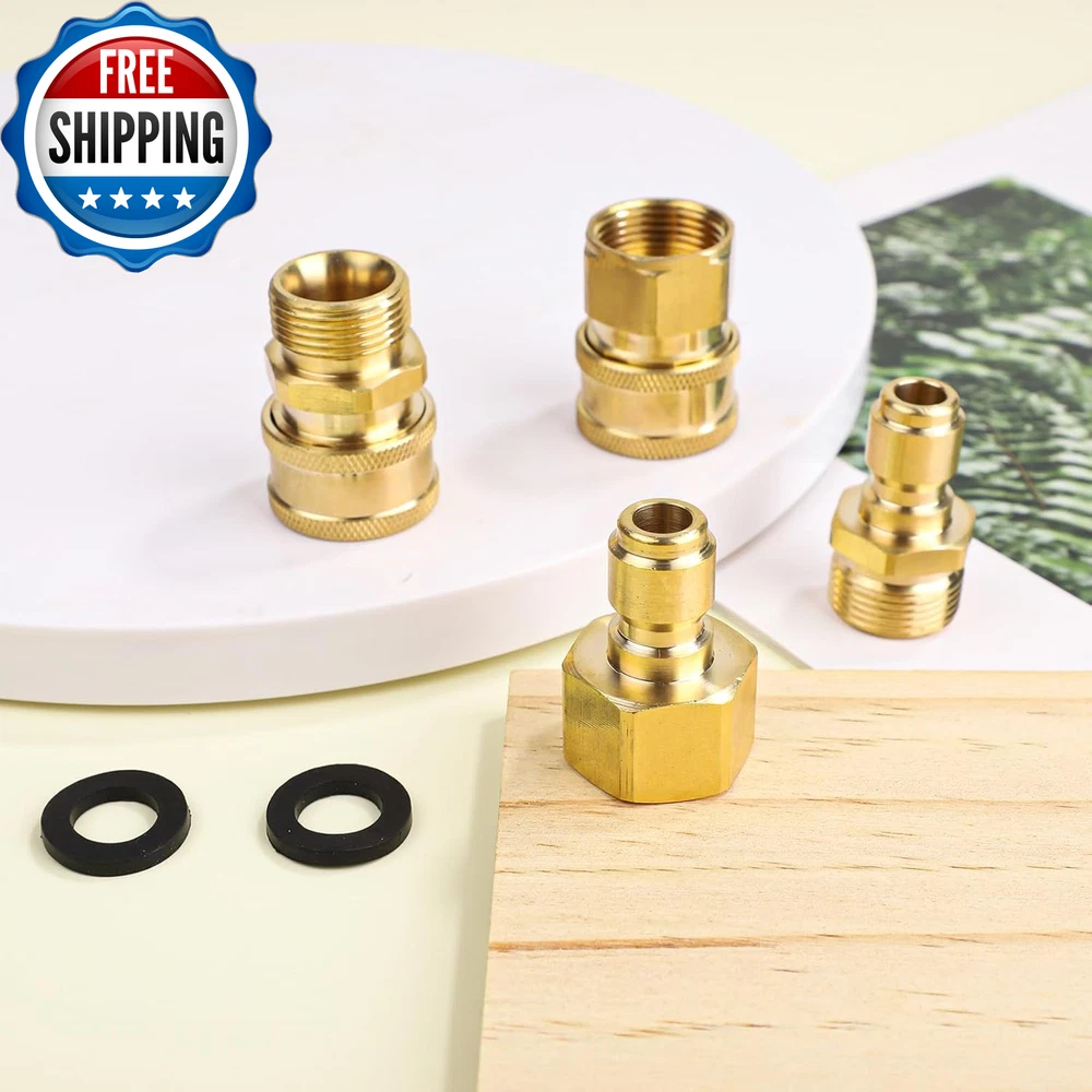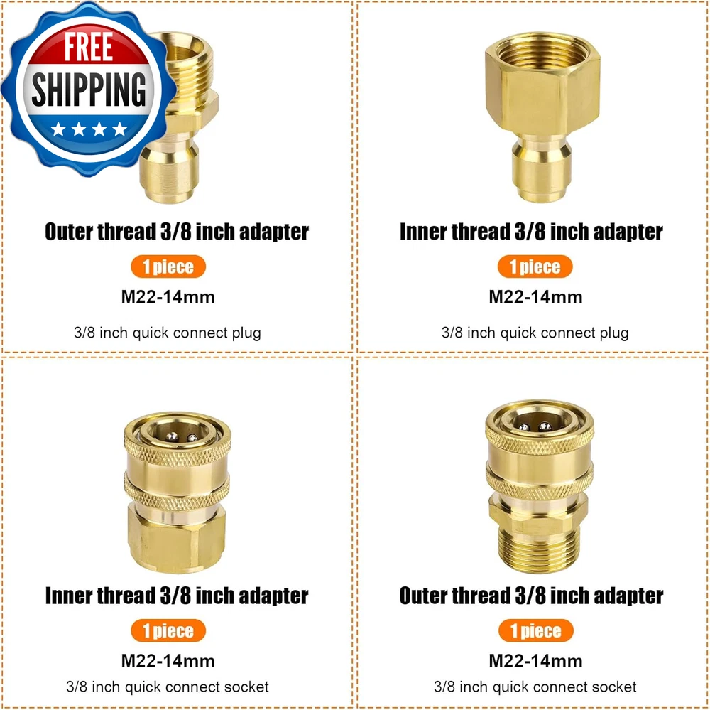 4Pcs M22-14Mm to 3/8In Pressure Washer Adapter Set, Power Washer Fittings Adapter Pressure Washer Fast Connect Kit to 3/8In Fast Connect & Quick Disconnect for Power Washer Hose Pump 5000 PSI What You Will Get: You will receive 4 pieces of M22-14mm pressure washer adapter set and 2 gaskets. This set can perfectly meet your needs. Reliable Material: Power washer adapters are made of great quality brass, which is strong and wear resistant, not easy to break. With high hardness, they can provide long-term good service. Easy to Install: Only takes several seconds that you can install them on power washer hoses. pressure washer adapter set is also convenient to remove. It's a time and energy saving kit. Useful Adapters: Our pressure washer quick connect kit have strong water sealing performance and can effectively prevent hose from leaking. They are easy to connect and disconnect. Pressure is up to 5000 PSI. Widely Used: The power washer adapters can be used with garden hoses, power washer hoses, pressure washer pump, etc. They're very great for watering flowers, washing cars, etc. Specification: Color: gold Material: brass Product Size: as shown in the detailed picture Package details: 4 x pressure washer adapters 2 x gaskets Note: Due to manual measurement, the size and weight may have a certain error. Due to the difference between monitors, there may be a slight color difference. Item model number 05148 Part Number 1015101 Batteries Required? No Power Source manual Color Gold Product Dimensions 0.55 x 0.55 x 0.79 inches Item Weight 9.2 ounces Batteries Included? No Size M Shipping Fast shipping is very important for us. Our standard US shipping service is FREE. Your order will be shipped within 2-3 business days upon full payment received. Your order will be delivered within 2-3 business days after the handling time. We only ship to the confirmed PayPal address. We reserve the right to cancel any order for any reason at any time. We are not responsible for undeliverable addresses. Returns and payment We offer a 30 days return policy from checkout winning date. We allow only PayPal as payment method FeedBack Your feedback very important to us, after you get your package and you are satisfied with our service please leave us positive feedback If you have any problem with your order / any questions please before leave any type of feedback Please visit our eBay store to check out other items for sale! Thank you for shopping at our store.