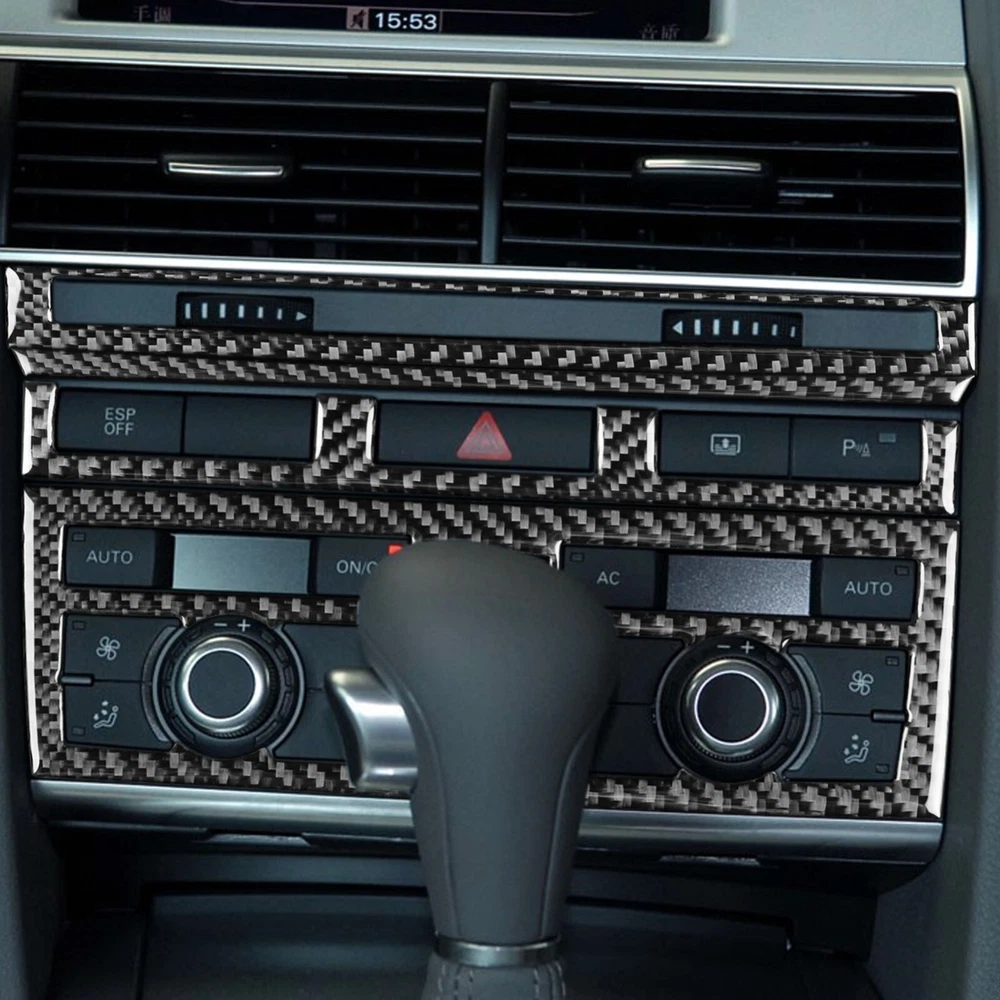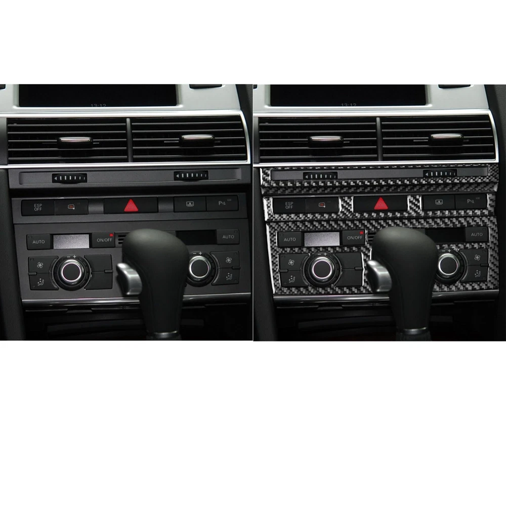 4Pcs Real Carbon Fiber Center Console A/C CD Panel Trim For Audi A6 S6 C6 05-11